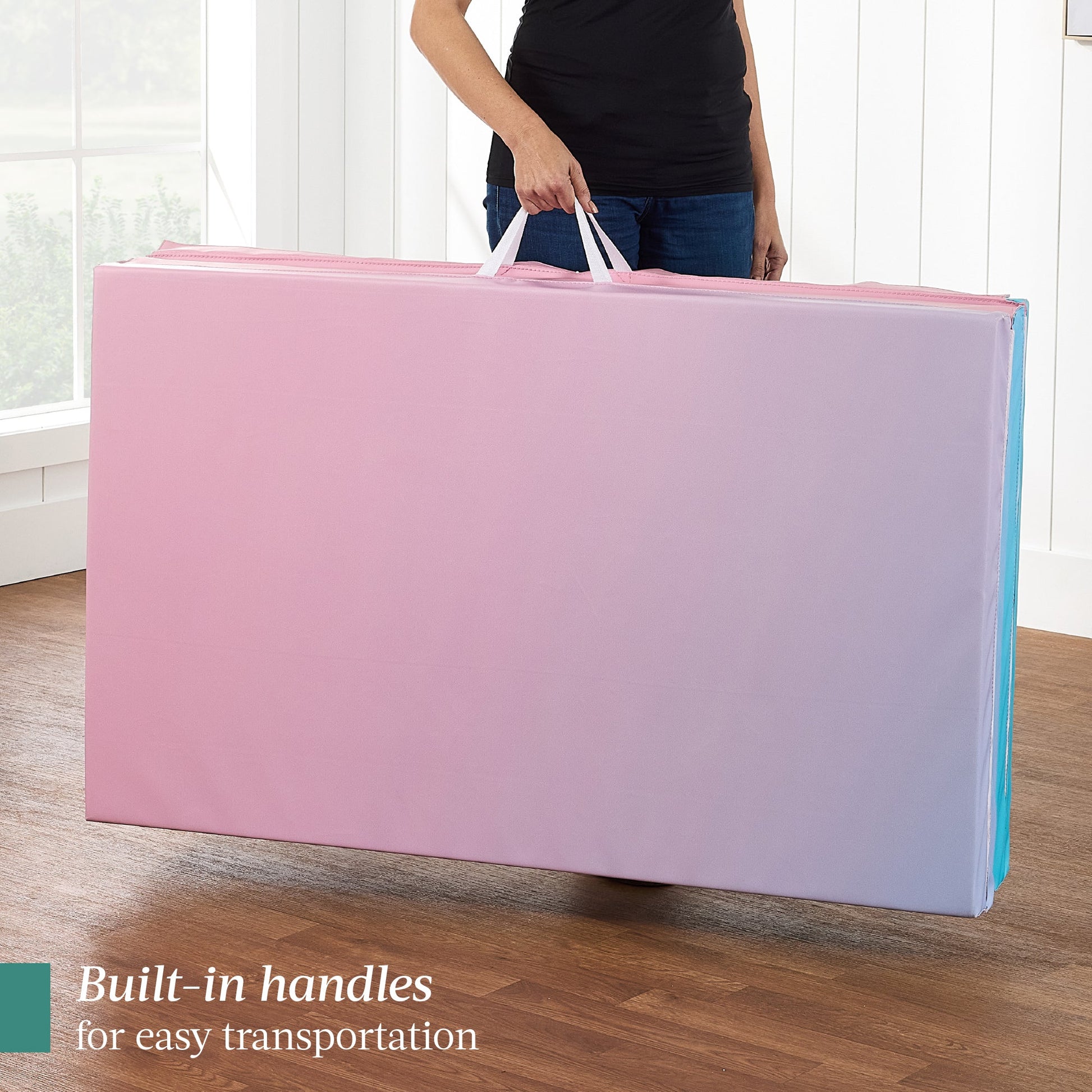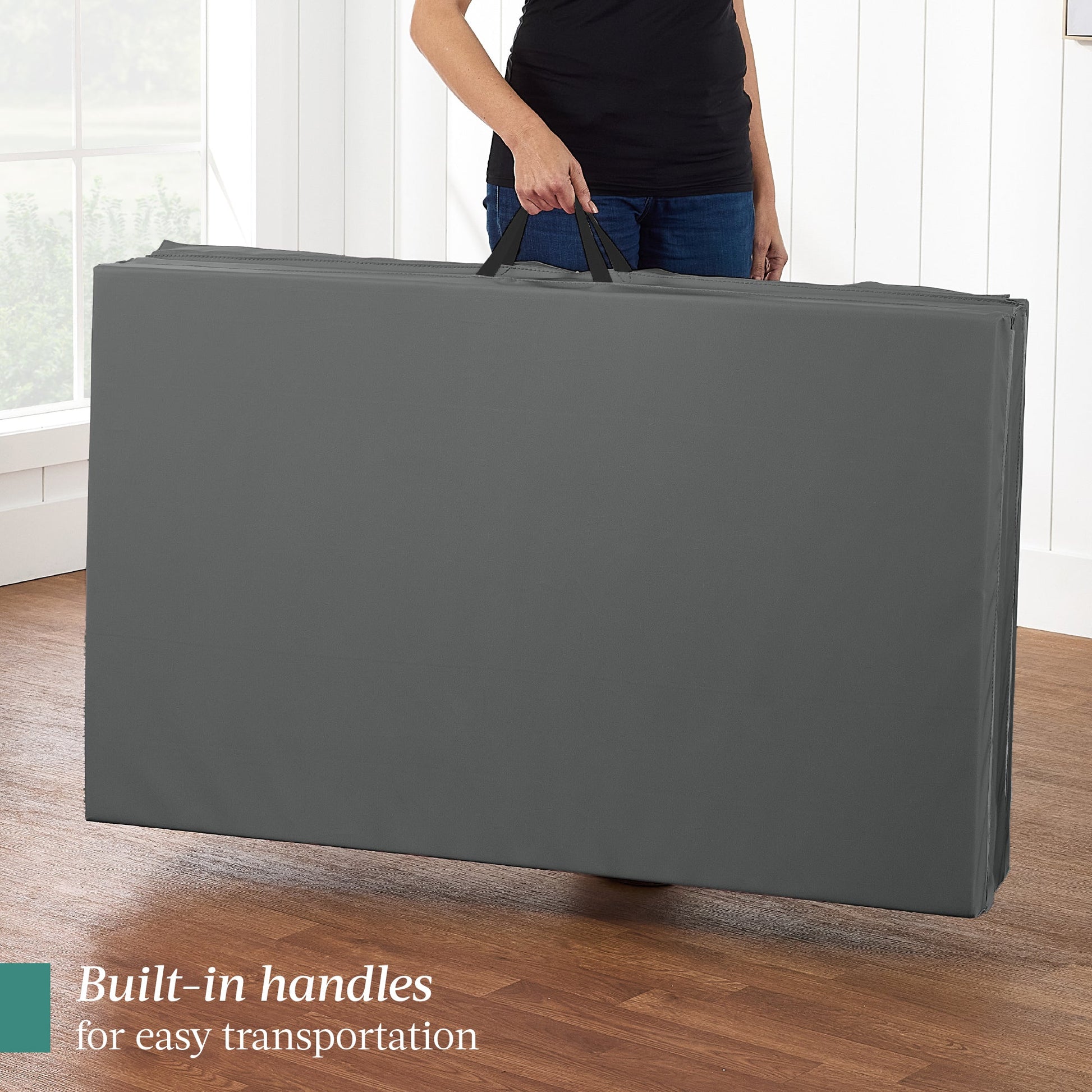 Folding Exercise Fitness Workout Gym Floor Mat w/ Handles