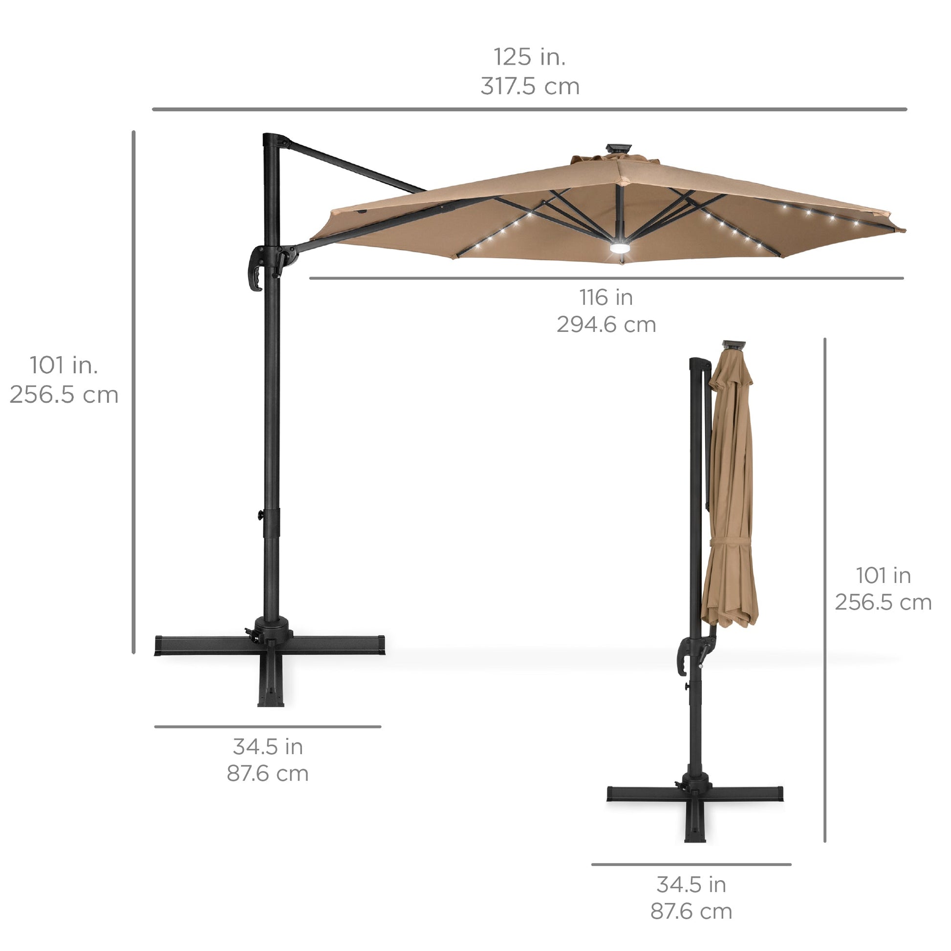 360-Degree LED Cantilever Offset Patio Umbrella w/ Tilt - 10ft