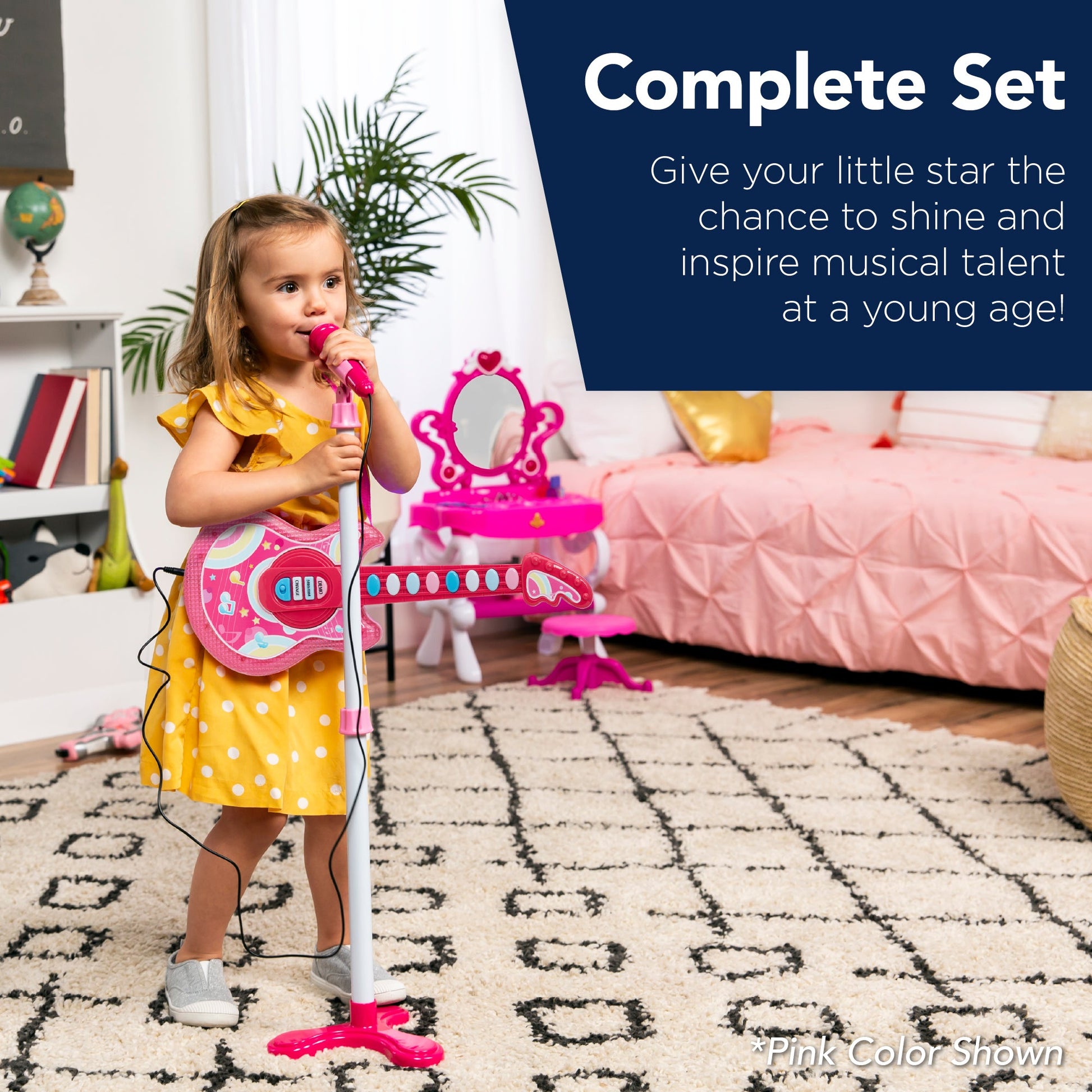 Kids Pretend Play Guitar Musical Instrument Toy w/ Microphone, Stand - 19in
