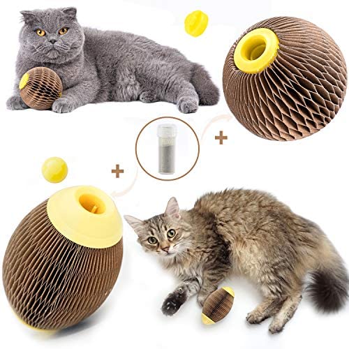 - TWO CAT SCRATCH BALLS WITH NATURE CATNIP - These catnip toys perfectly combined healthy scratch board and refreshing catnip, combined stimulation in smelling and touching senses. These cat toys keep your furry friends busy and provide healthy exercise by playing.