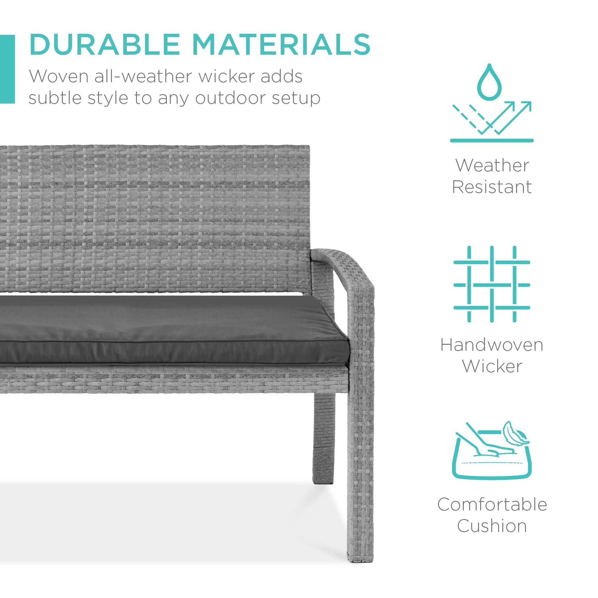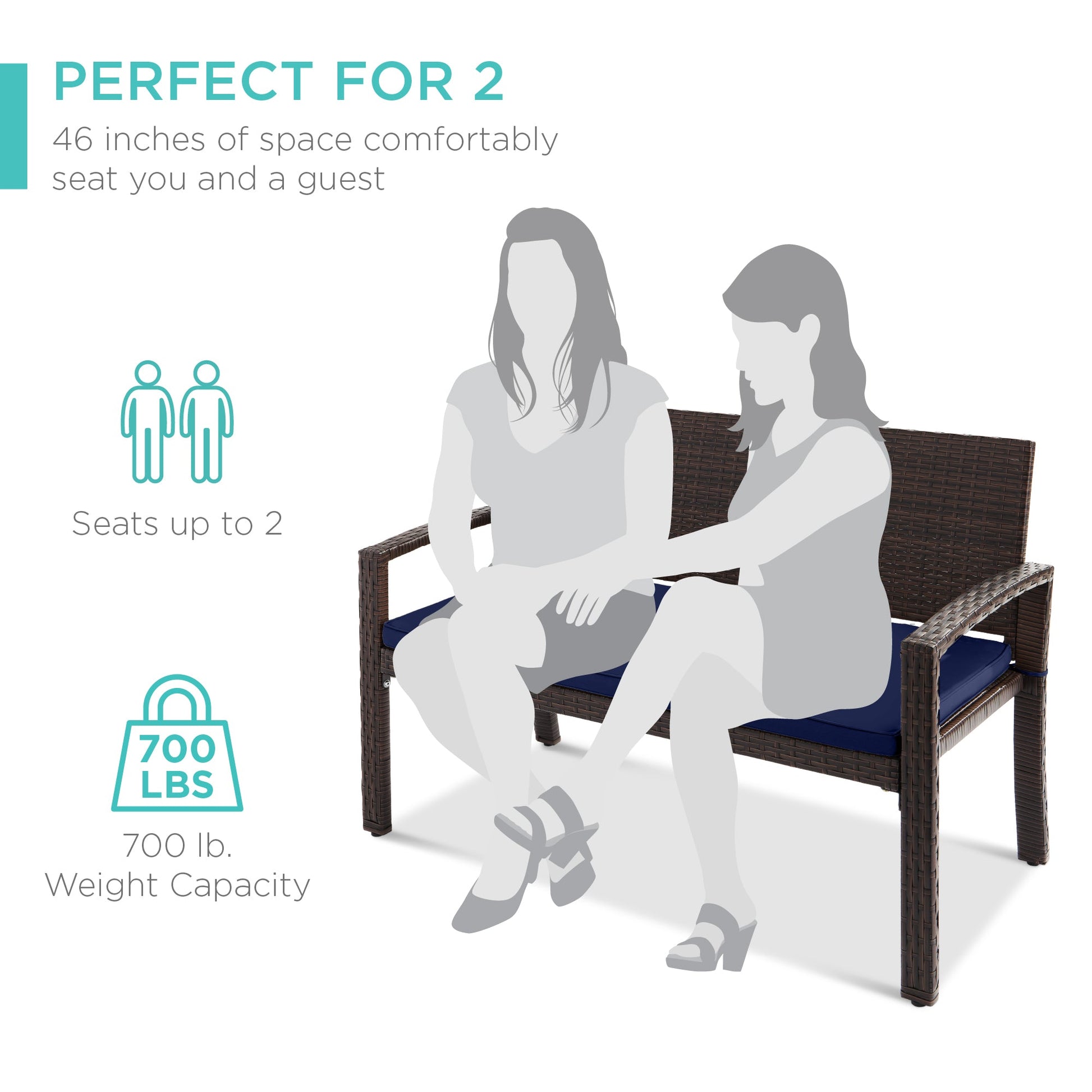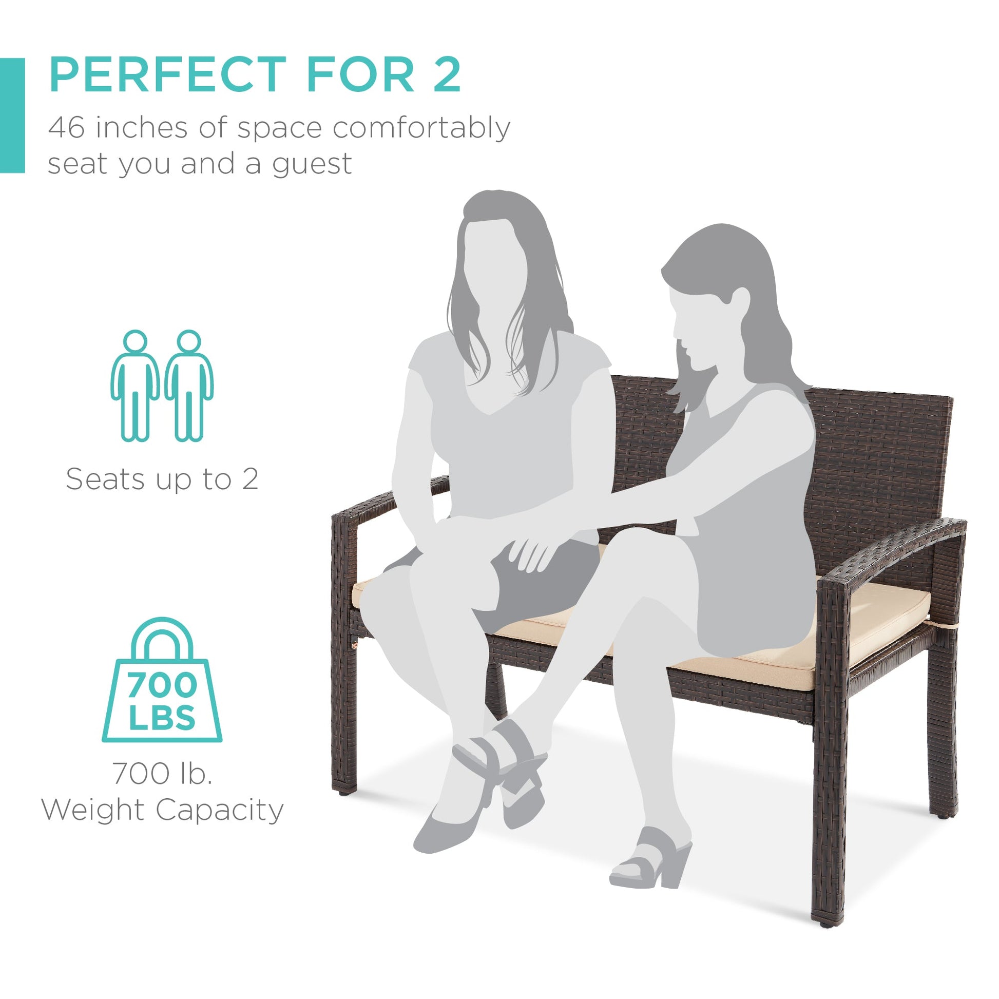 2-Person Wicker Porch Bench for Outdoor, Garden w/ 700lb Capacity - 47in