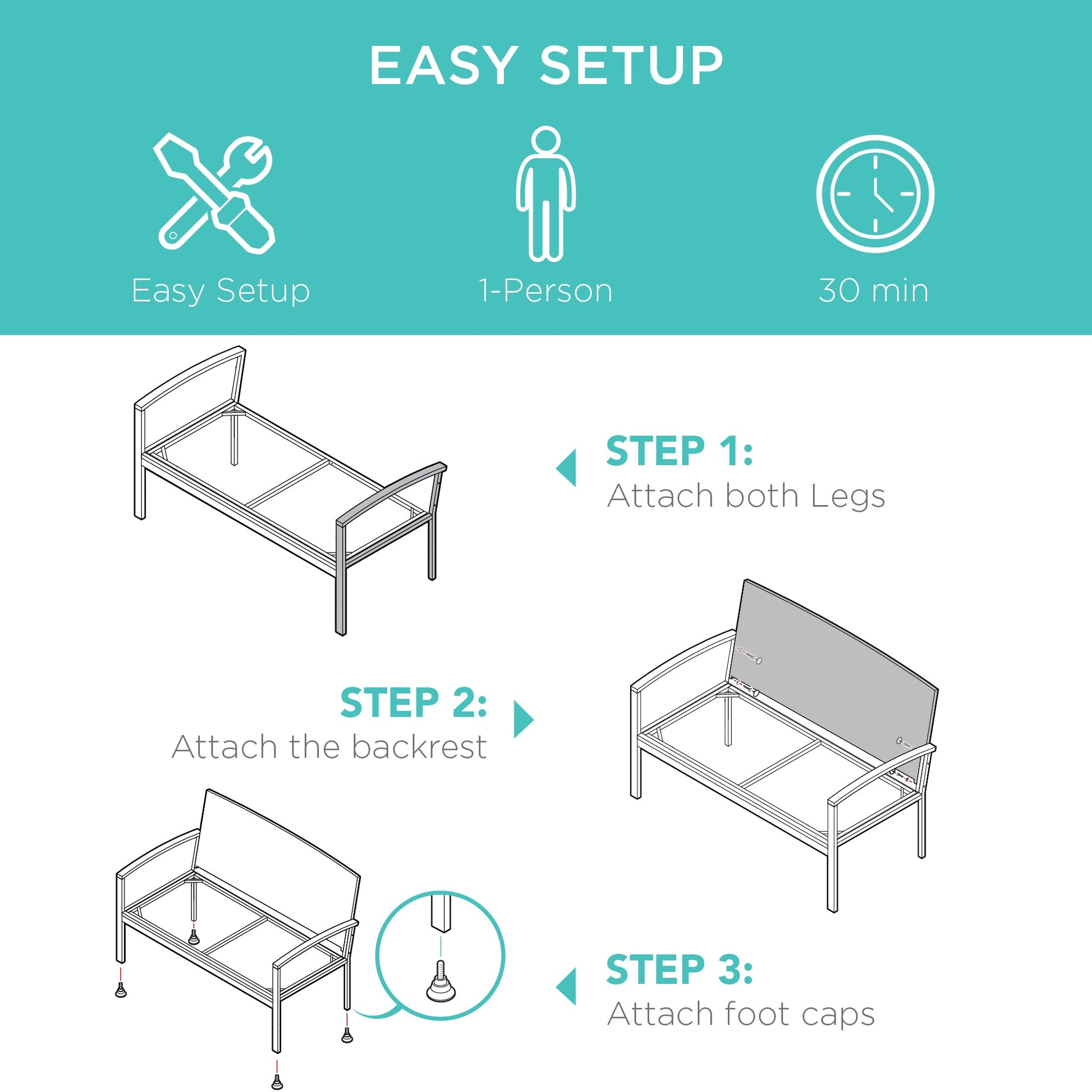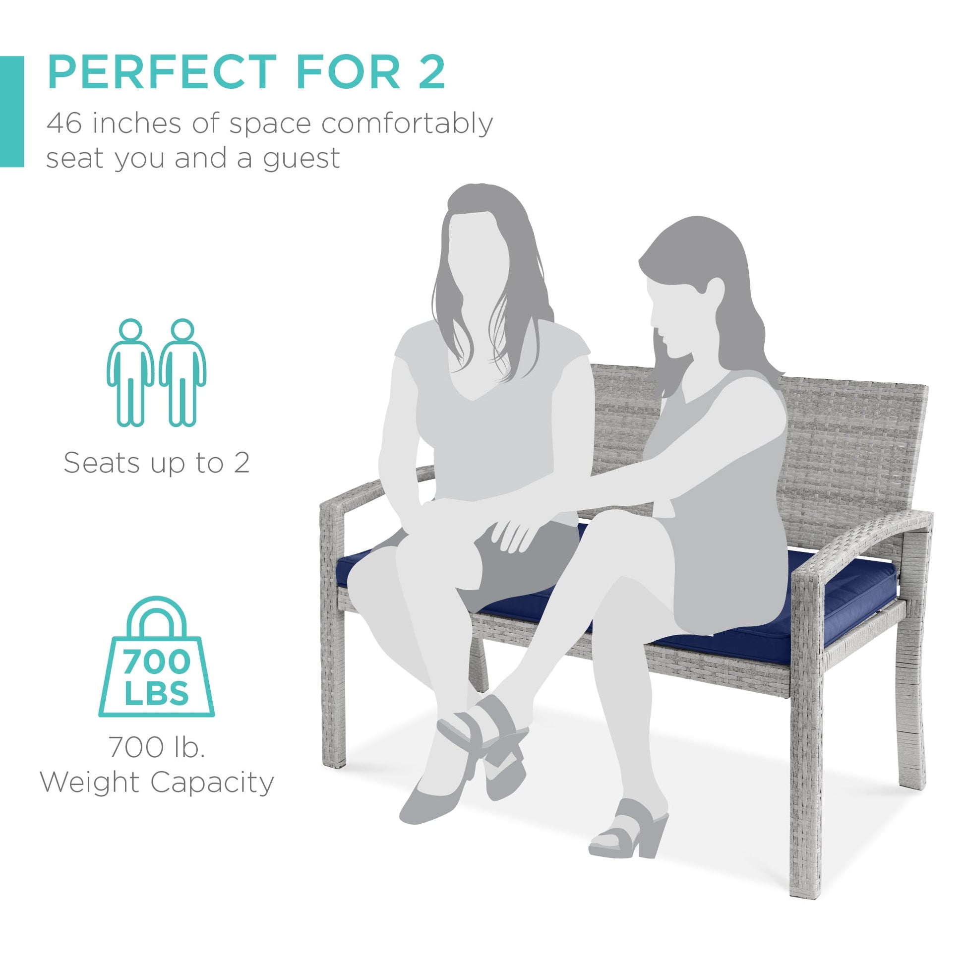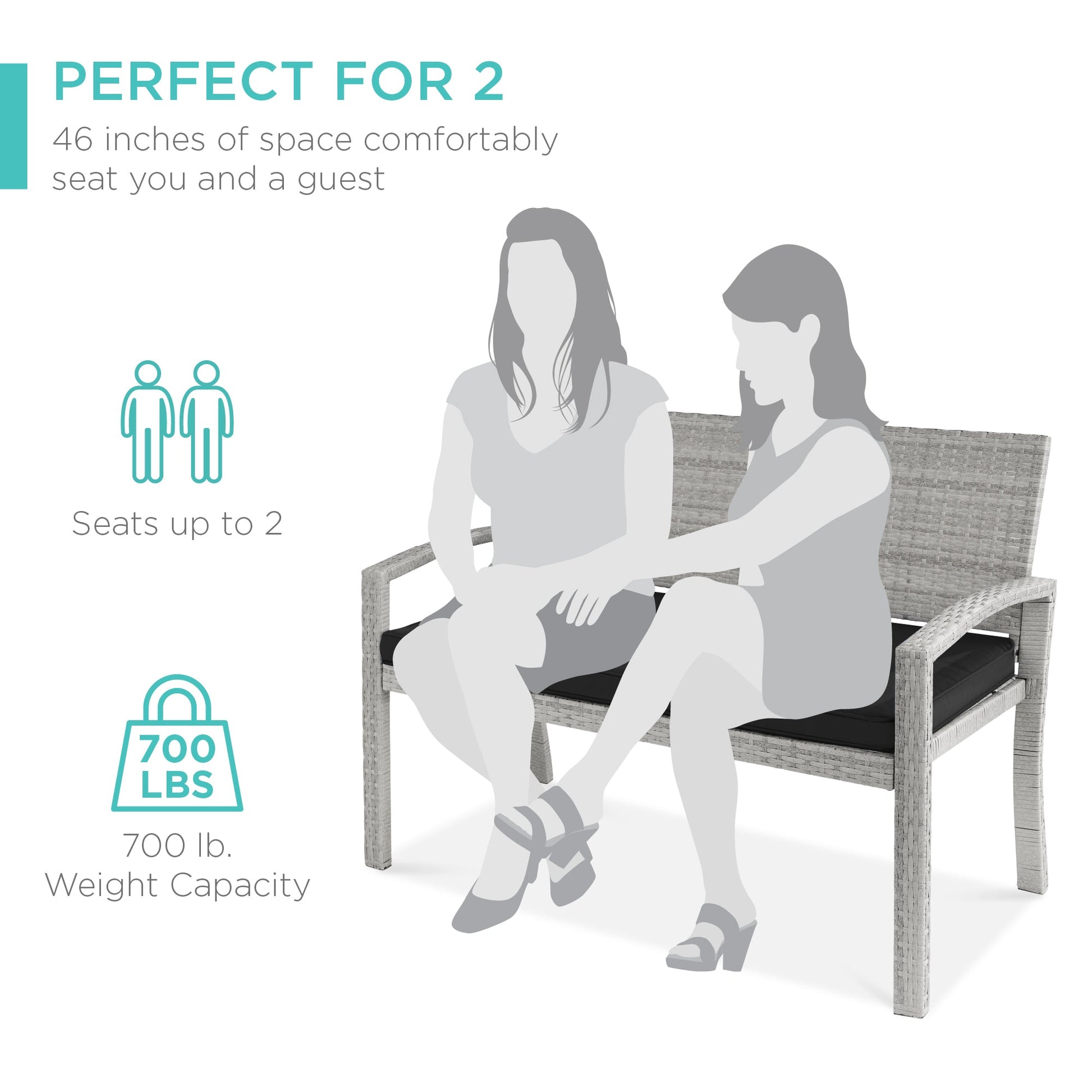 2-Person Wicker Porch Bench for Outdoor, Garden w/ 700lb Capacity - 47in