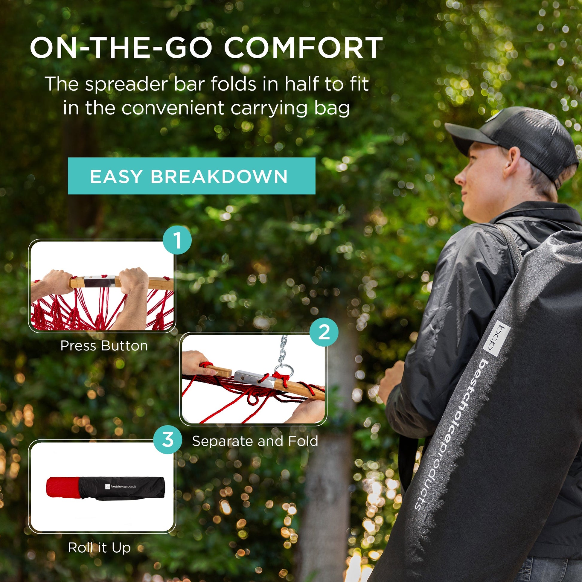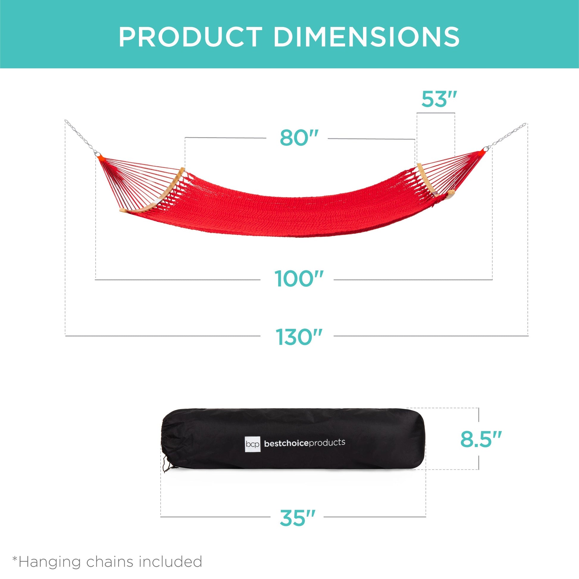 2-Person Woven Polyester Hammock w/ Curved Bamboo Spreader Bar, Carry Bag