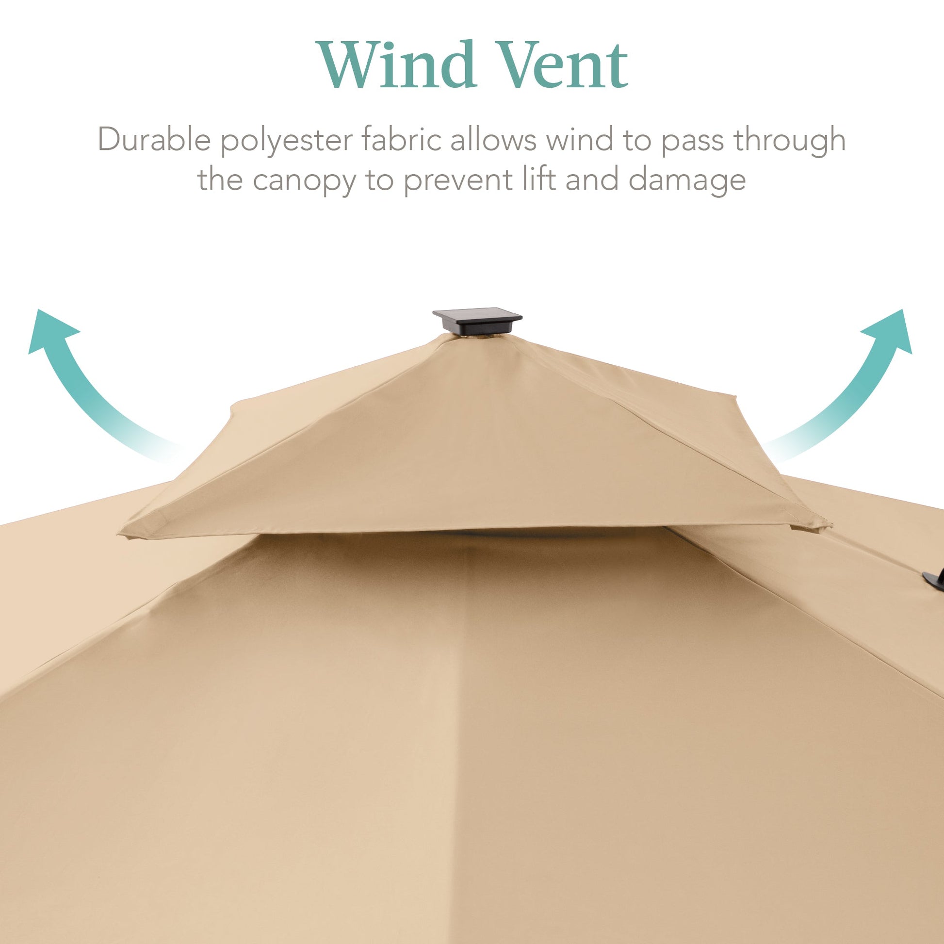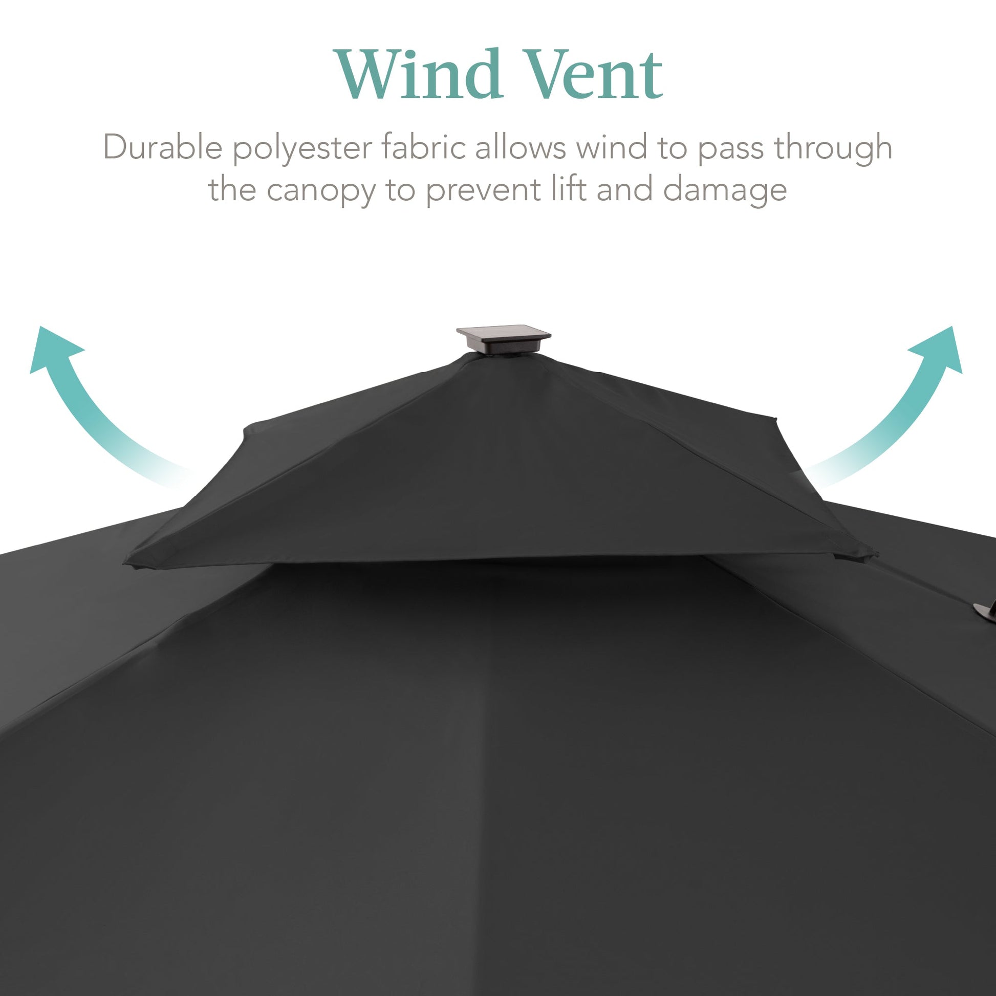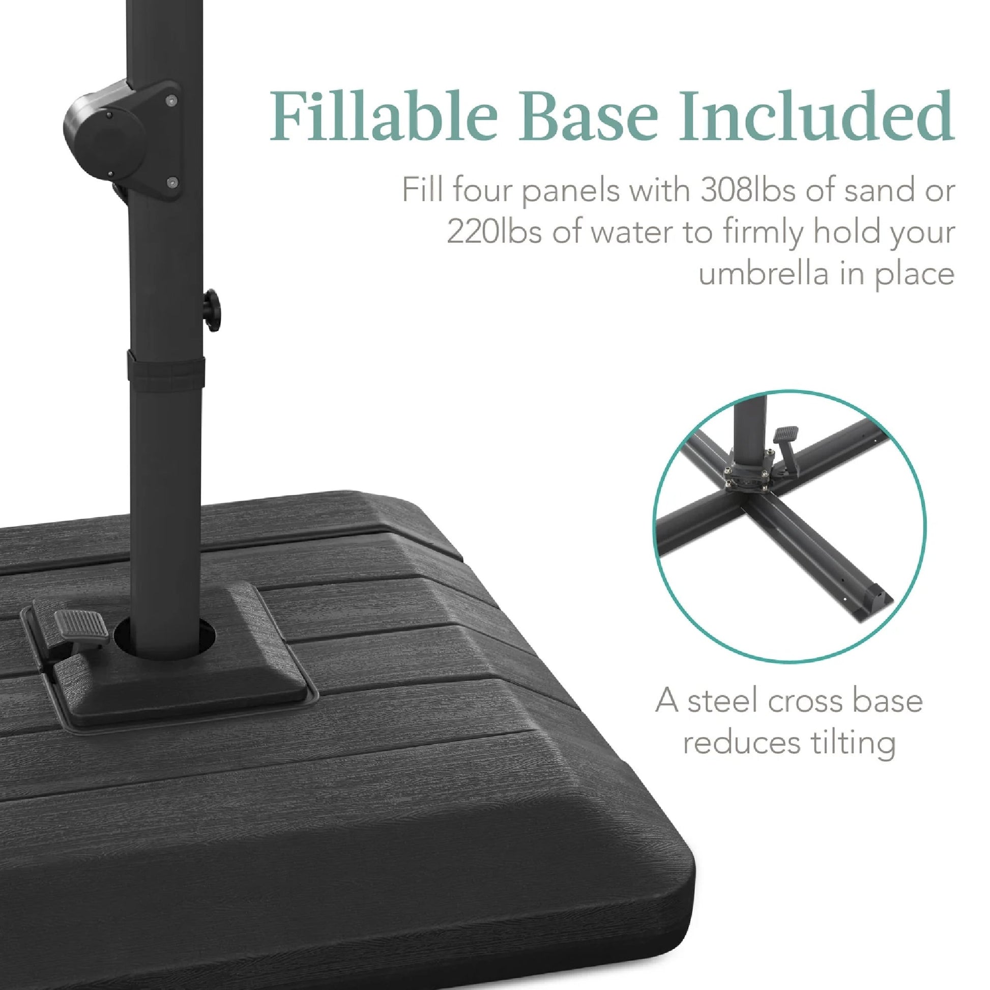2-Tier Square LED Cantilever Offset Umbrella w/ 360 Rotation, Base - 10x10ft