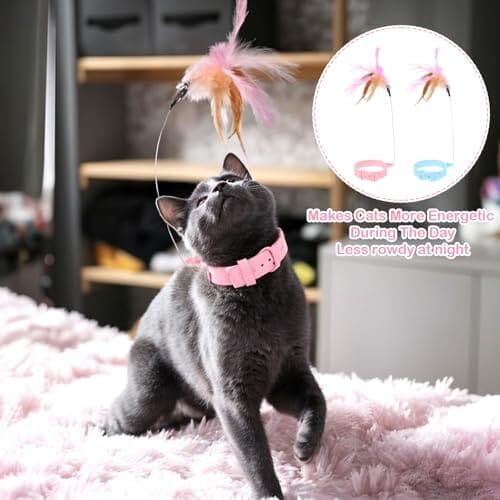 - What You Will Get: You will receive 2 pieces of funny cat collar toys. One pink and one blue, the sound of bells and feathers will attract your kitty's attention and stimulate your cat's hunting instinct