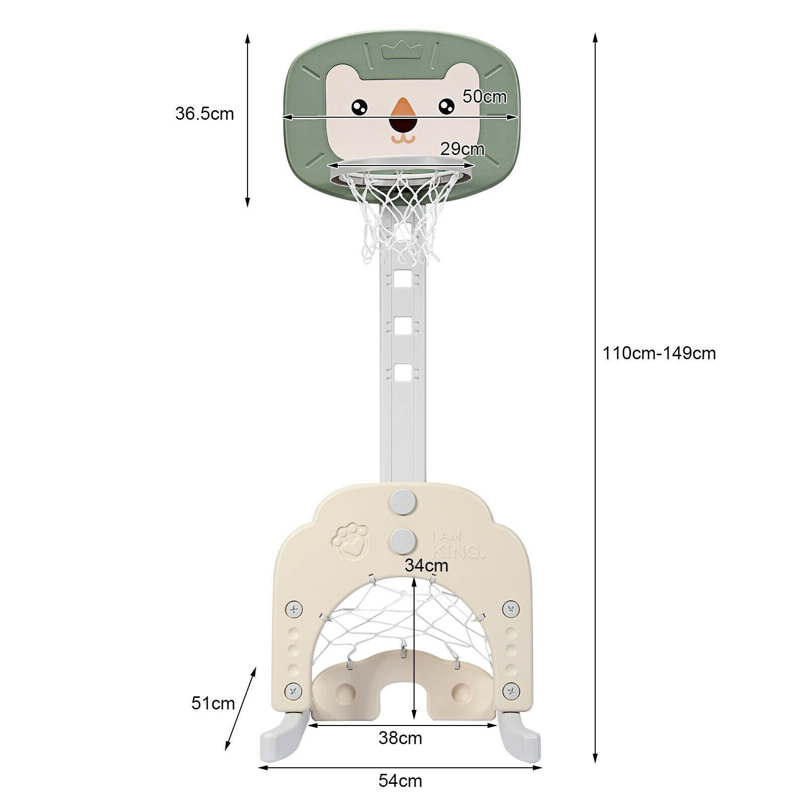 3-In-1 Basketball Hoop Set Stand with 5 Adjustable Height Levels