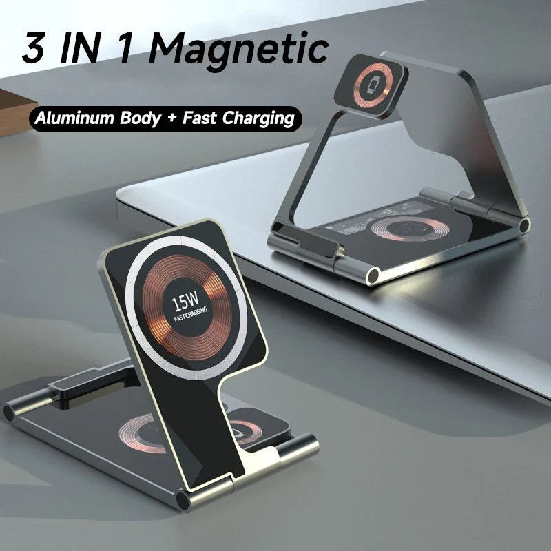 ● Overall, the 3 in 1 Foldable MagSafe Wireless Charger combines functionality, convenience, and a sleek design, making it a versatile charging solution for users who value efficiency and style in their daily charging routine.