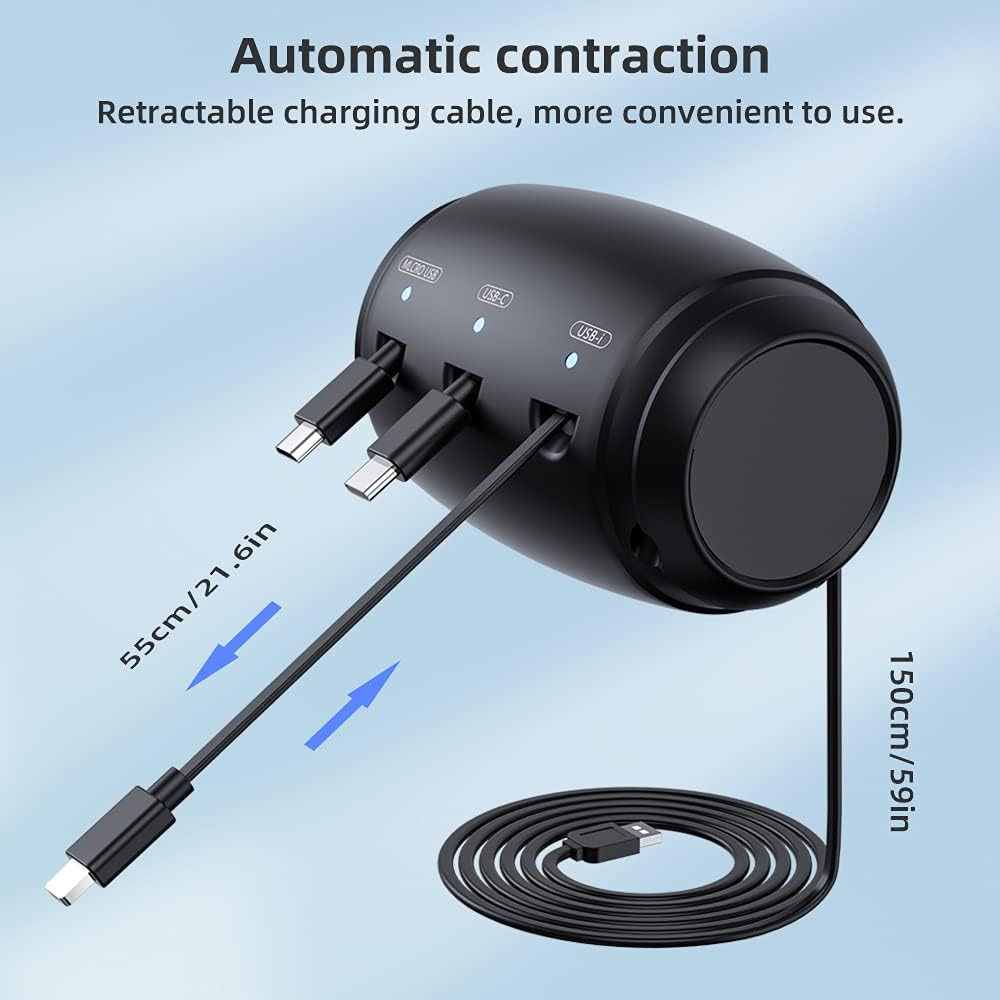Loose, tangled cords not only look messy—they’re a hassle to manage. The retractable mechanism inside this charging box lets you pull out just the right length of cable, up to 21.6 inches, and automatically pulls it back when not in use.