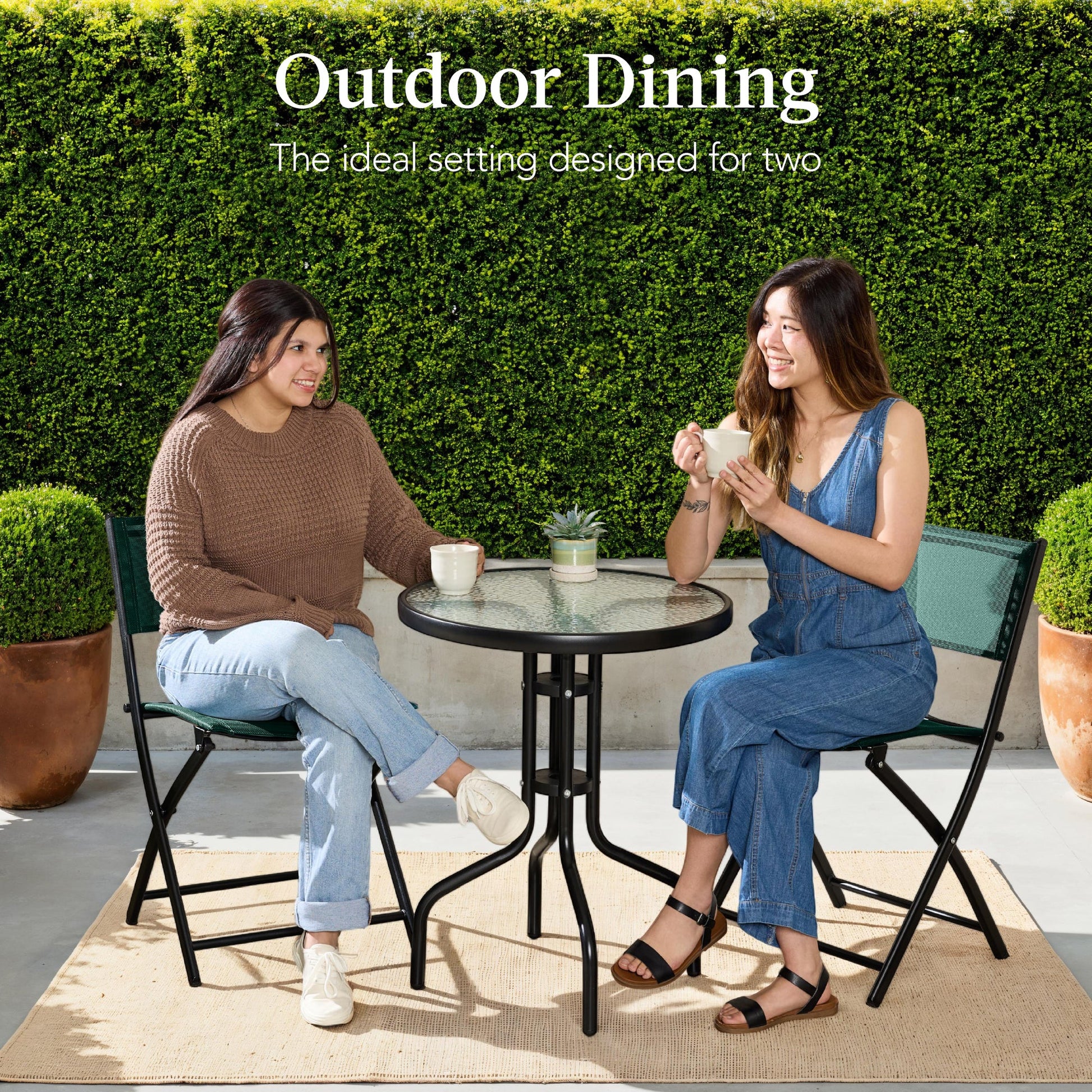 3-Piece Bistro Set w/ Glass Table, 2 Foldable Chairs