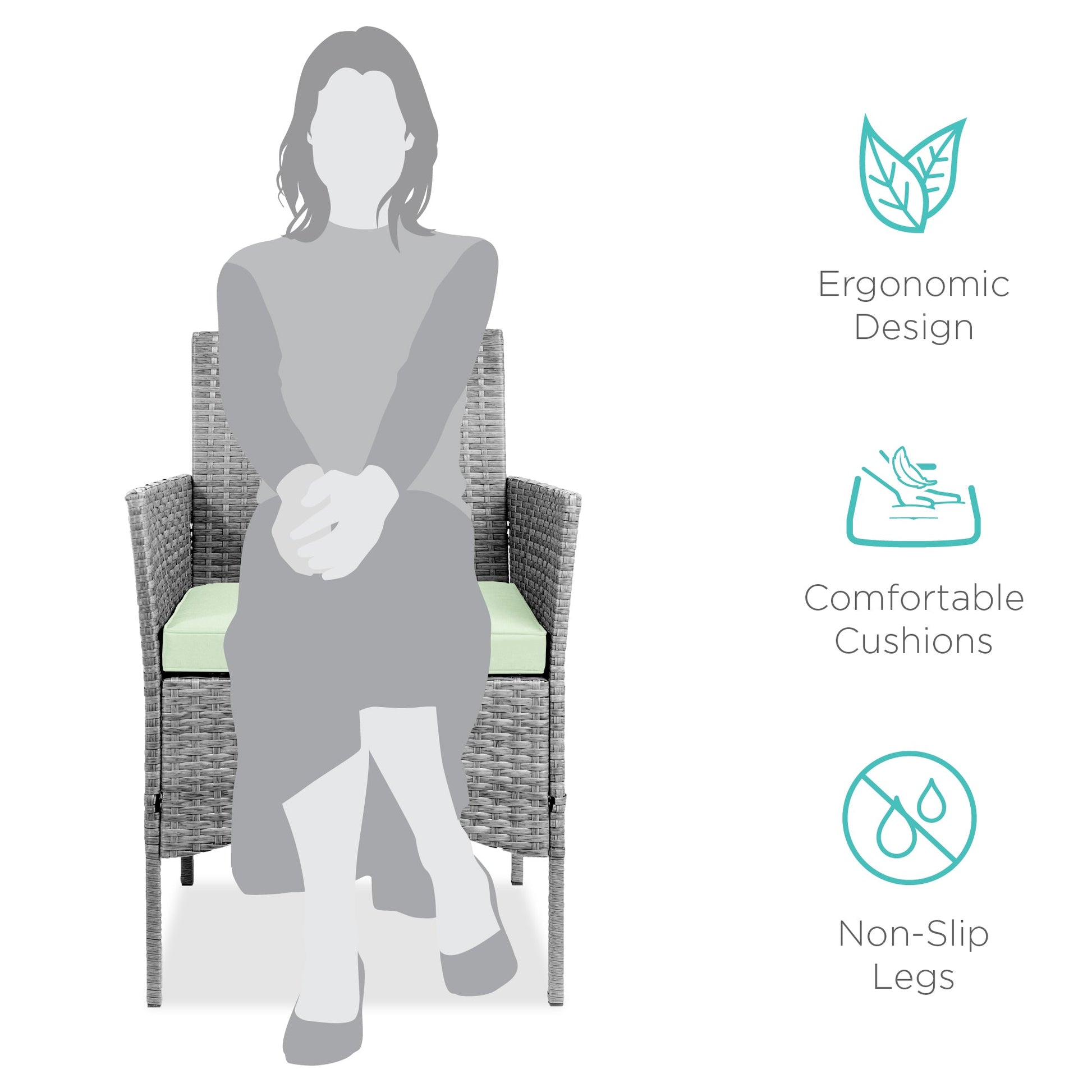 3-Piece Outdoor Patio Wicker Bistro Set w/ Side Storage Table