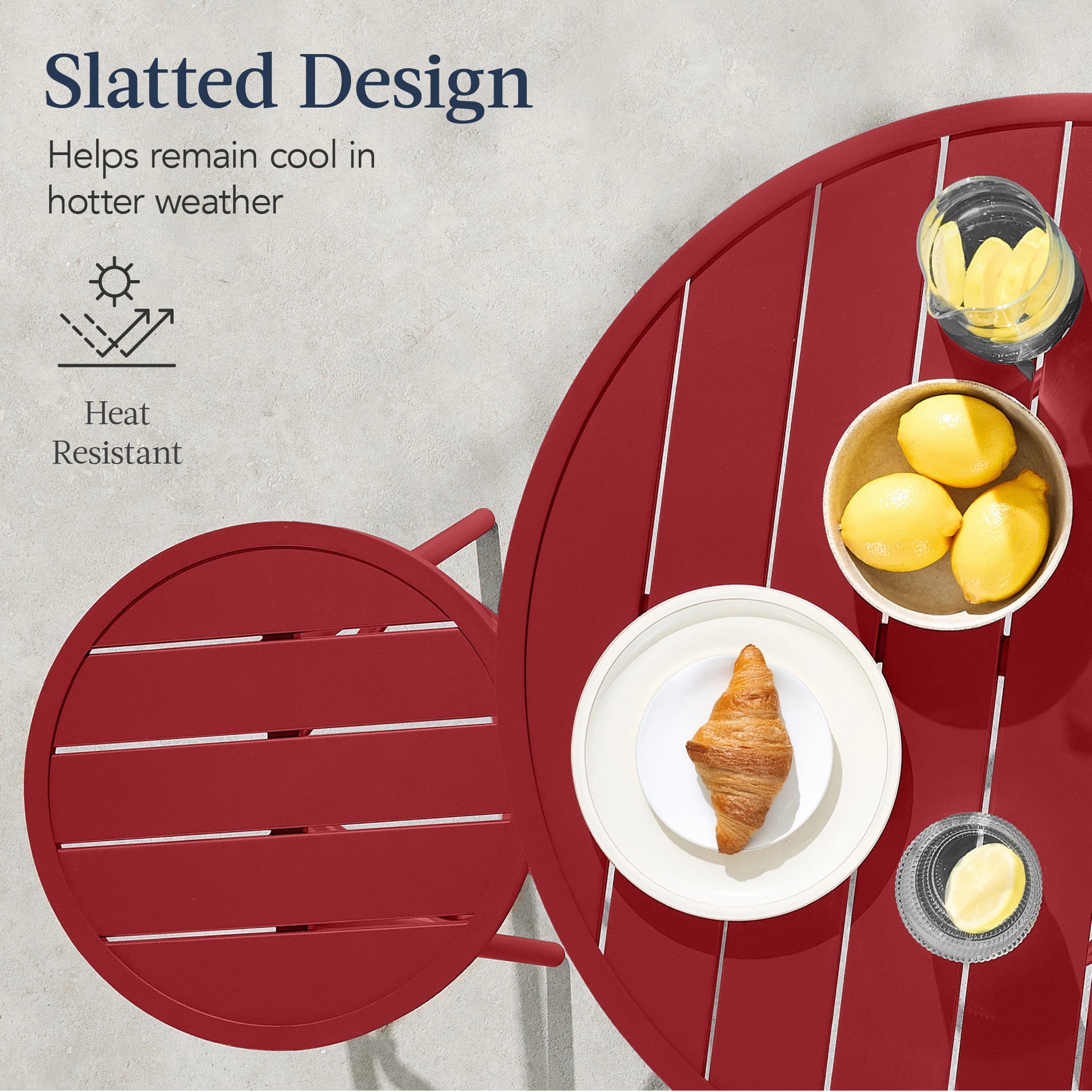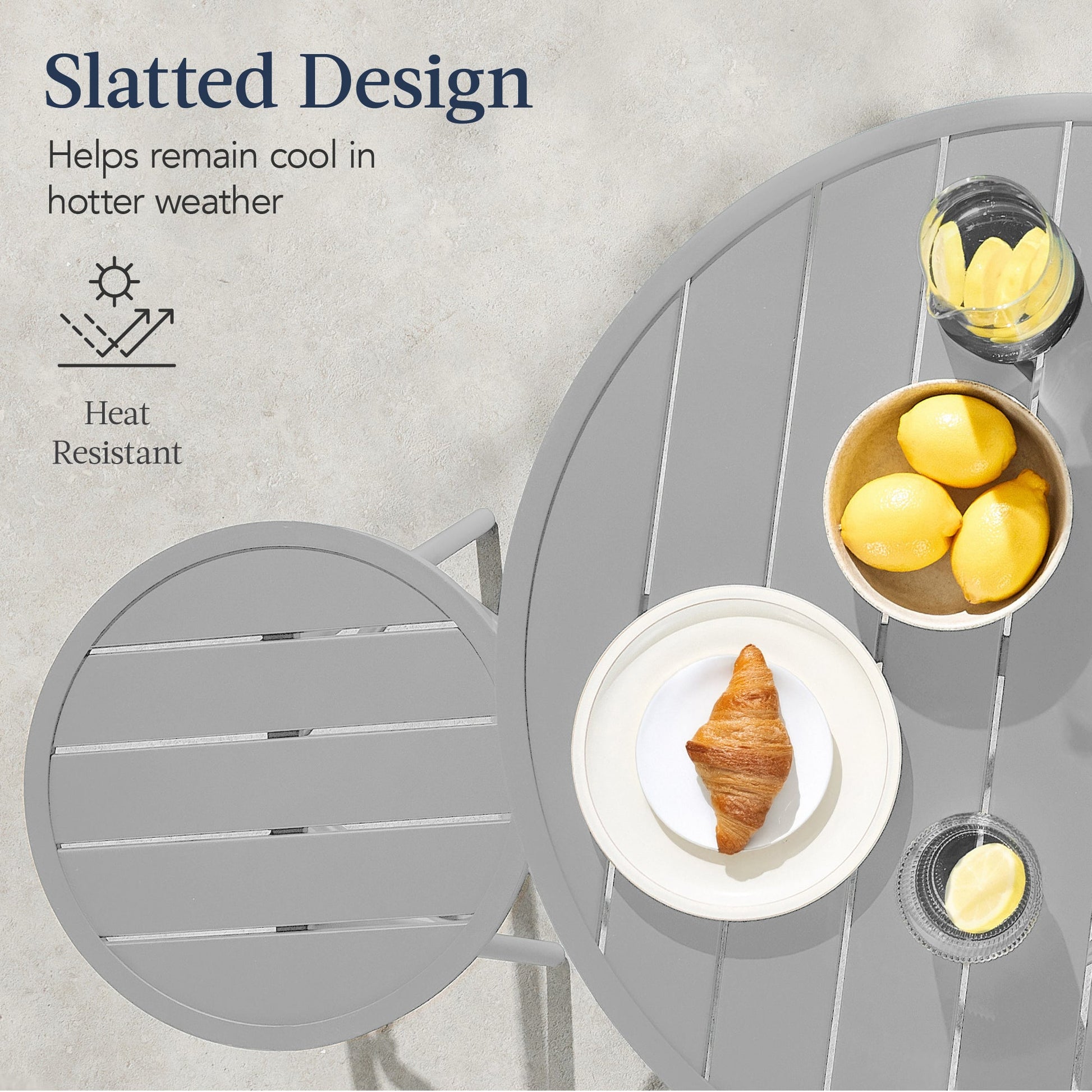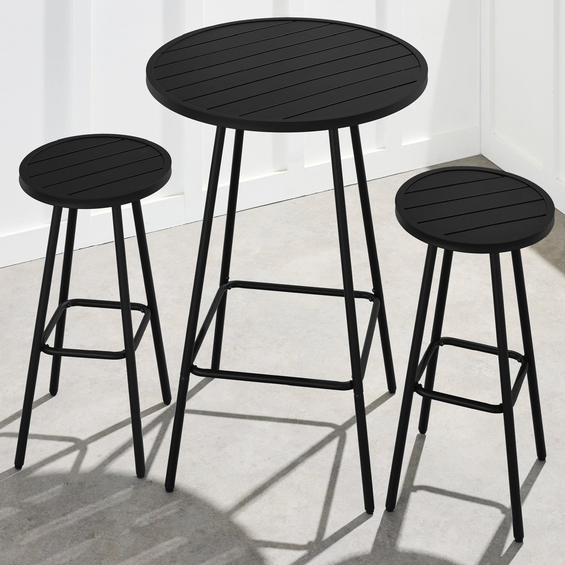 3-Piece Patio Bar Height Bistro Set w/ Backless Stools, Slatted Design