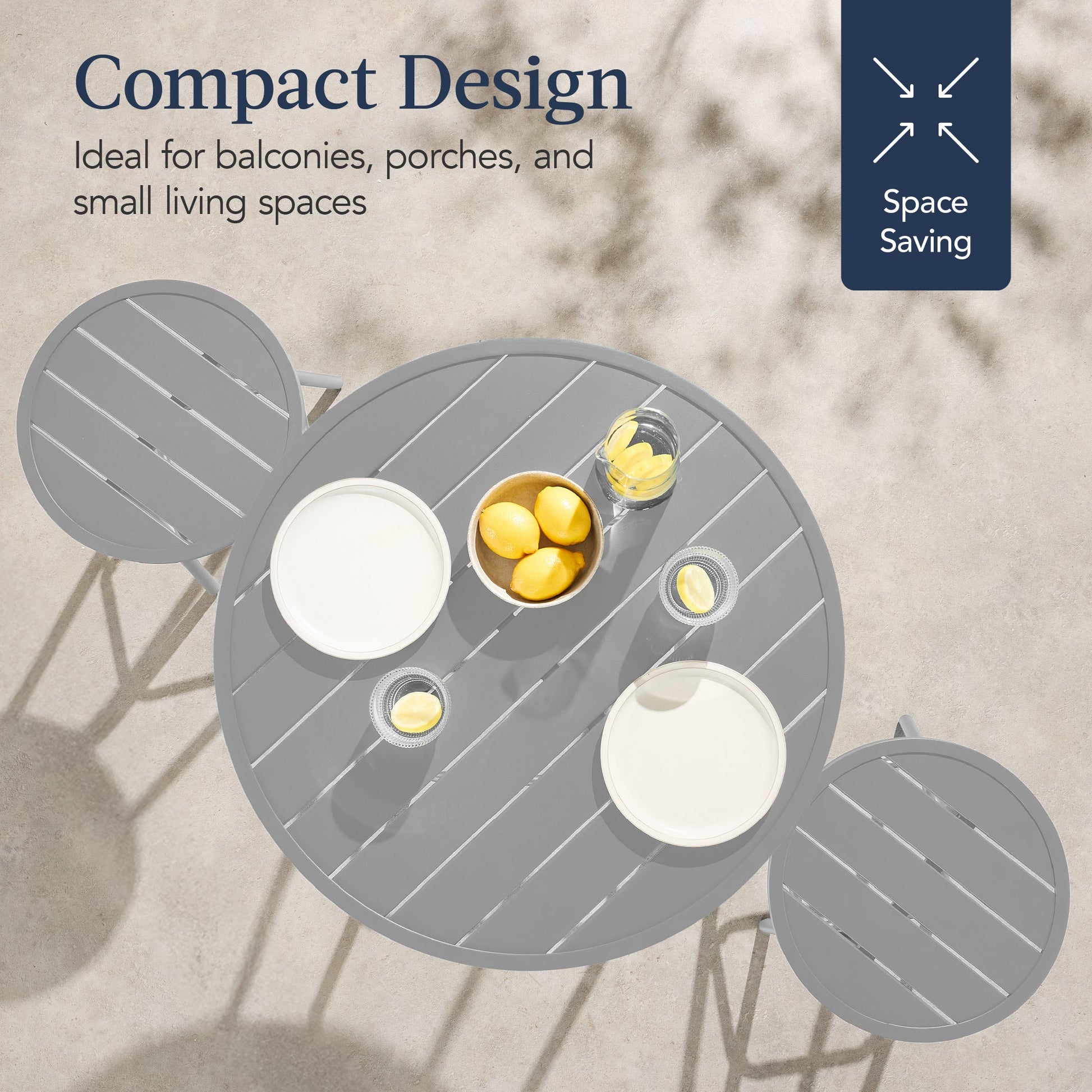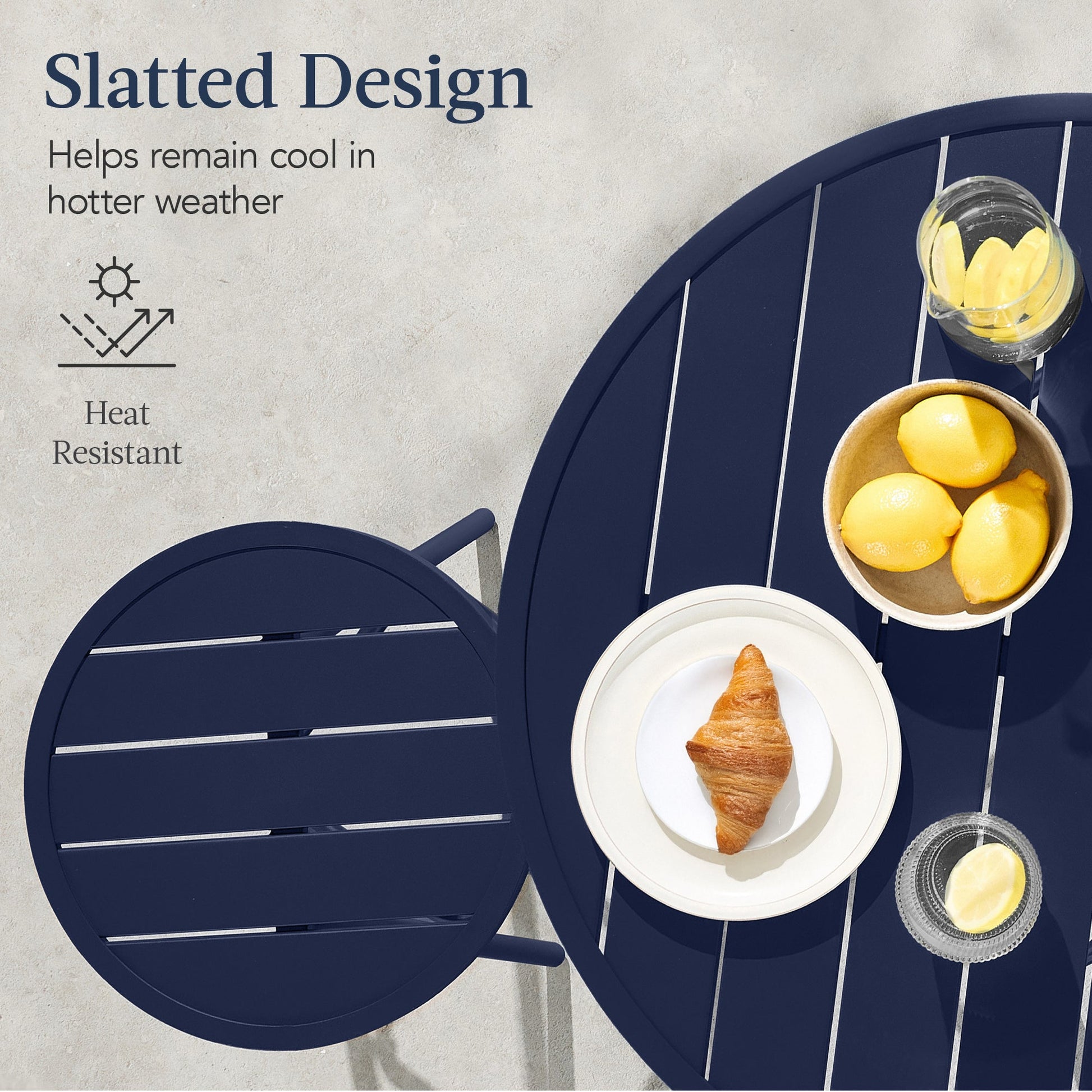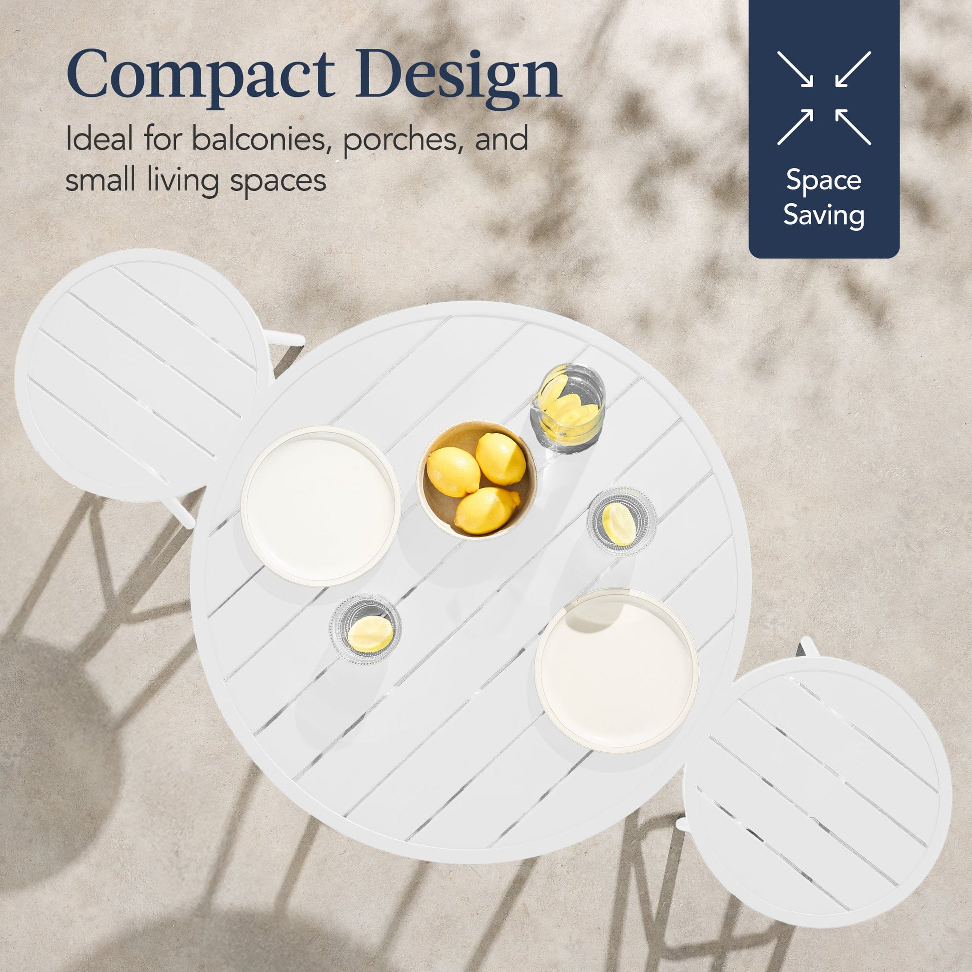 3-Piece Patio Bar Height Bistro Set w/ Backless Stools, Slatted Design
