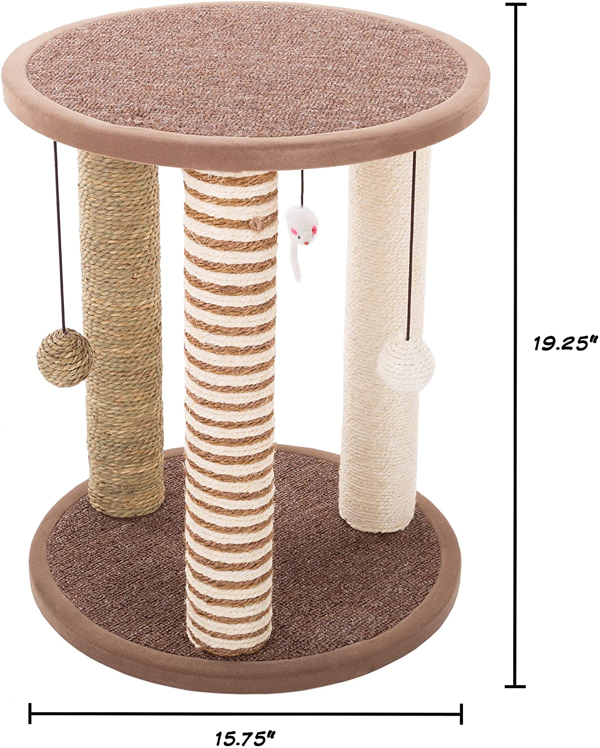 - HEALTHY SCRATCHING – This cat tower for indoor cats uses 3 large sisal rope scratching posts, each featuring a different color scheme or design, perfect to keep cats interested time and time again - or for households with multiple kitties