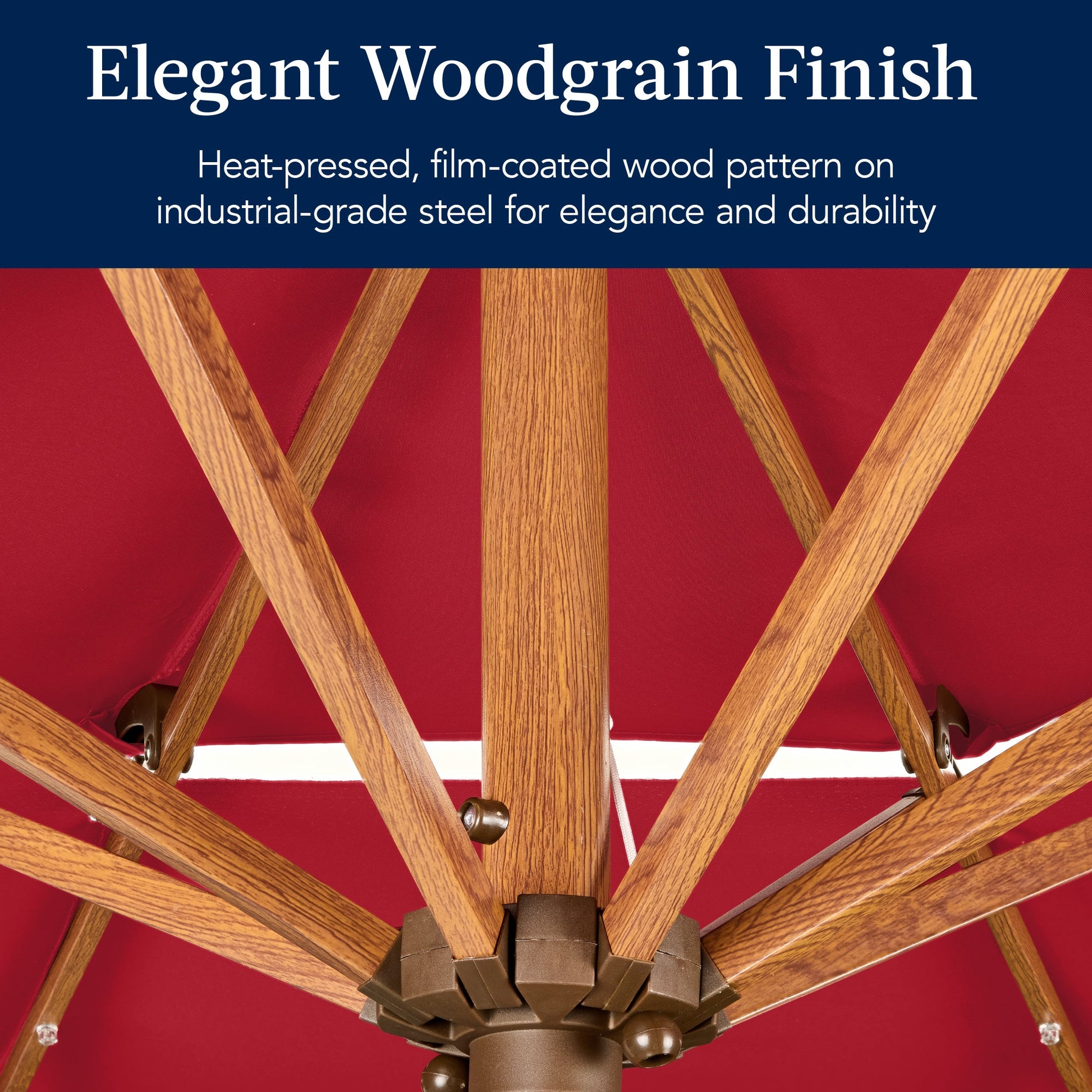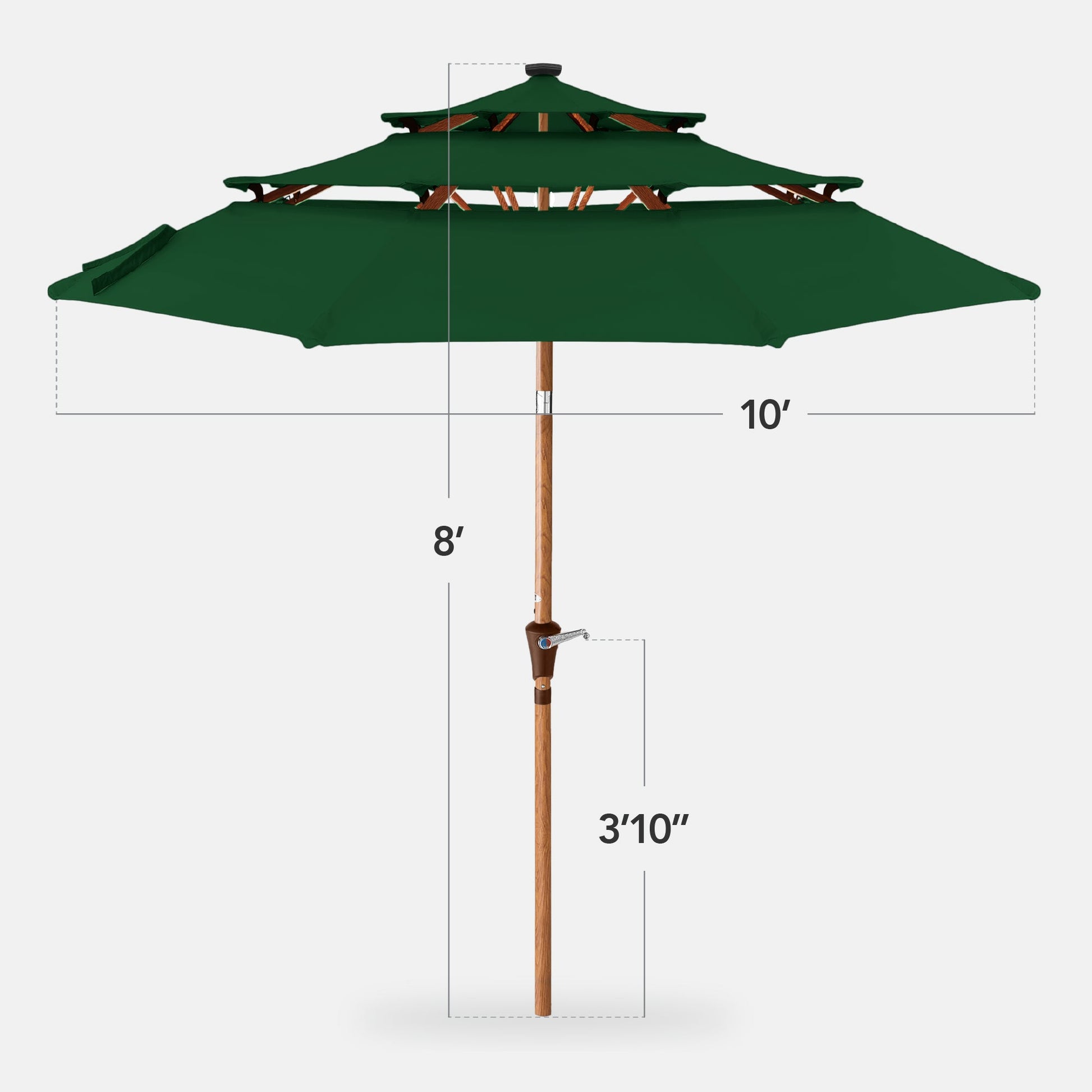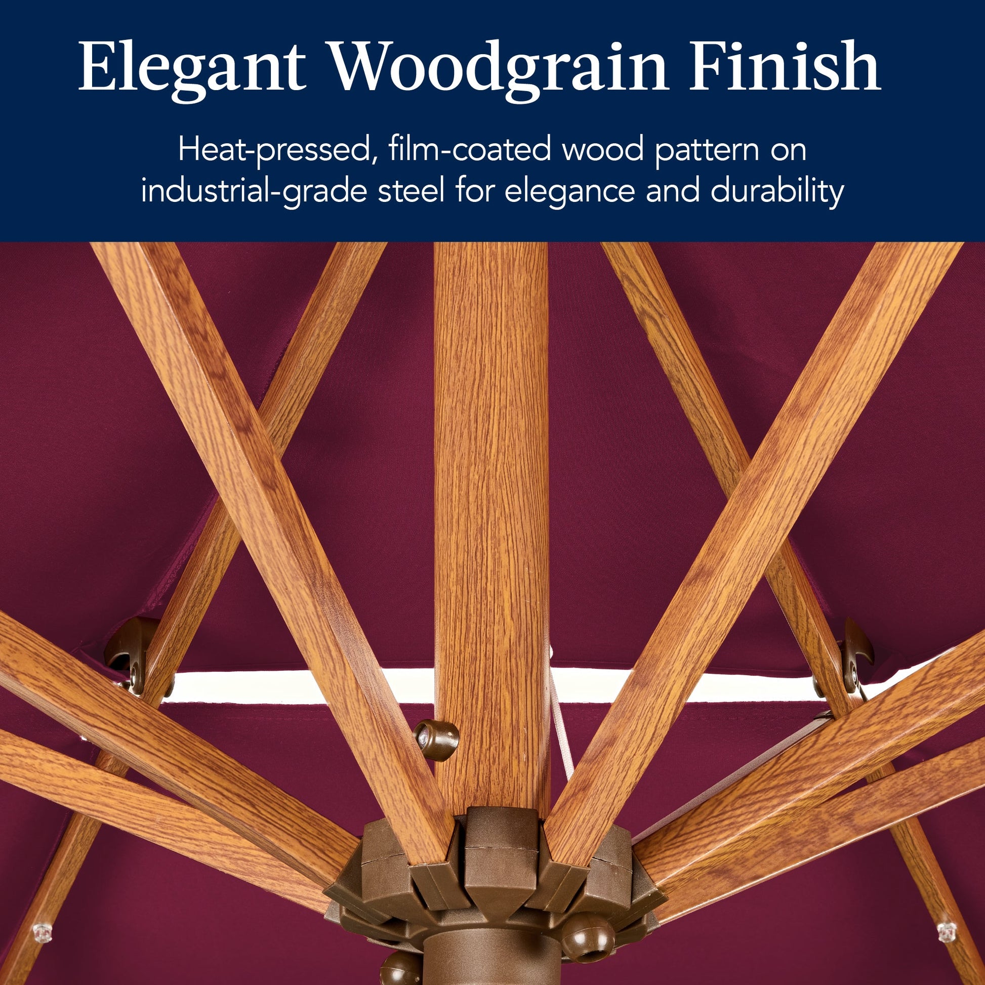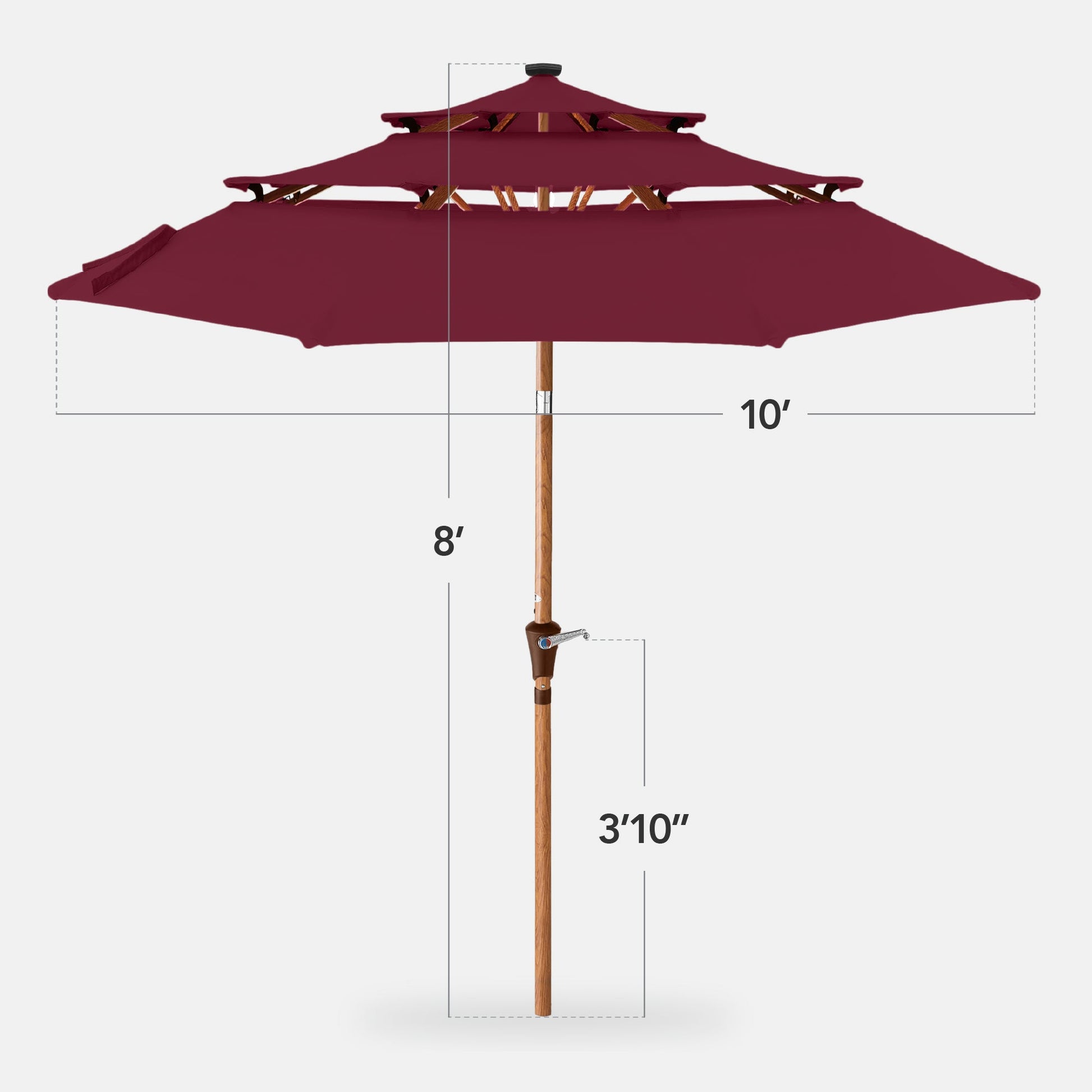 3-Tier Woodgrain Pattern Solar Patio Umbrella, Tilt Adjustment - 10ft