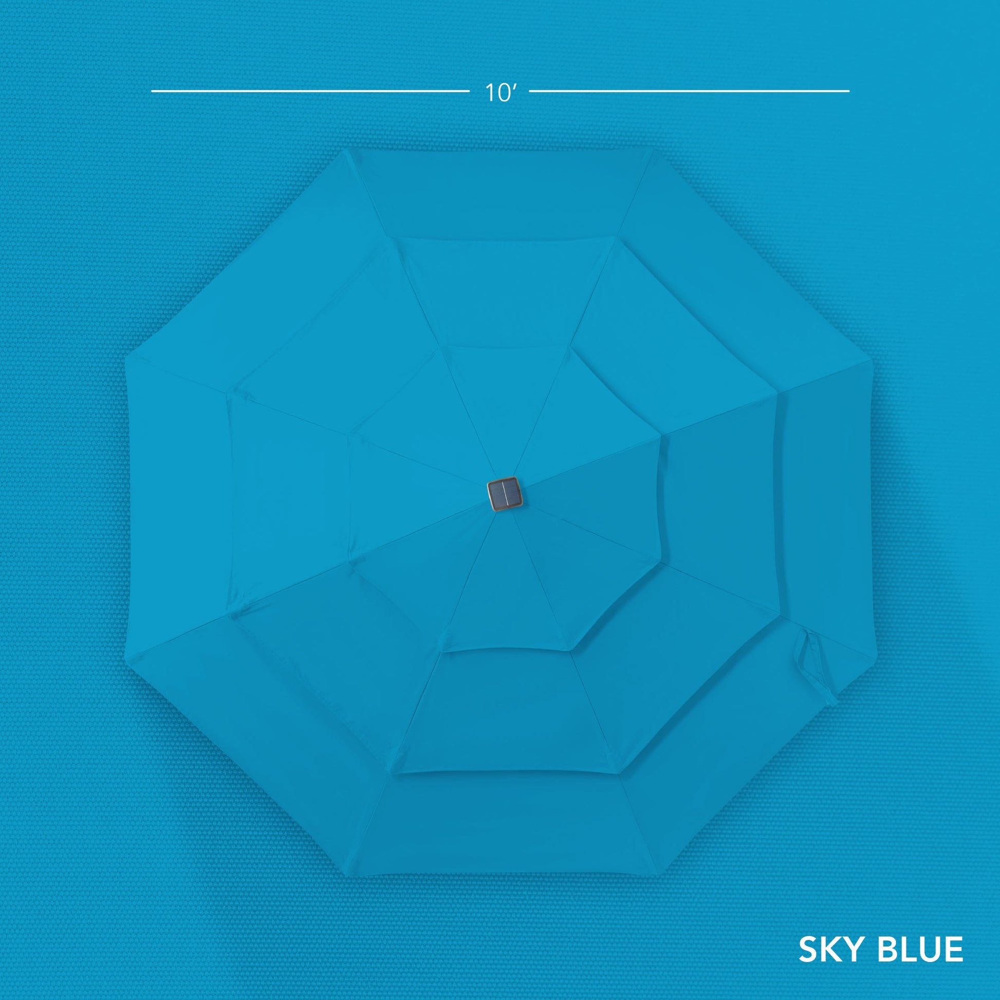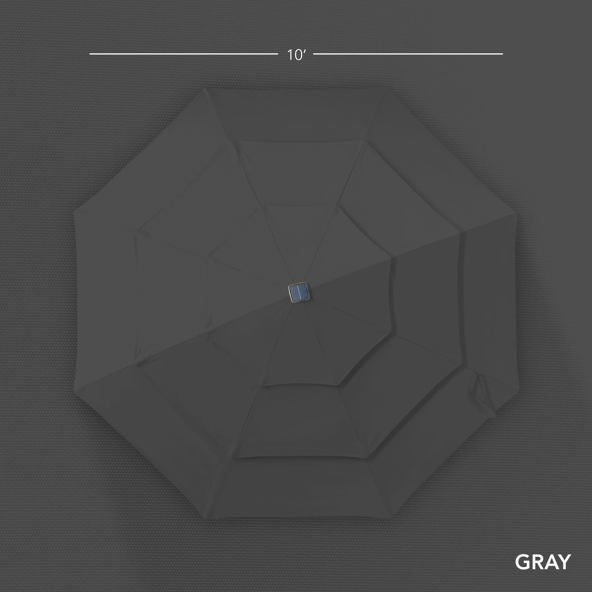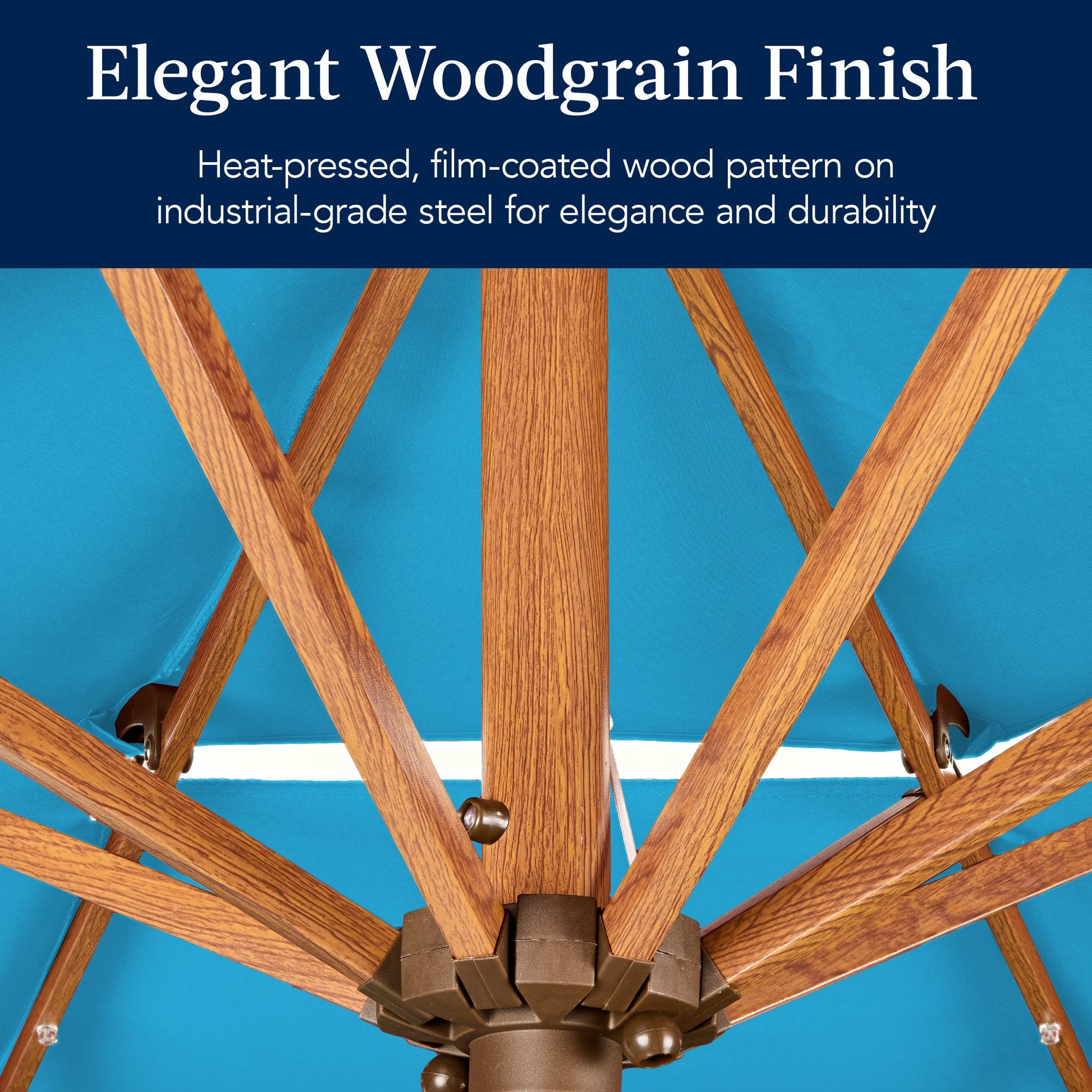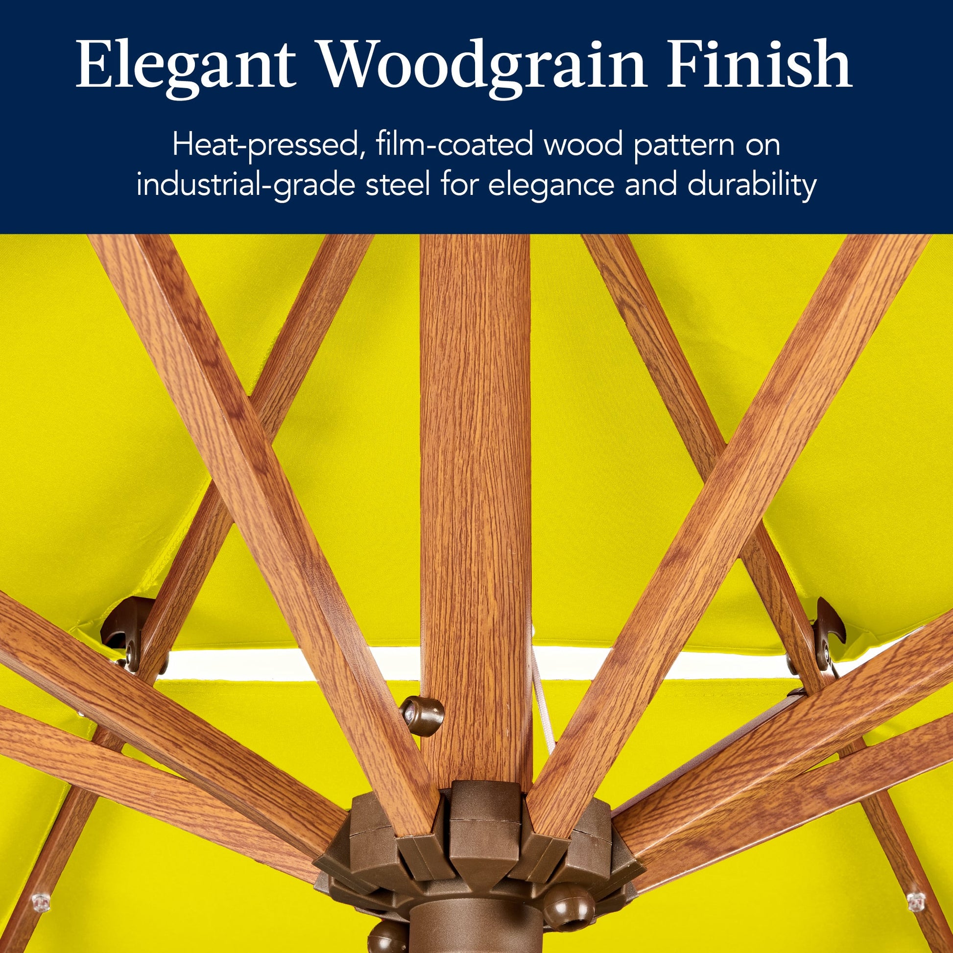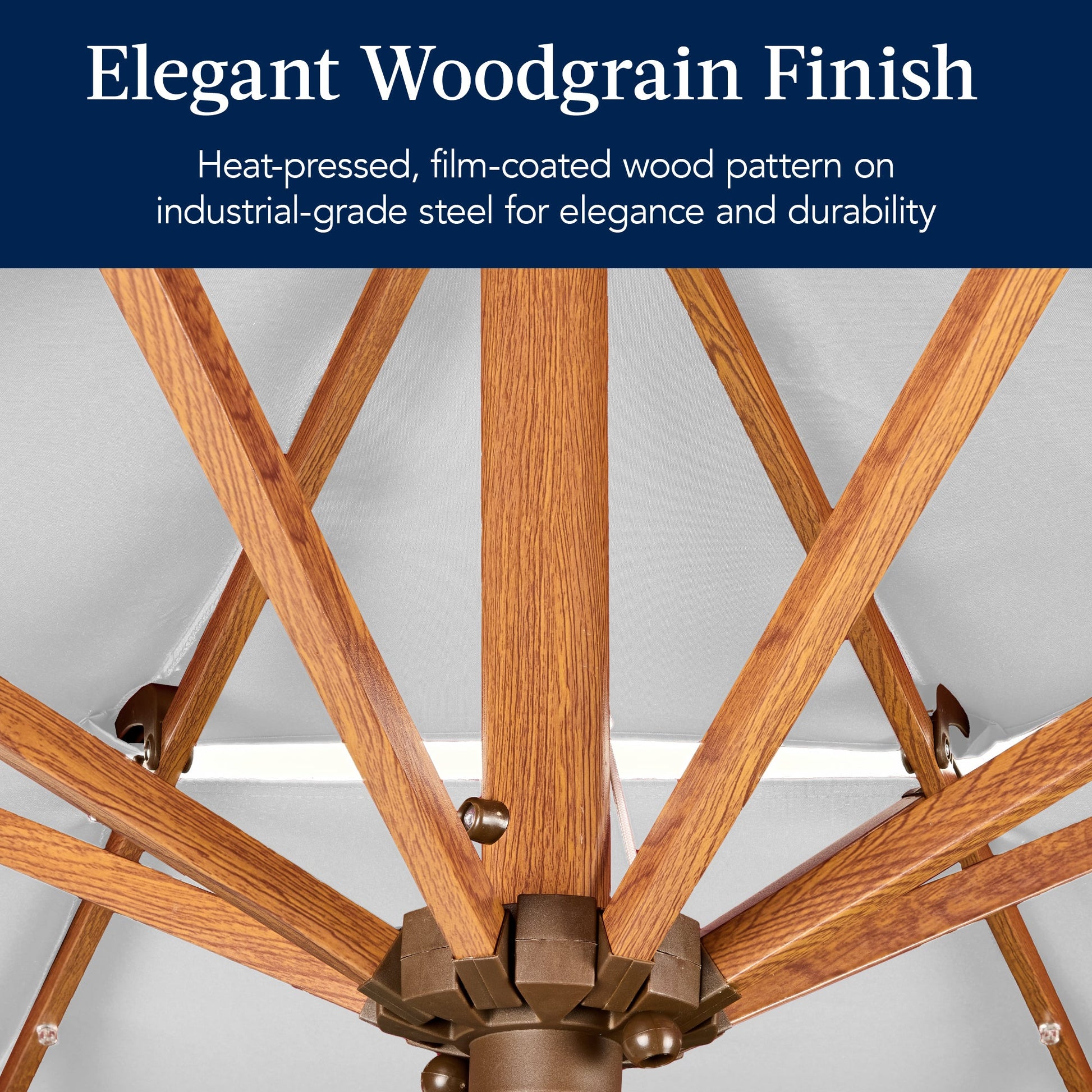 3-Tier Woodgrain Pattern Solar Patio Umbrella, Tilt Adjustment - 10ft