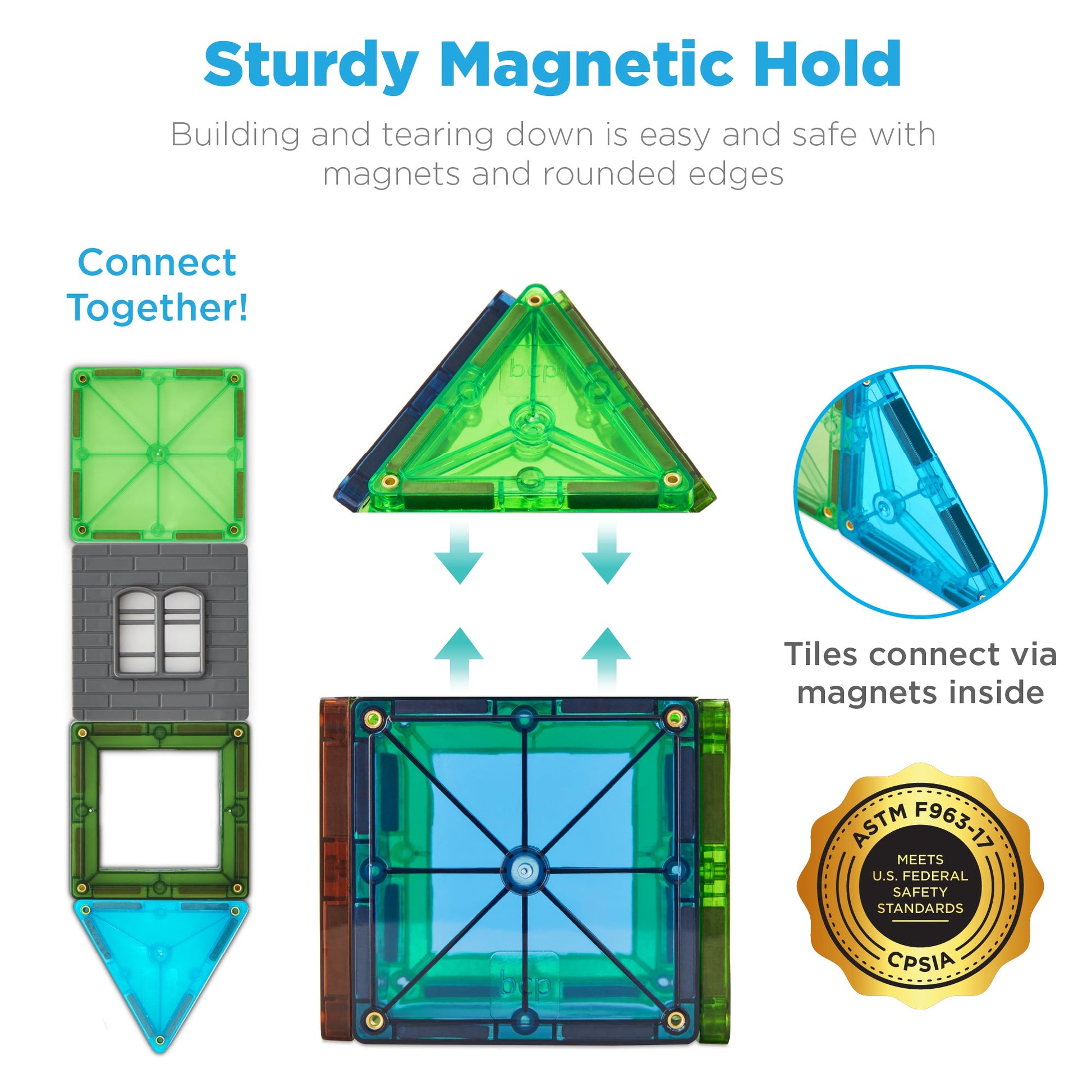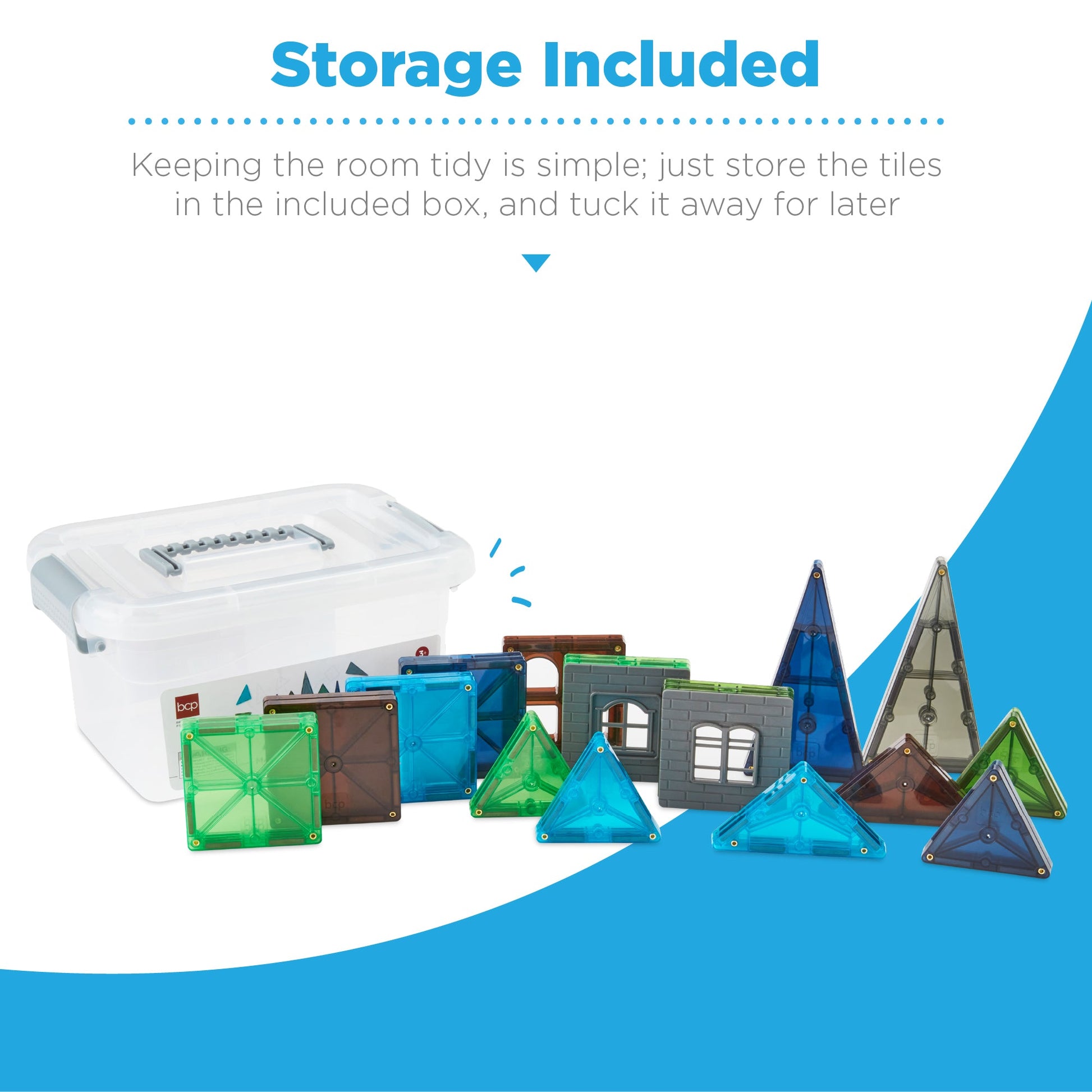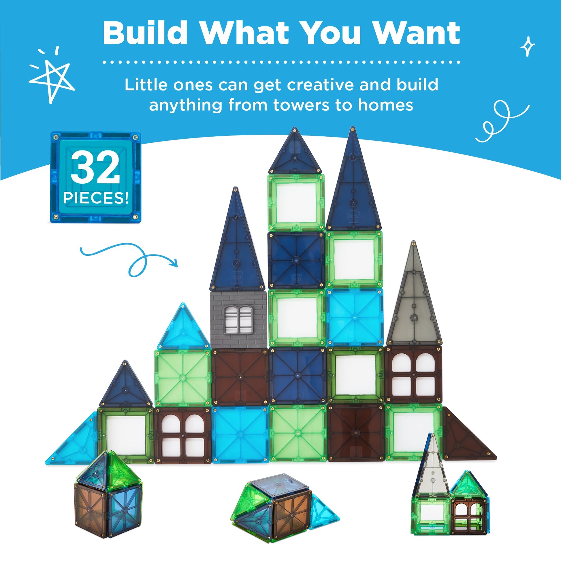 32-Piece Kids Mini Magnetic Tiles Educational STEM Toy Set w/ Carrying Case