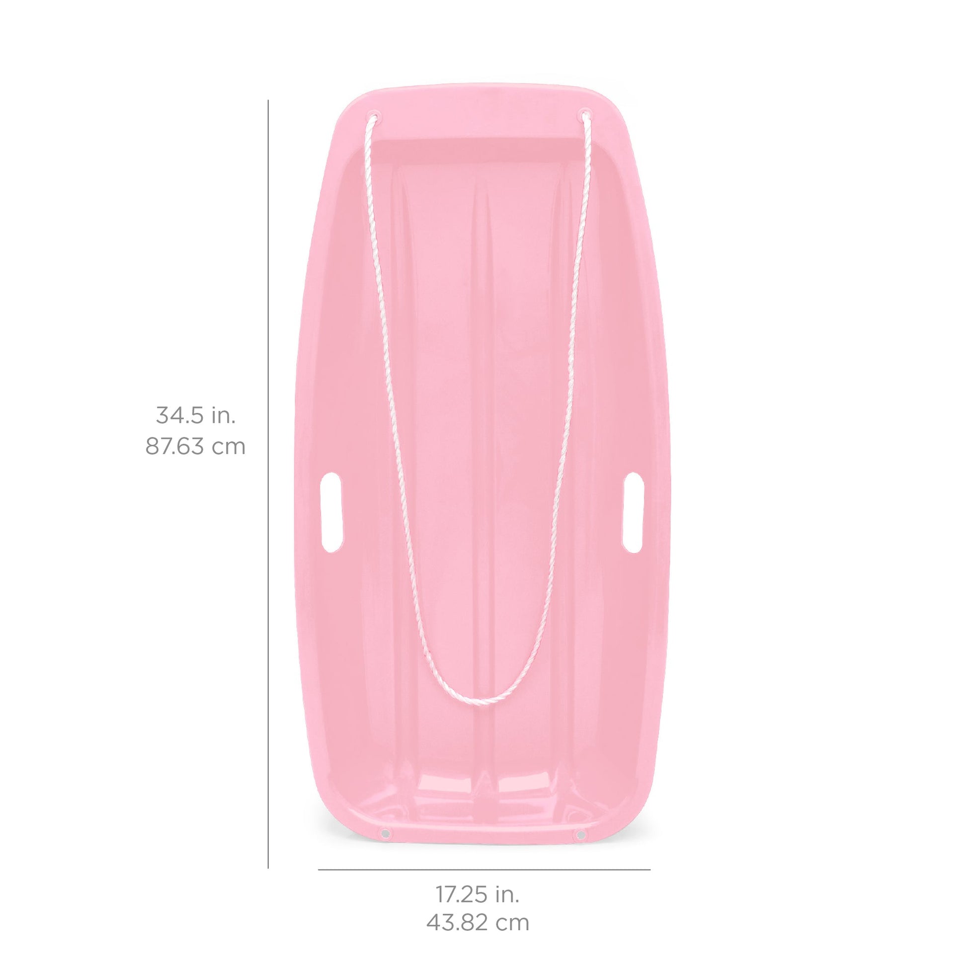 Kids Outdoor Plastic Toboggan Snow Sled Board w/ Pull Rope, Handles - 35in