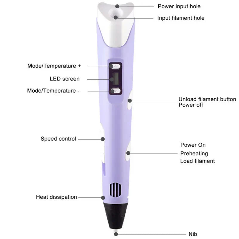 ● The second generation pen can use ABS and PLA consumables, but PLA is colorless, odorless, non-toxic, healthy and environmentally friendly.