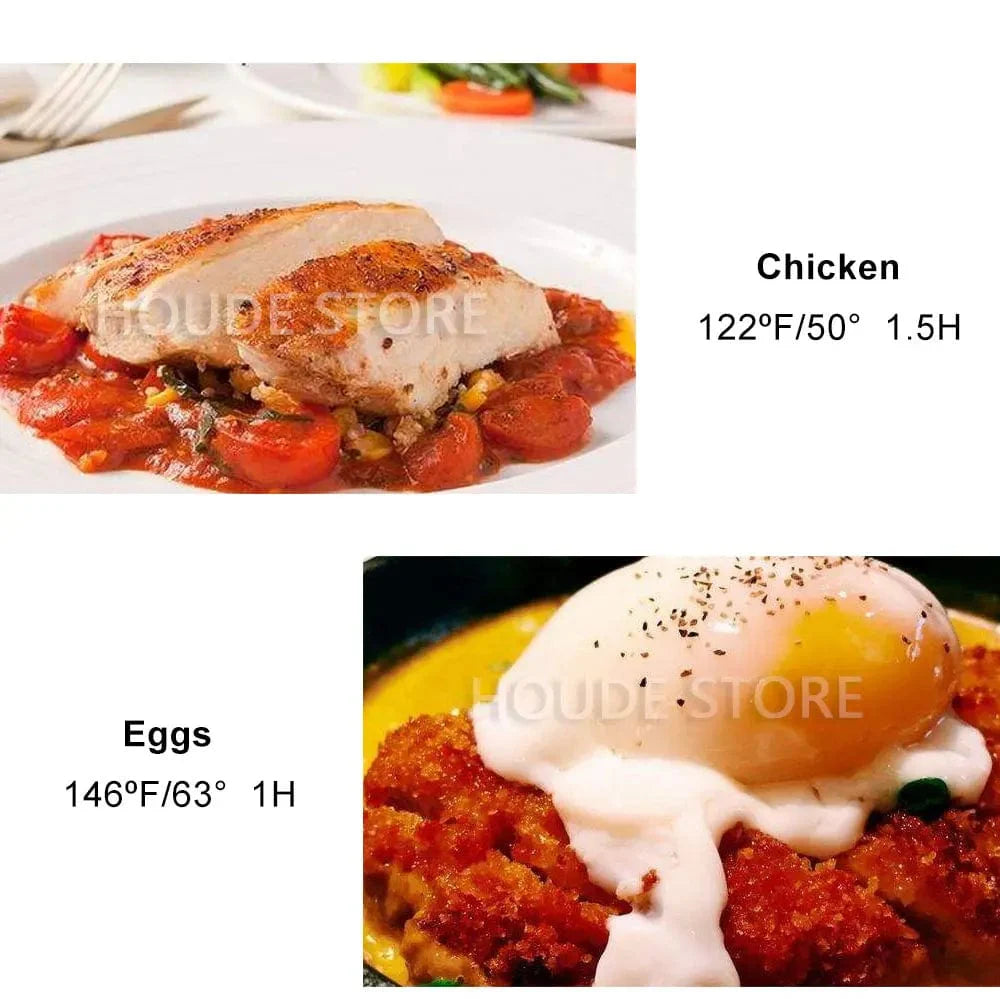 Experience the convenience of quick and reliable cooking with our powerful 1200W heater. This sous vide cooker heats water faster and maintains the desired temperature with exceptional accuracy. Say goodbye to uneven cooking and hello to consistently delicious meals. Whether you're preparing tender steaks, succulent chicken, or delicate fish, the 1200W heater ensures every dish is cooked to perfection, retaining its natural flavors and nutrients.