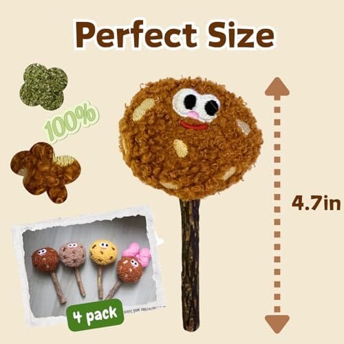 - 🍭 Cute Cookie Lollipops for Cats: The package contains 4 lollipop cat toys, each stuffed with catnip and featuring a silvervine stick. The 4.7x2.7 inch lollipop is perfect for interactive play—ideal for indoor cats for teeth cleaning, biting, chewing, licking, chasing, and kicking.