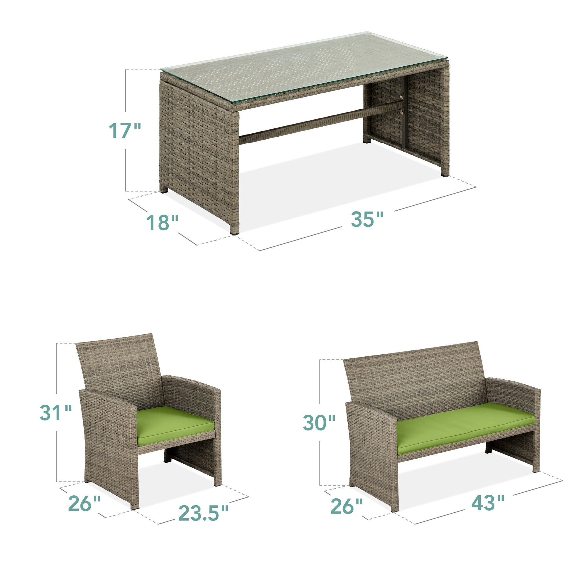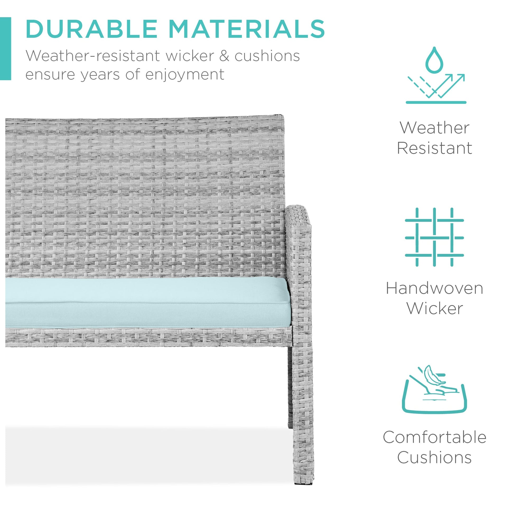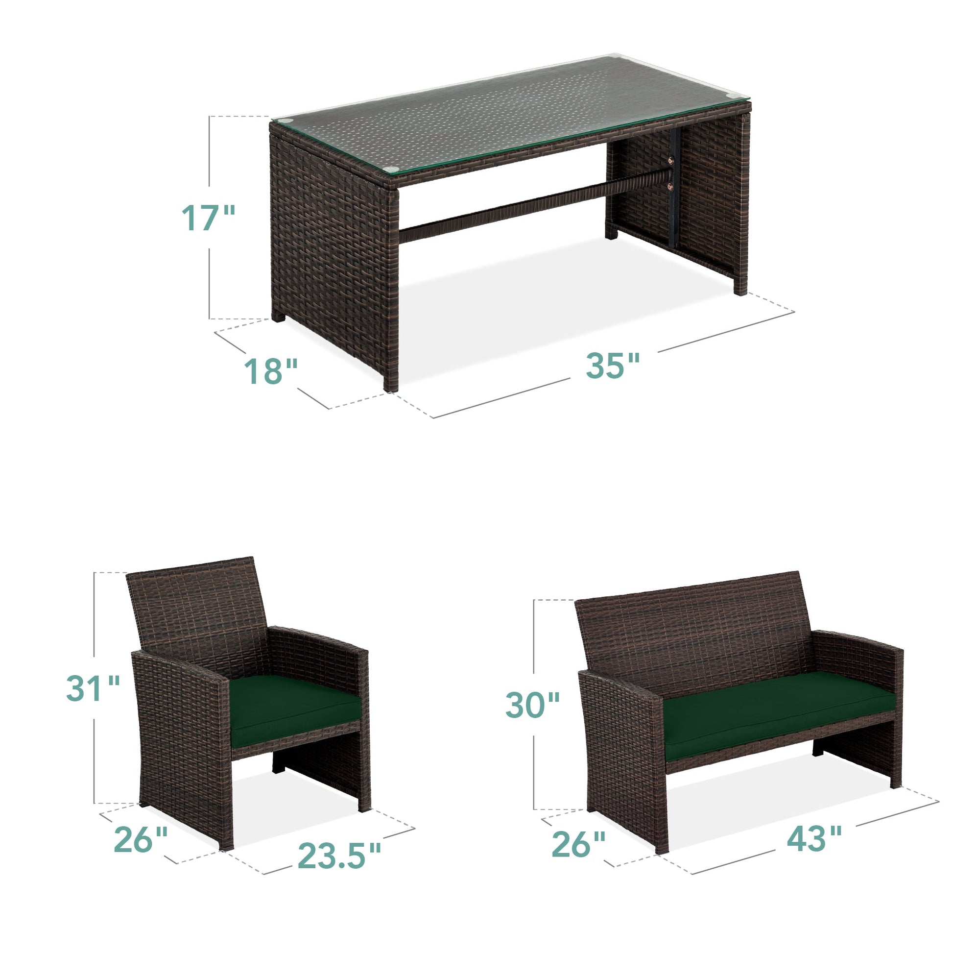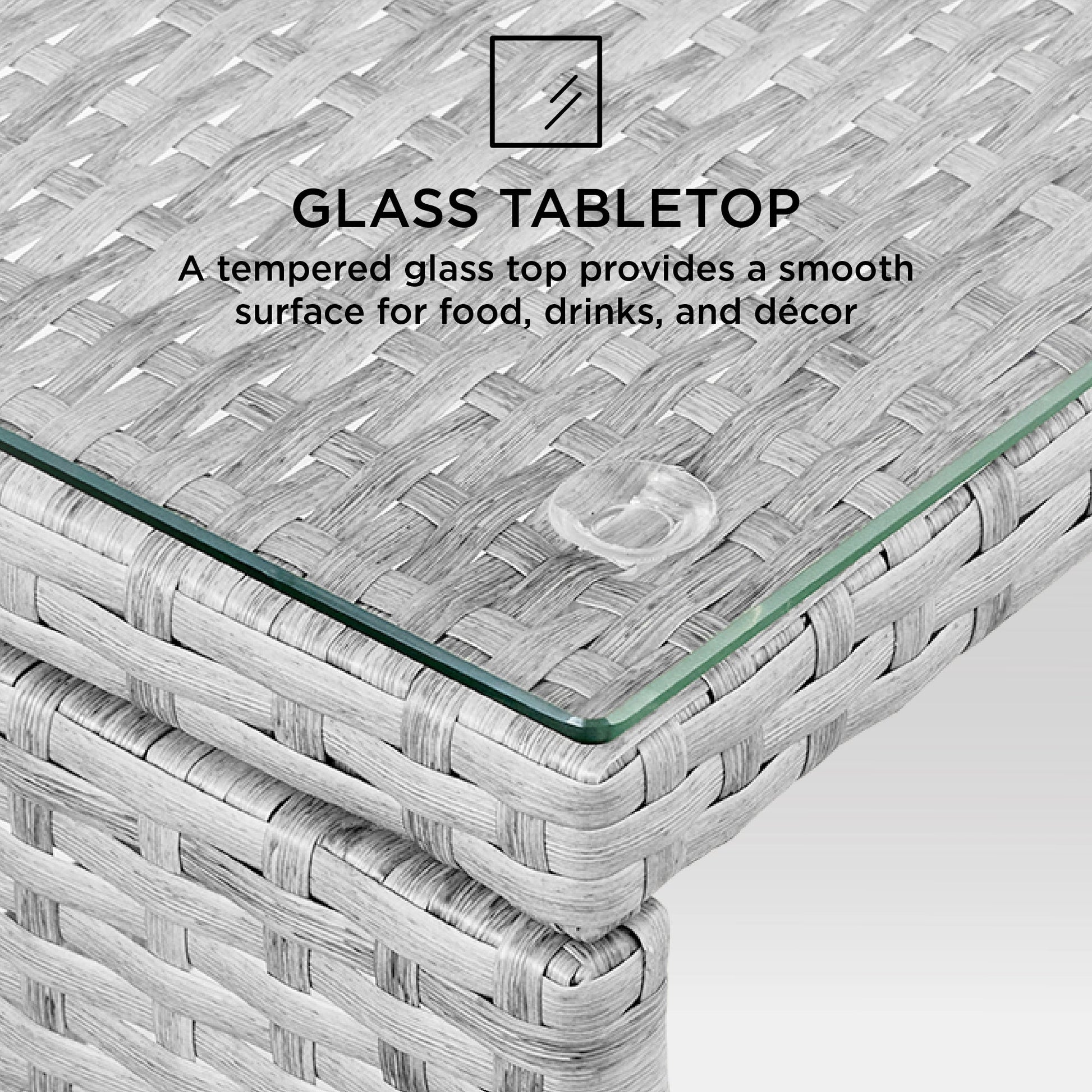 4-Piece Outdoor Wicker Conversation Patio Set w/ 4 Seats, Glass Table Top