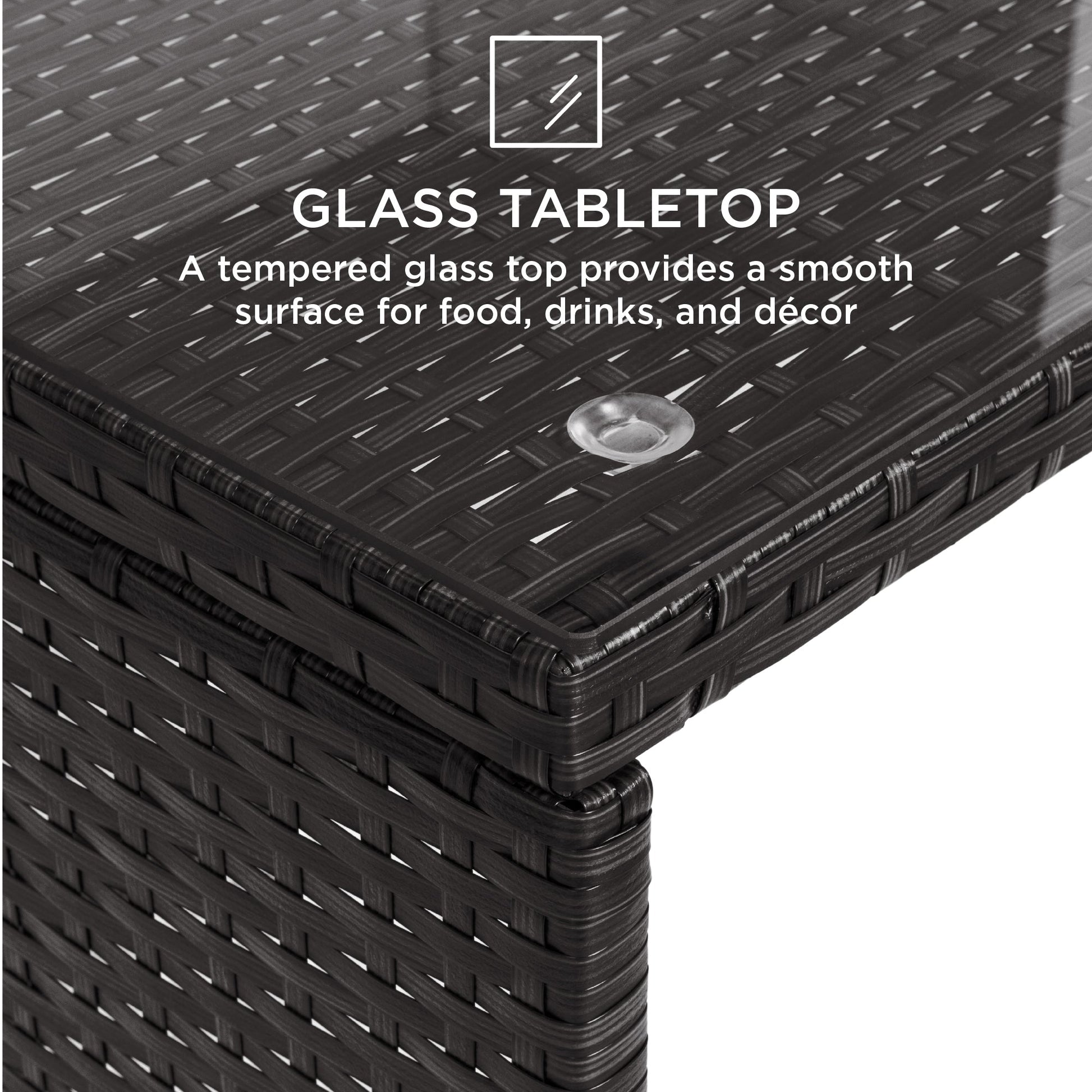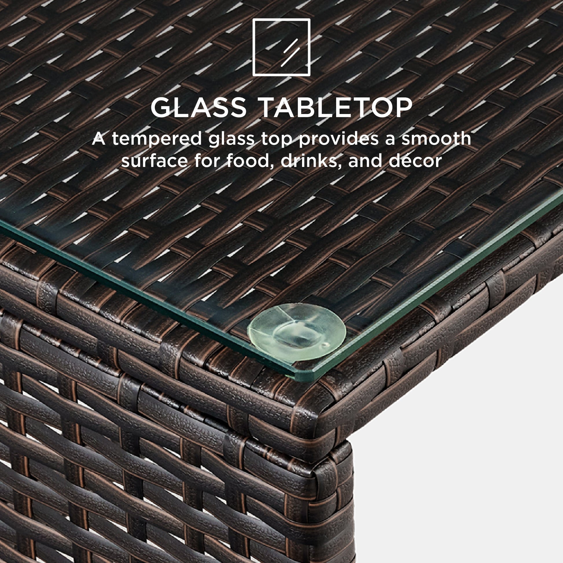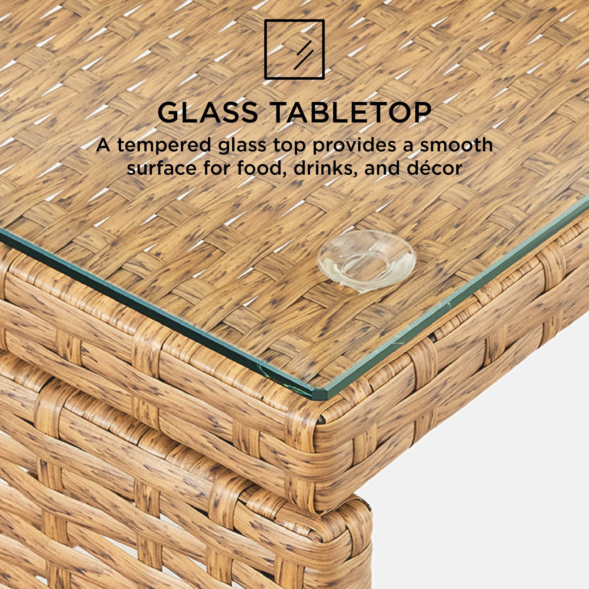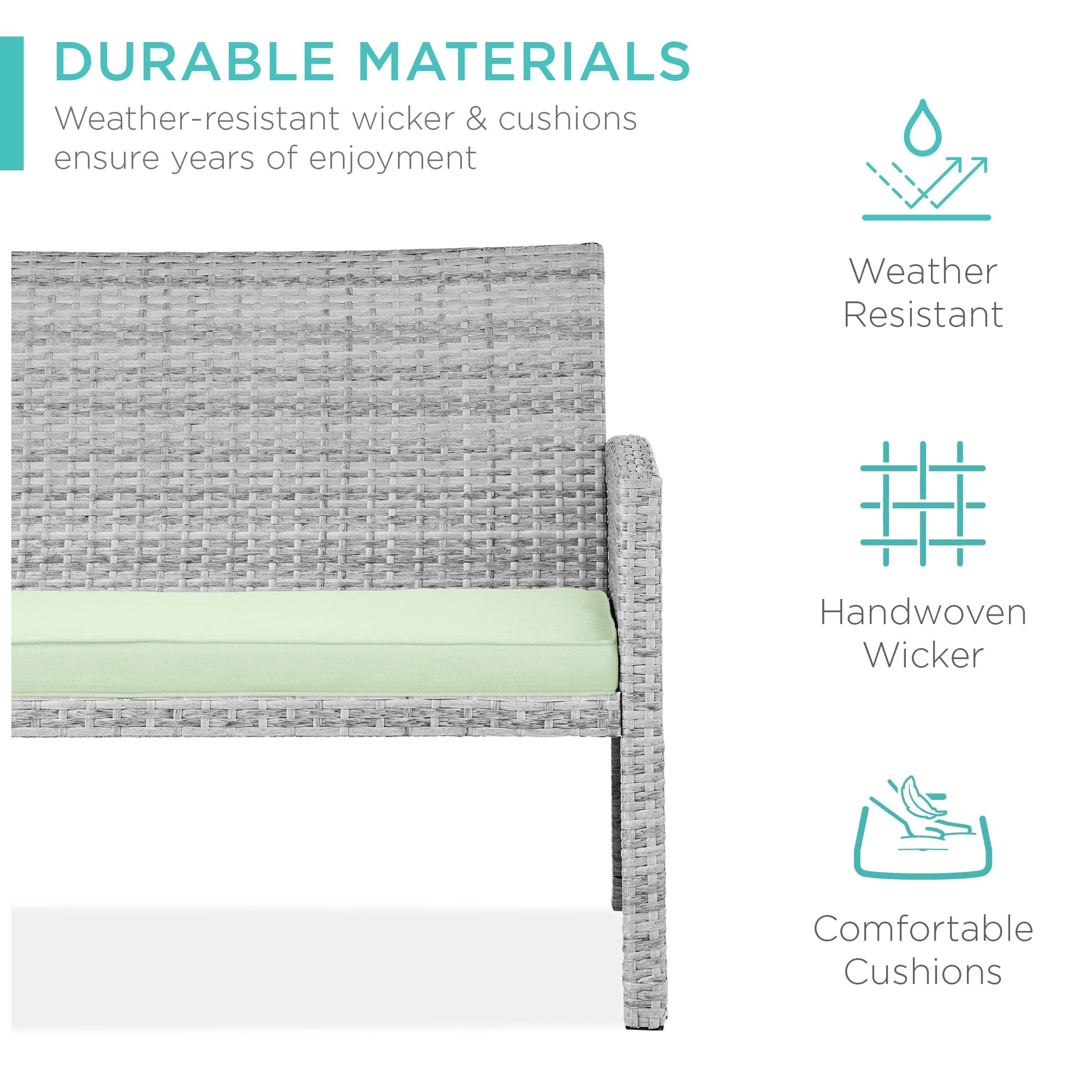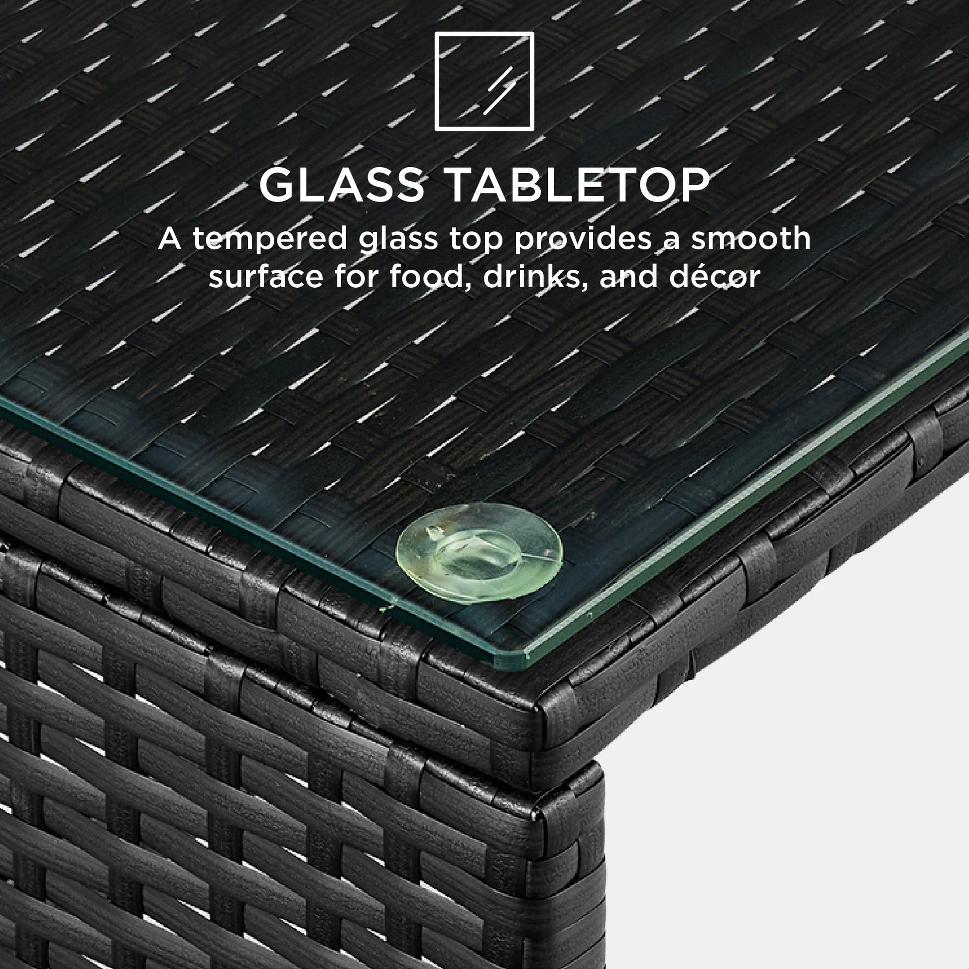 4-Piece Outdoor Wicker Conversation Patio Set w/ 4 Seats, Glass Table Top