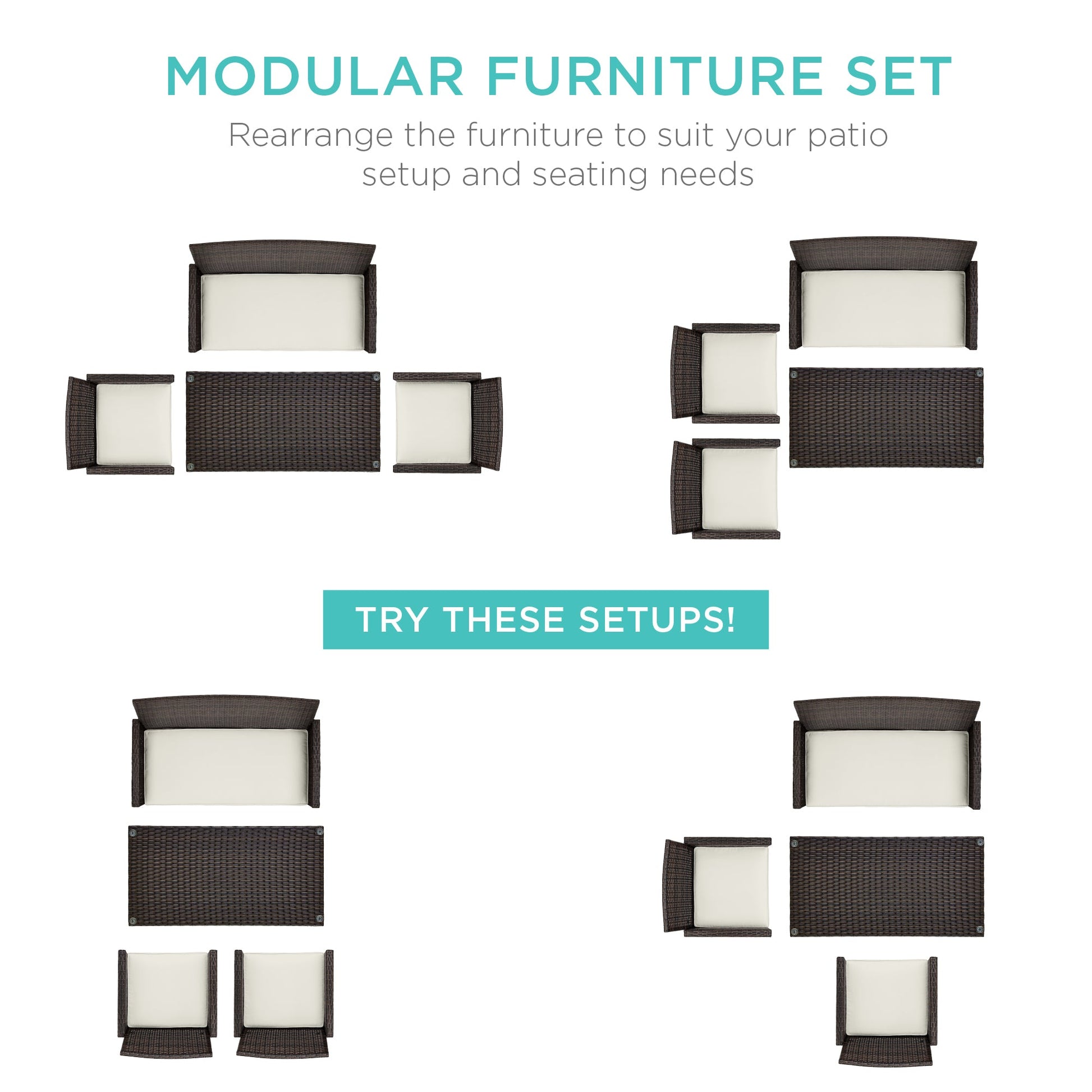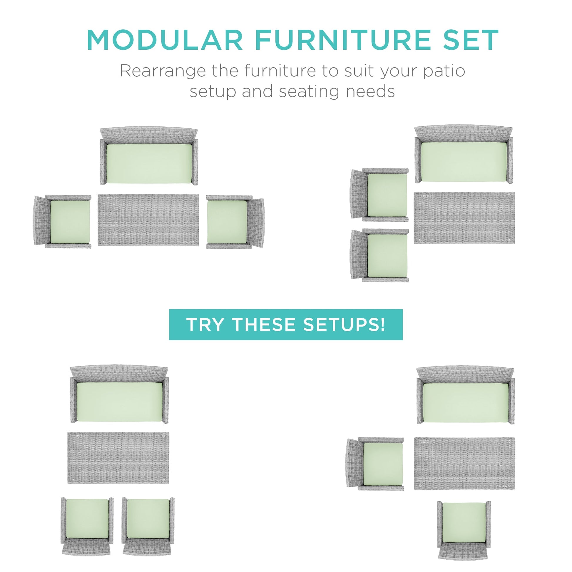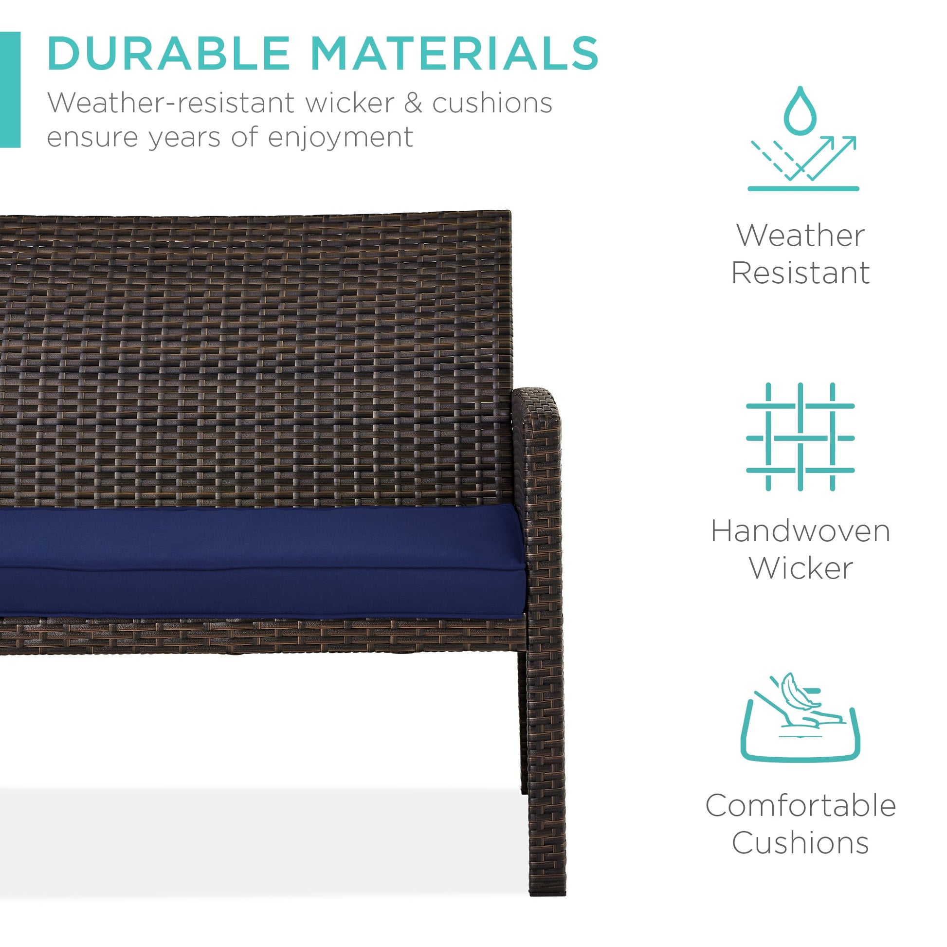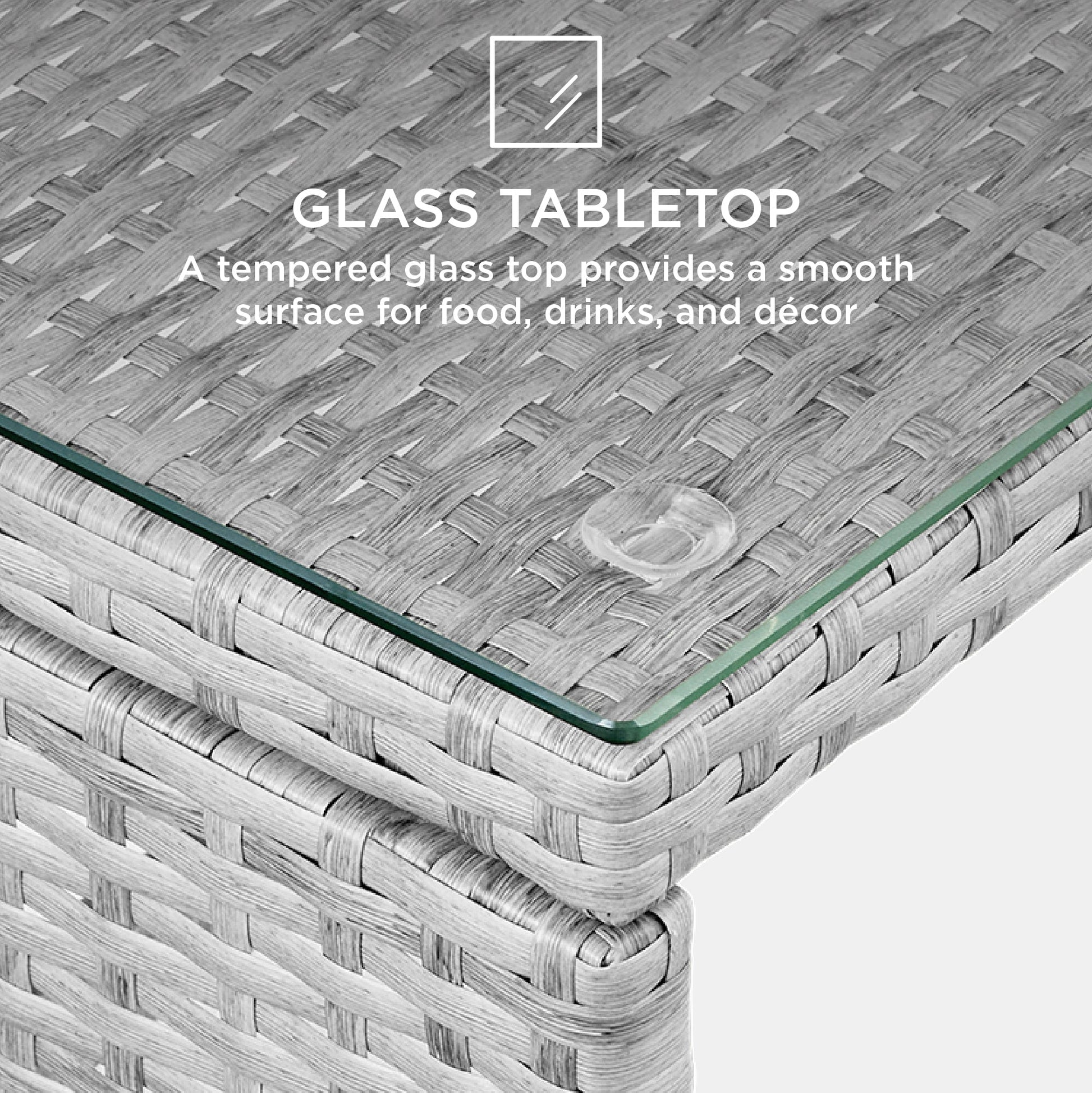 4-Piece Outdoor Wicker Conversation Patio Set w/ 4 Seats, Glass Table Top
