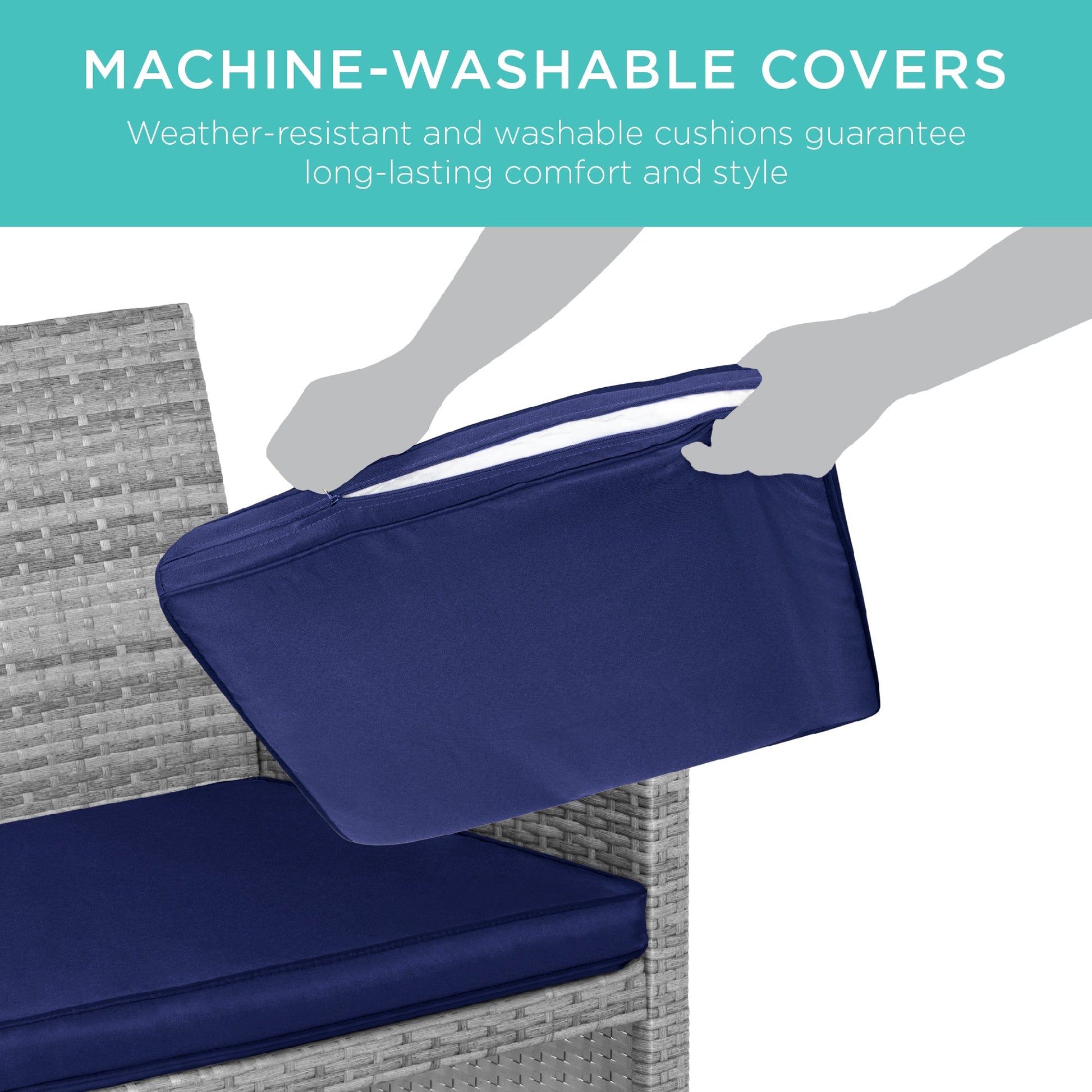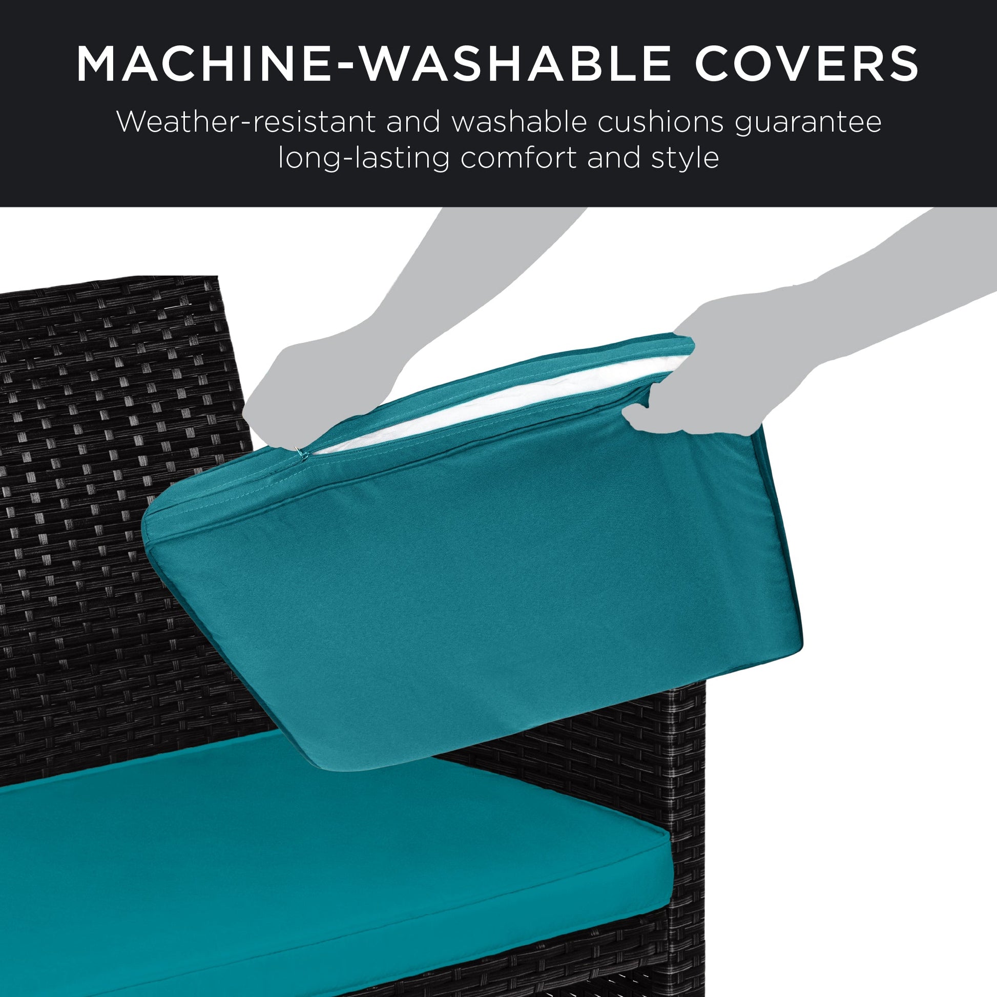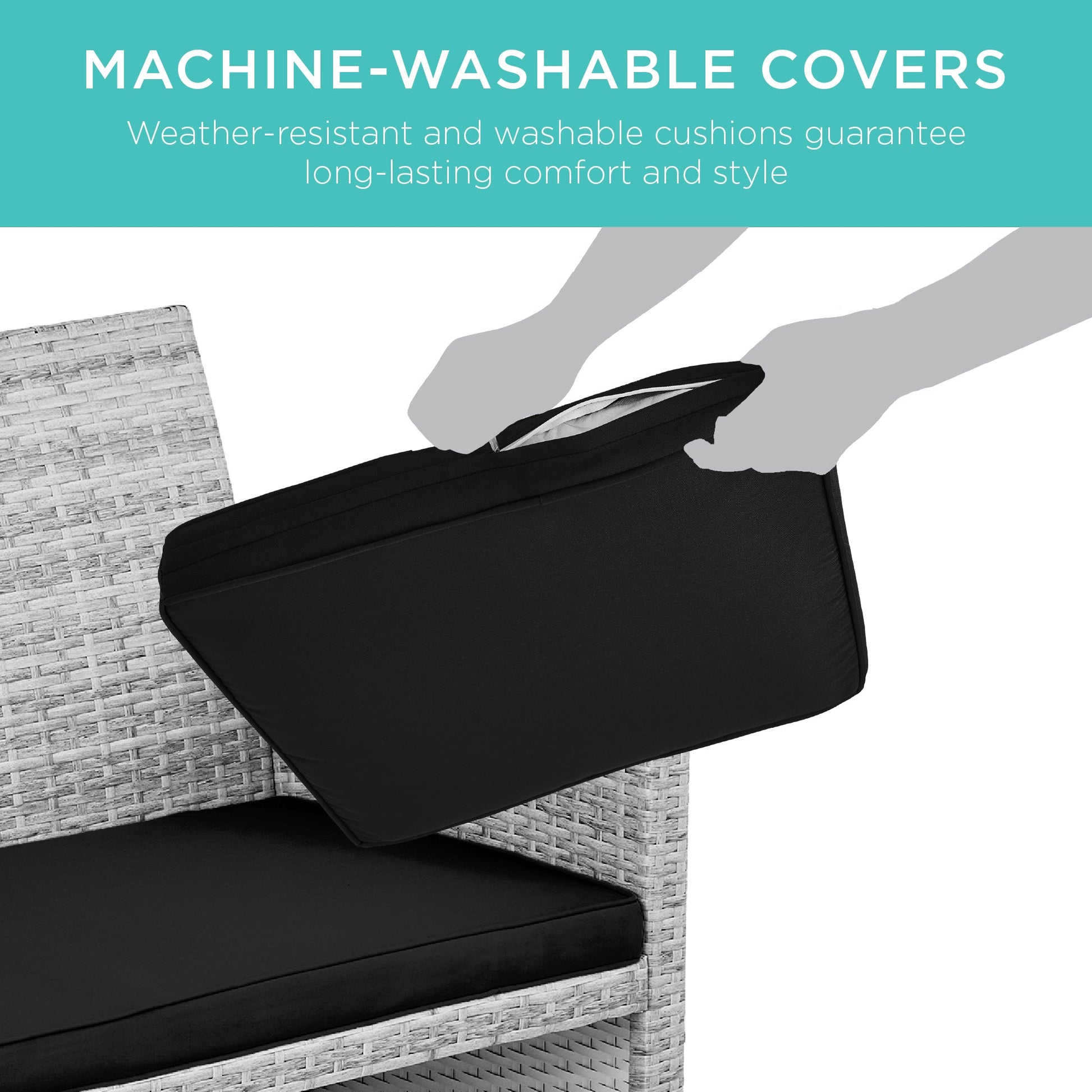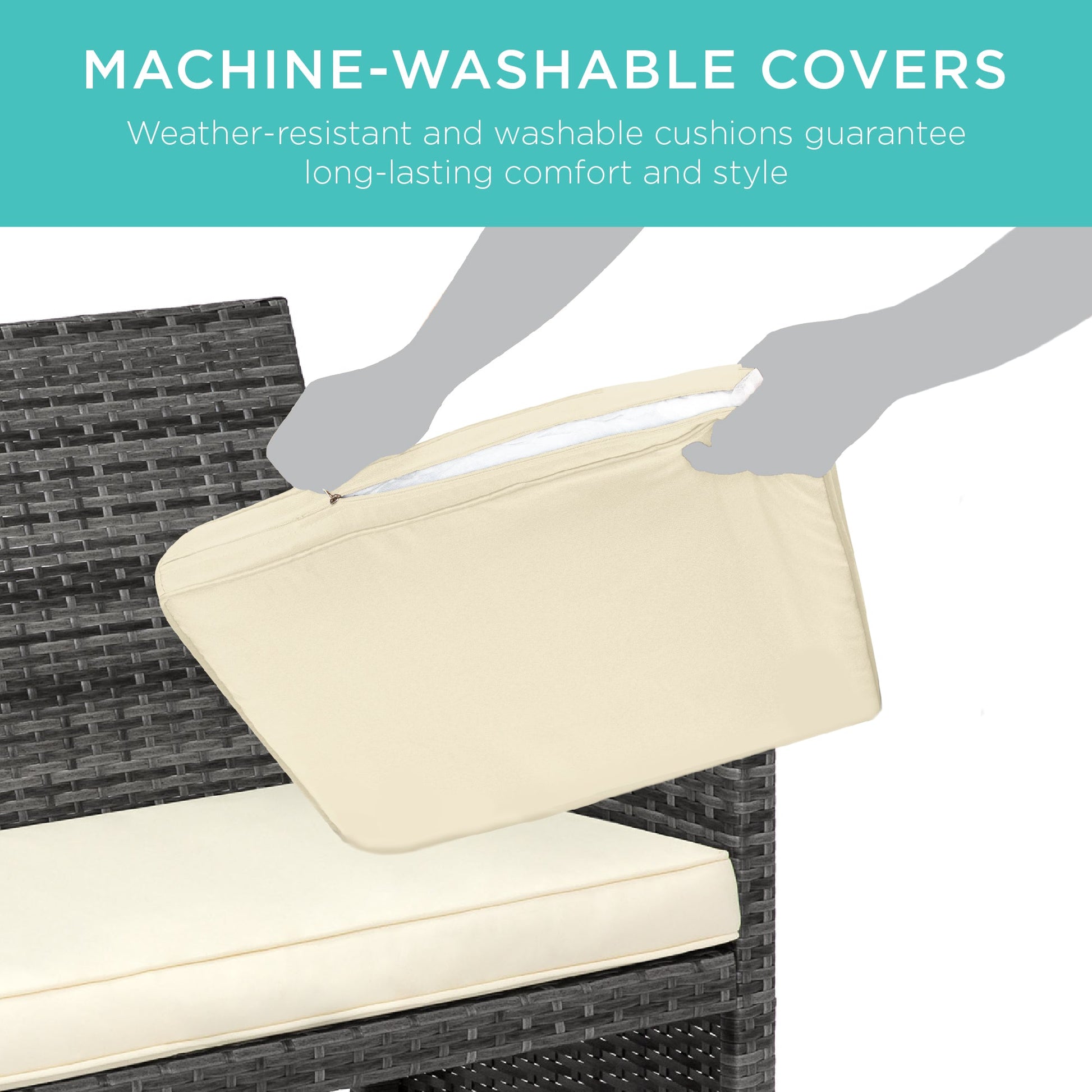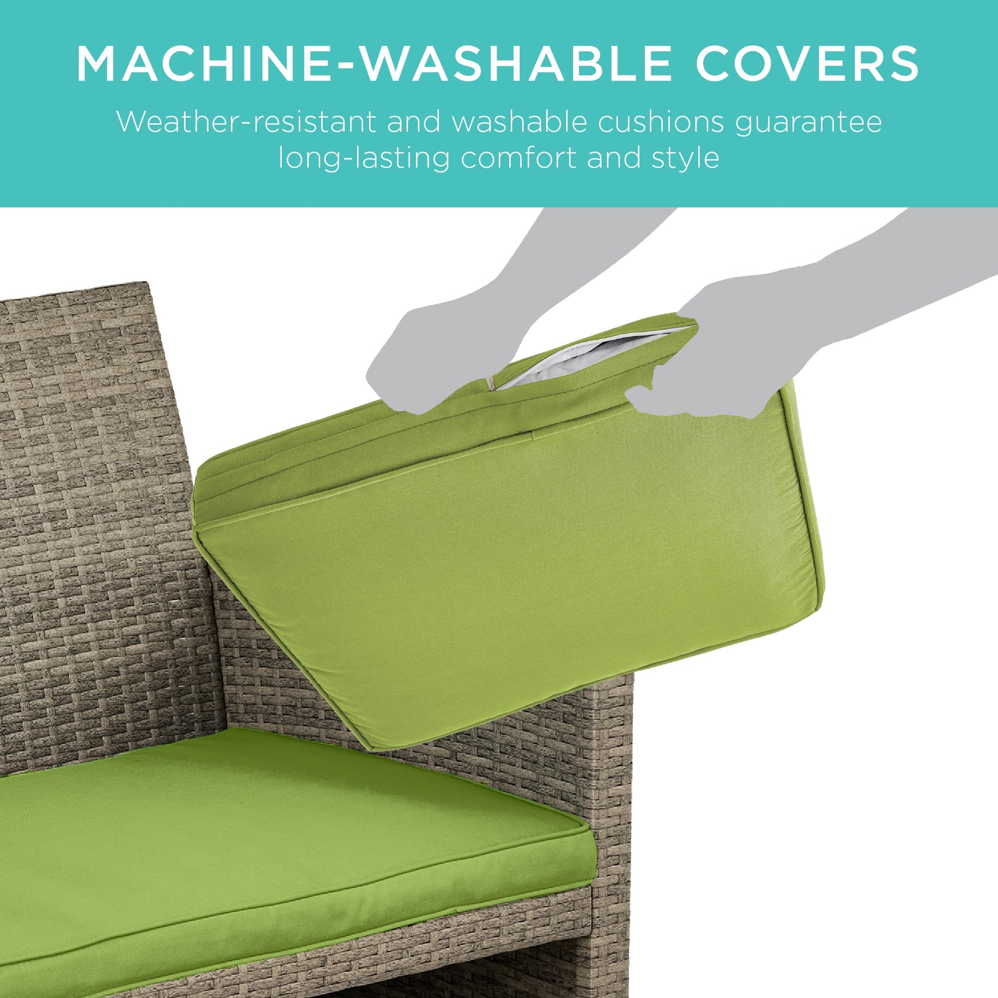 4-Piece Outdoor Wicker Conversation Patio Set w/ 4 Seats, Glass Table Top