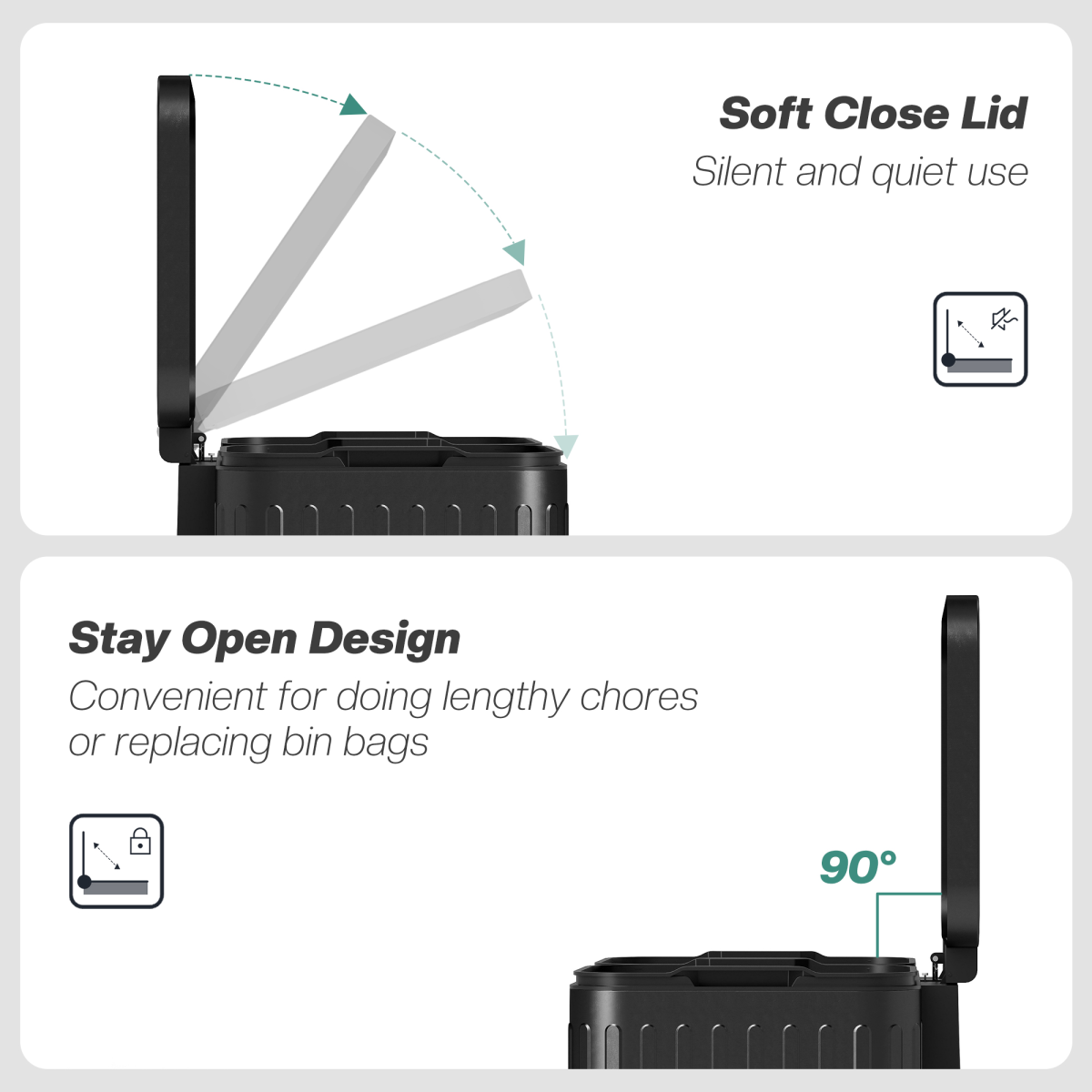 The soft-close lid not only keeps odors contained but also minimizes noise and provides a safe experience for your family. Additionally, the stay-open function ensures easy and quick cleaning, making waste management efficient and hassle-free.