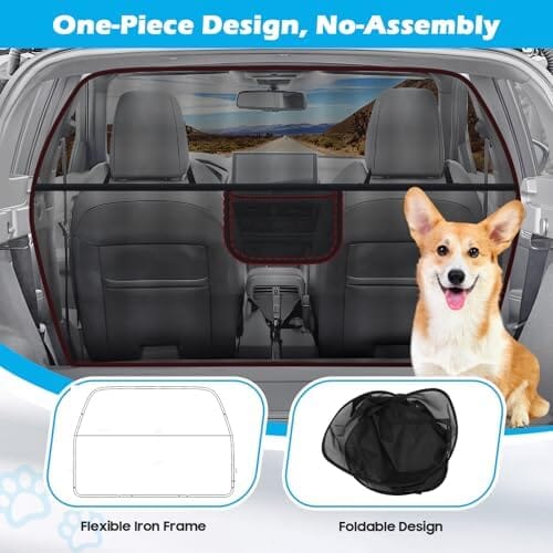 - Foldable & Easy to Install: With a unique foldable design, taking out the dog barrier for suv from bag, the metal frame will stretch out in shape. Just anchor it to the backseat with the straps. Fold it up for easy storage when not in use