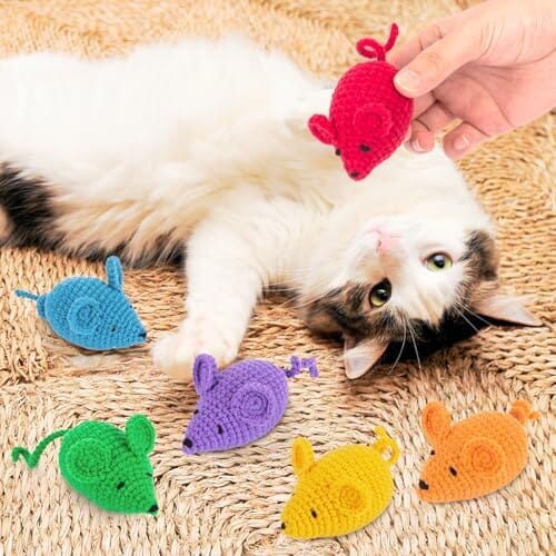 - Value Pack: 6 pcs woolen yarn catnip-filled mice,with 6 different colors.Great gift for cat birthday Halloween Christmas Thanksgiving.Vivid mouse shape,felt ears,and dangling tails, mimicking the multitextured feel of real prey to help stimulate your kitty's hunting instincts and entice play