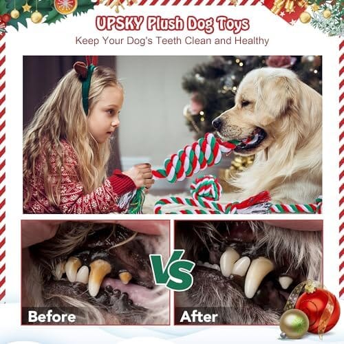 - Great Value Christmas Dog Toys: A variety of dog rope chew toys to keep your dog entertained. This toy set includes a squeaky plush toy and 6 different rope toys. Extra gift bag and greeting card, get more toys at a lower price than buying other toys. Perfect Christmas dog toys for your dog.