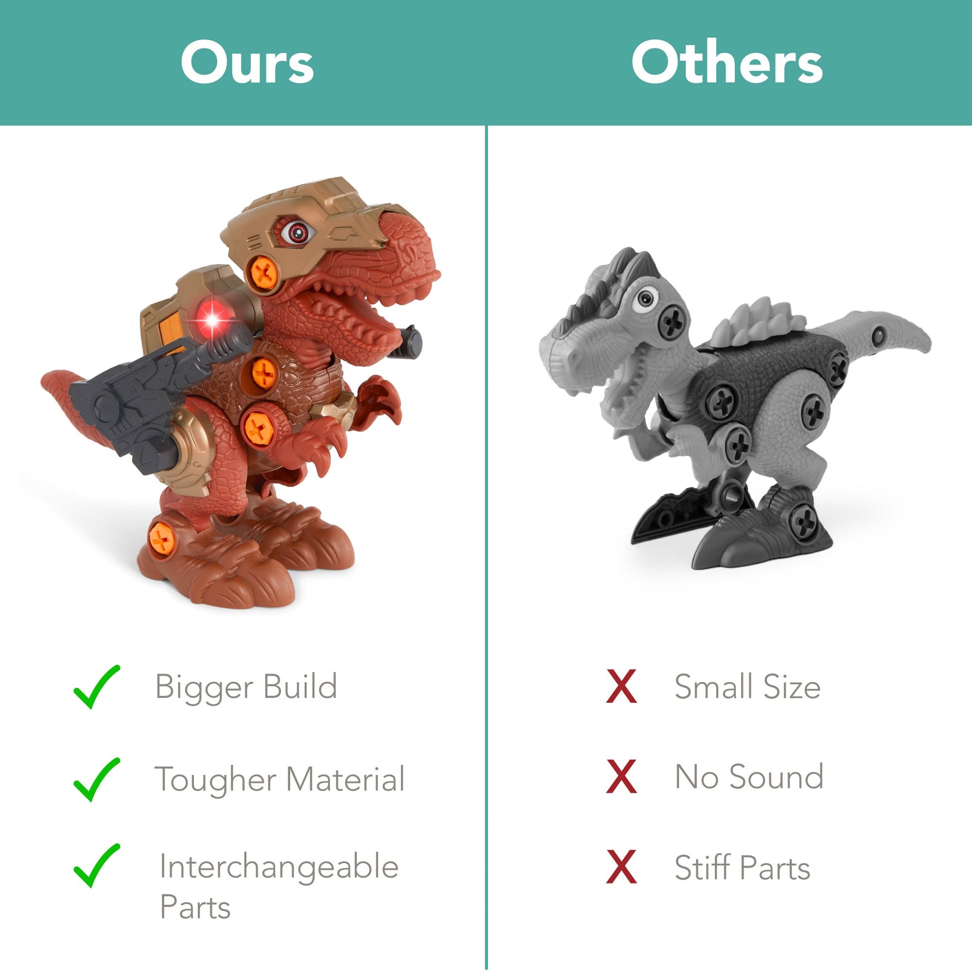 86-Piece Pack of 3 Toy Dinosaurs, STEM Set w/ Lights & Sounds, Movable Parts