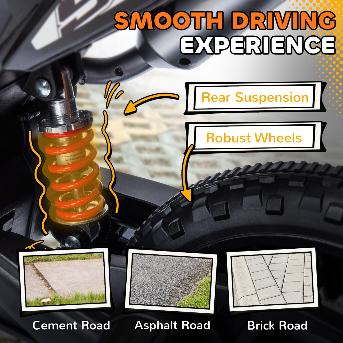 - Rear Wheel Shock Absorber: Ensures a smooth ride over various terrains.