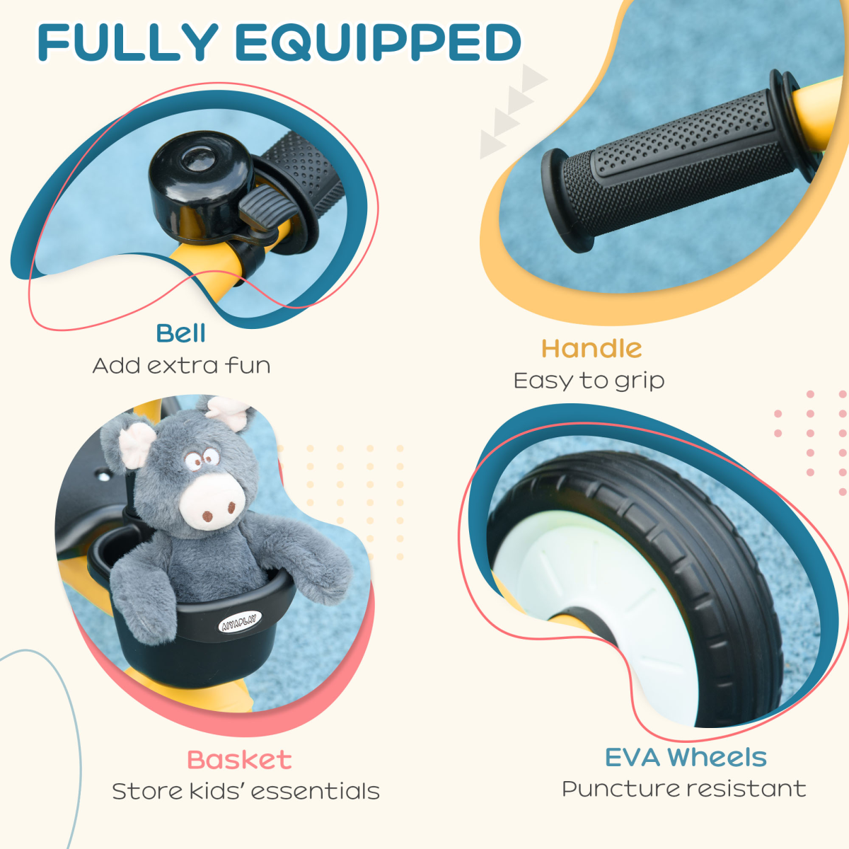 AIYAPLAY Trike with Adjustable Seat Basket - Kids Tricycle for 2-5 Years Old (Yellow)