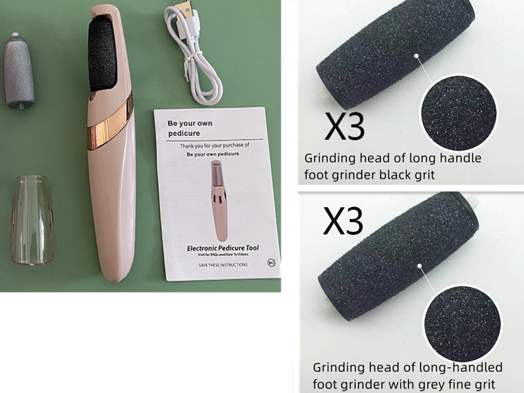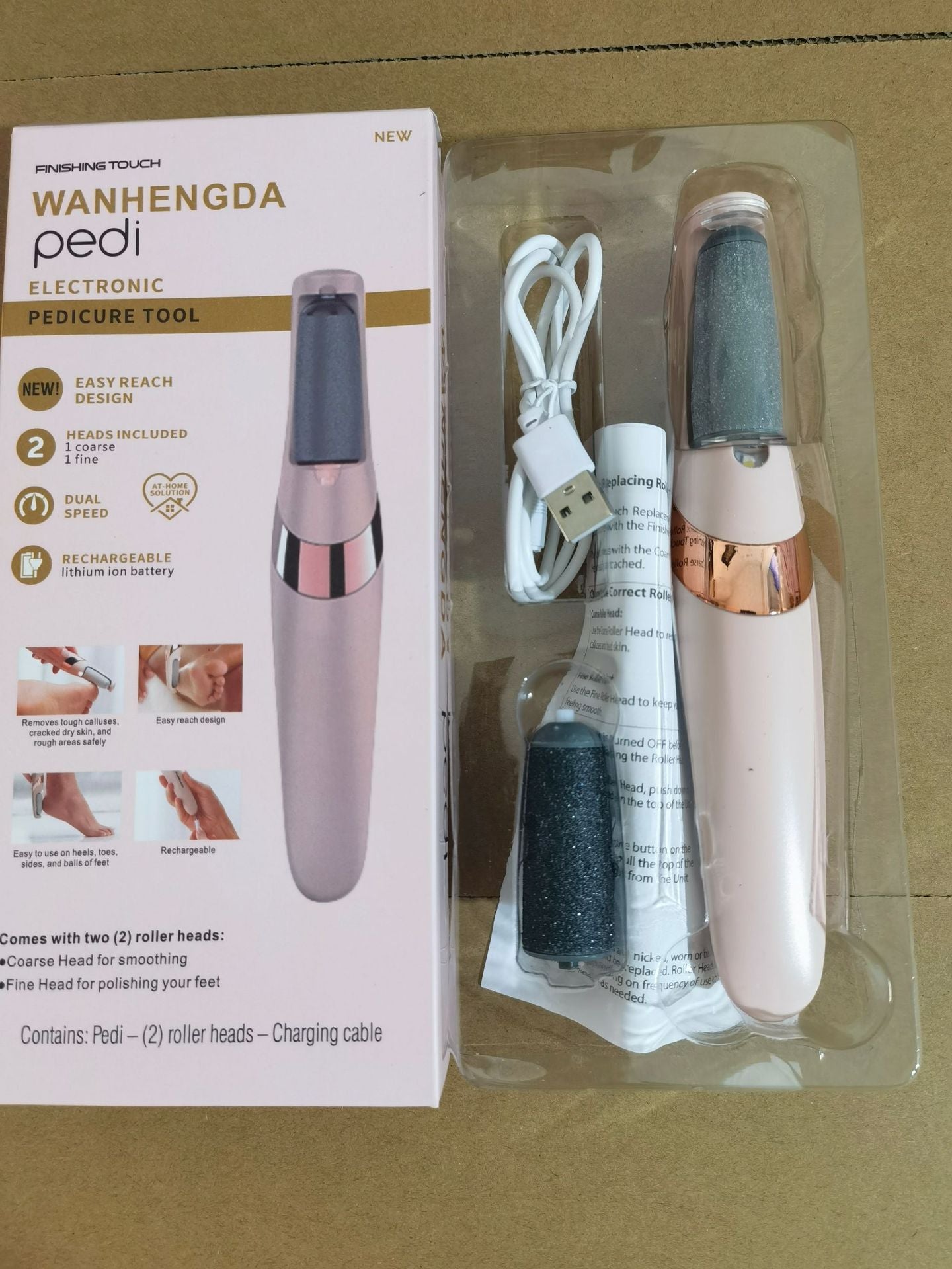 2. Pedi includes 2 roller heads: one fine roller for polishing and everyday maintenance and one coarse roller for smoothing stubborn calluses and dead skin.