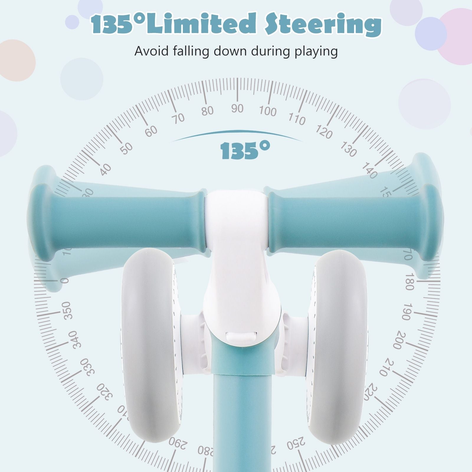 Safe and Durable Use: This balance bike features a 135°limited steering system, minimizing the risk of falls during playtime. Additionally, the sturdy yet comfortable handlebar, soft cushion seat, and noiseless wheels provide a smooth and secure riding experience.
