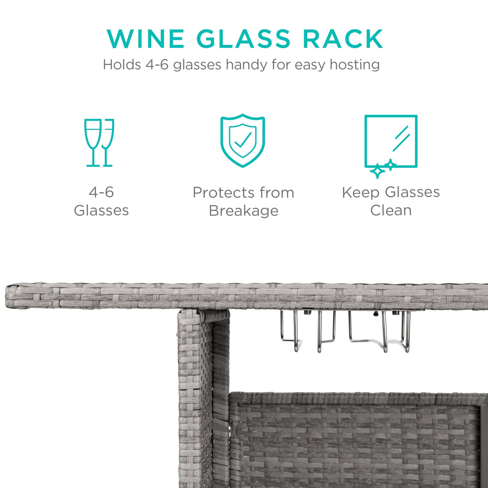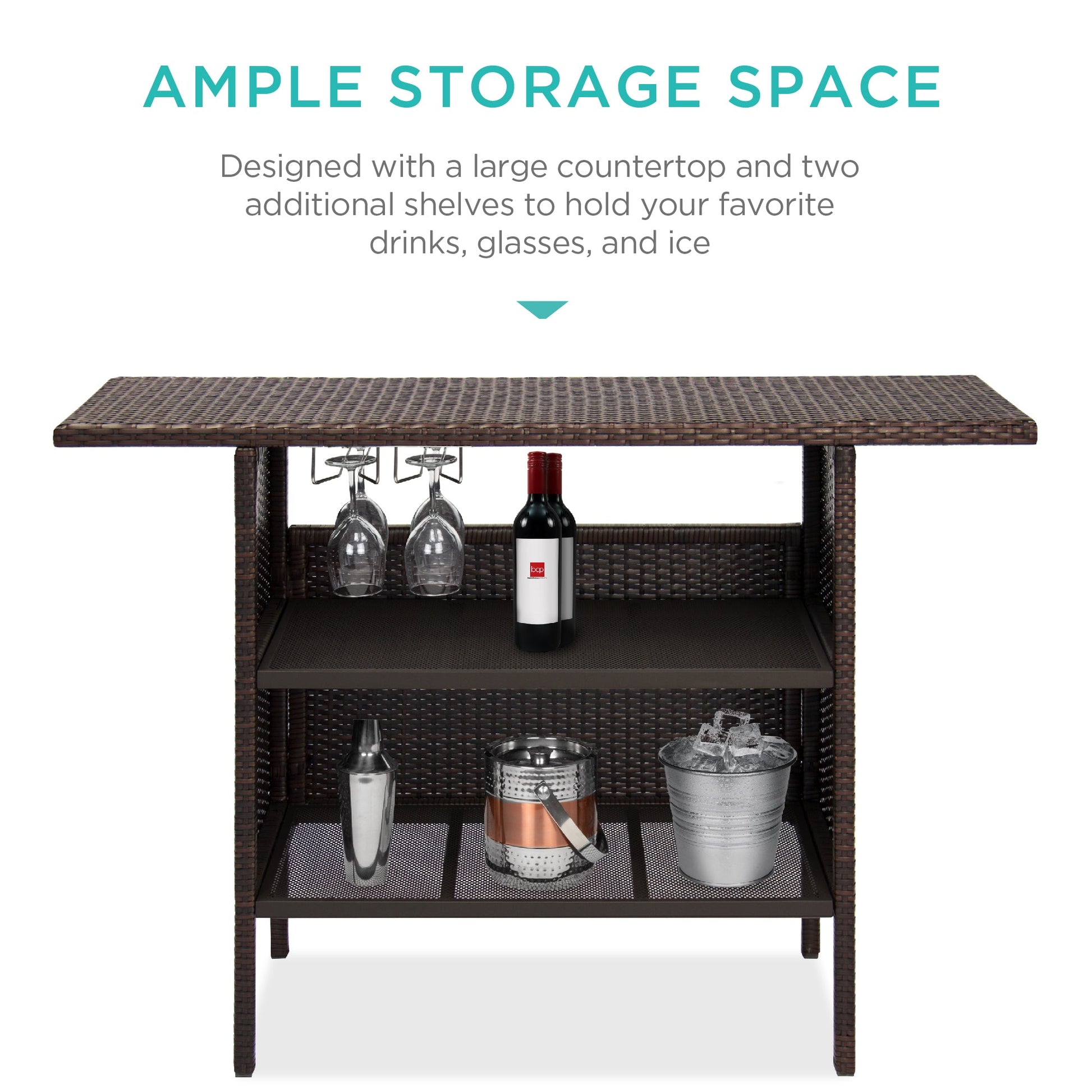 Outdoor Wicker Bar Counter Table w/ 2 Steel Shelves, 2 Rails