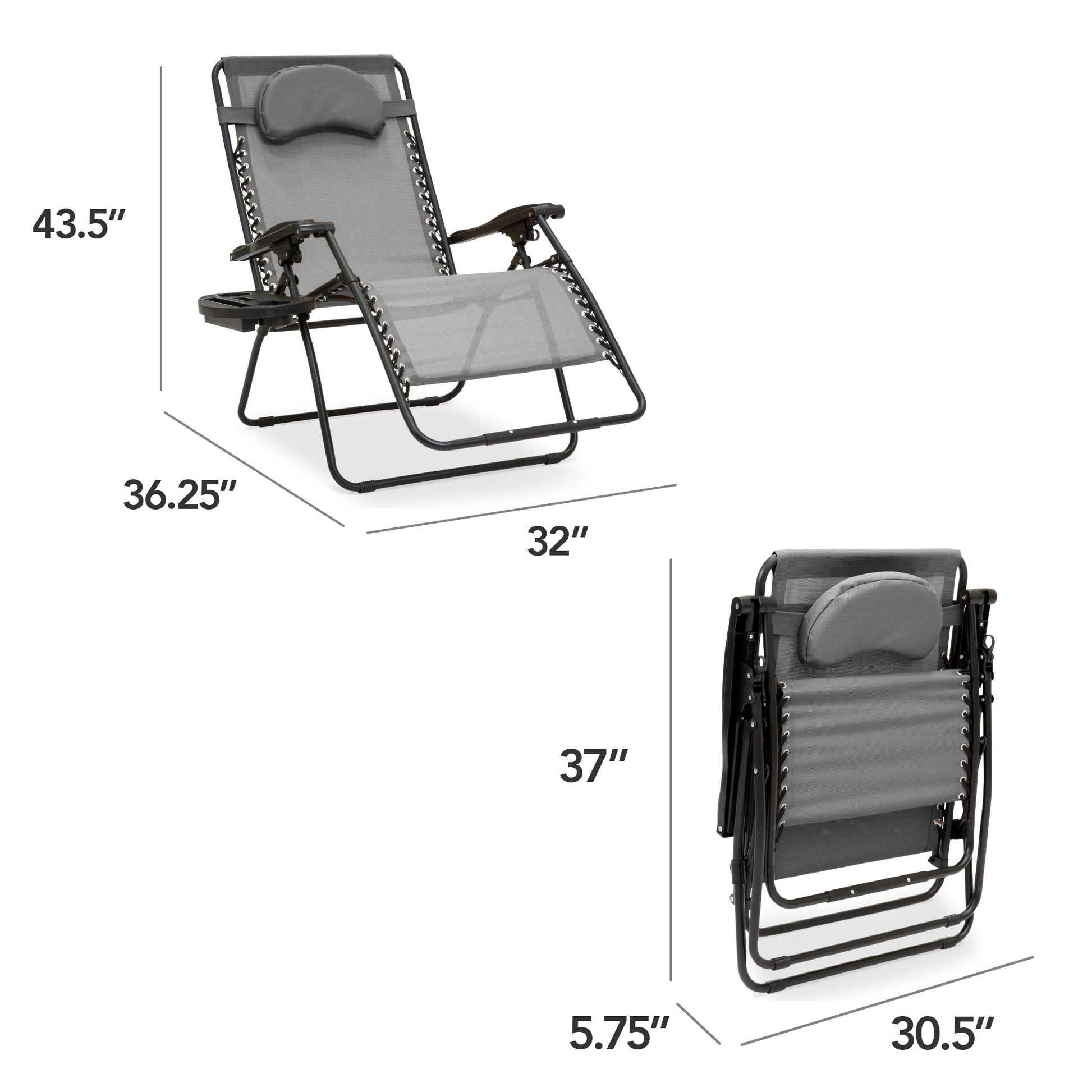 Oversized Reclining Zero Gravity Chair Lounger w/ Cup Holder, Pillow