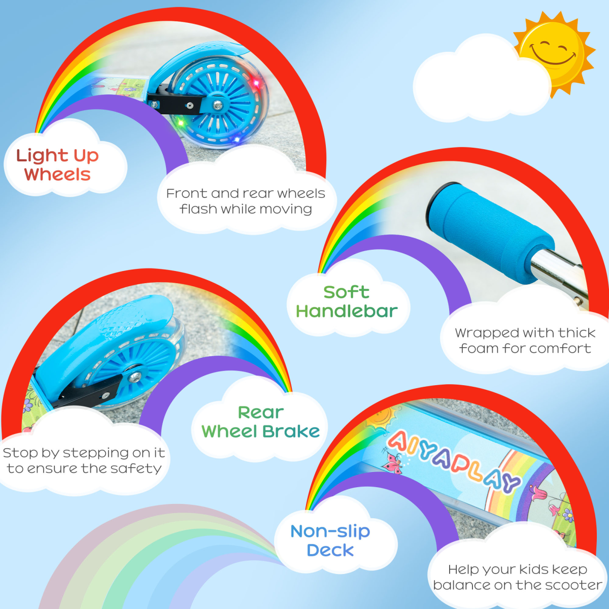 Scooter for Kids Aged 3-7 Years with Lights, Music, Adjustable Height - Blue
