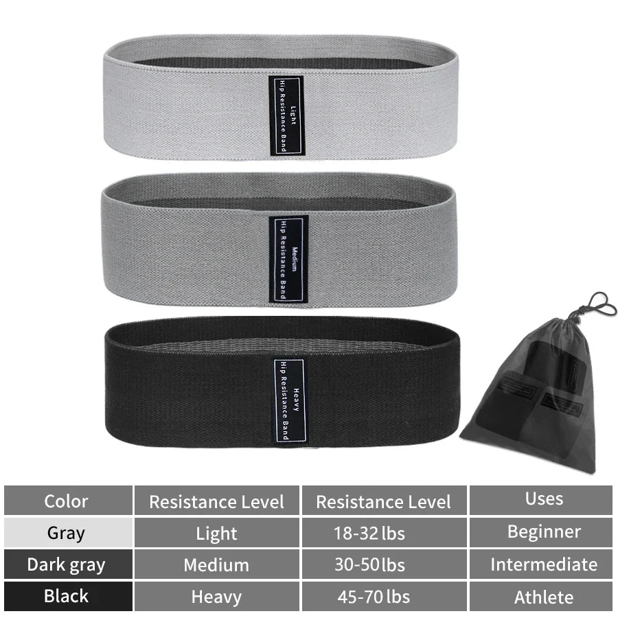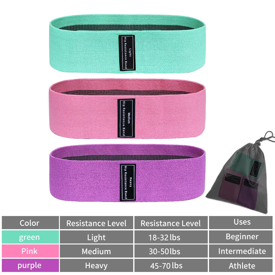 Our Booty Bands come in 3 different resistance levels as shown in the table below: