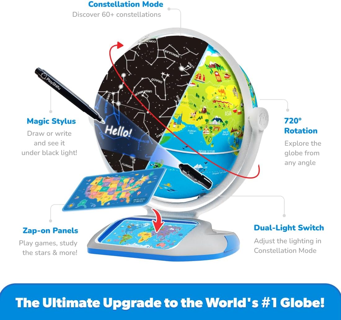 - Magic Stylus: Draw or write on the globe with the invisible ink stylus—your creations appear only under the included black light.
