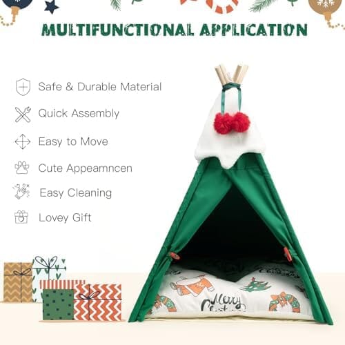 - Secure and Private:three-sided wrapping shape and match the red and green Christmas colors can not only provide a private space for our pet also can crate a sense of security help them feel calm and relaxed