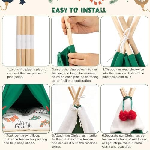 - Easy to Install:indoor dog house with an installation manual shows all the parts and assemble step few minutes that we can get a lovely puppy teepee tents