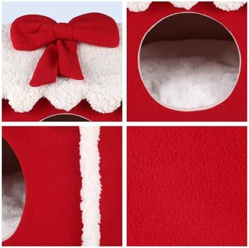 - Practical Home Decoration: This Christmas cat house has a beautiful red bow on the top, the overall look is very cute, this is a cozy gift for your fur baby. It can provide warmth for your fur baby in the cold winter, and it is also pleasing to the eye to put it in your home.