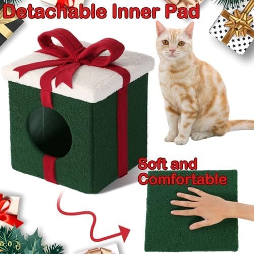 - Suitable Size: measuring about 13.78 x 13.39 x 13.78 inches/ 35 x 34 x 35 cm, this Christmas cat house provides enough space for your cat to curl up in comfort; Its sleek yet spacious design will easily accommodate cats of various sizes, ensuring your kitty enjoys maximum comfort without taking up too much space in your home