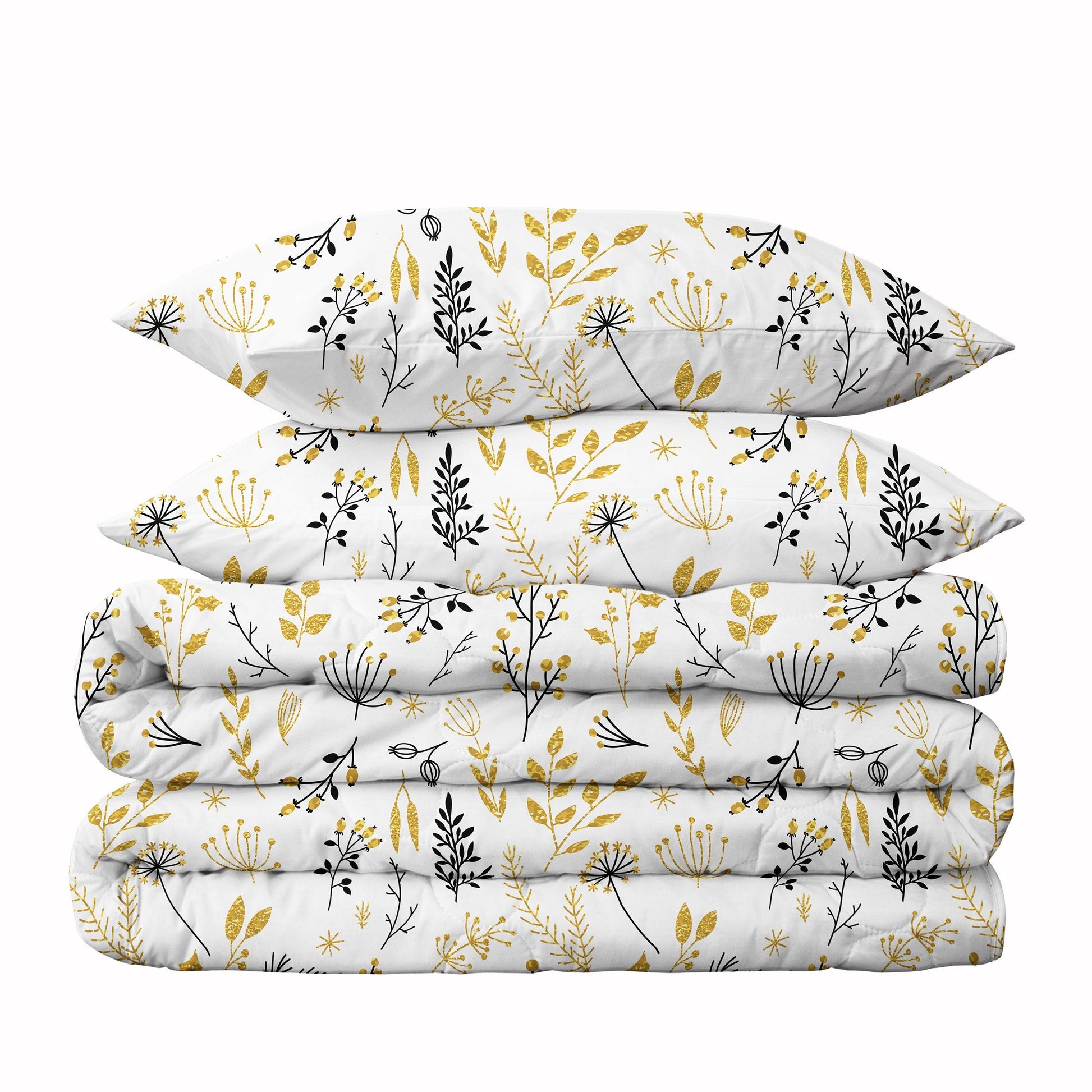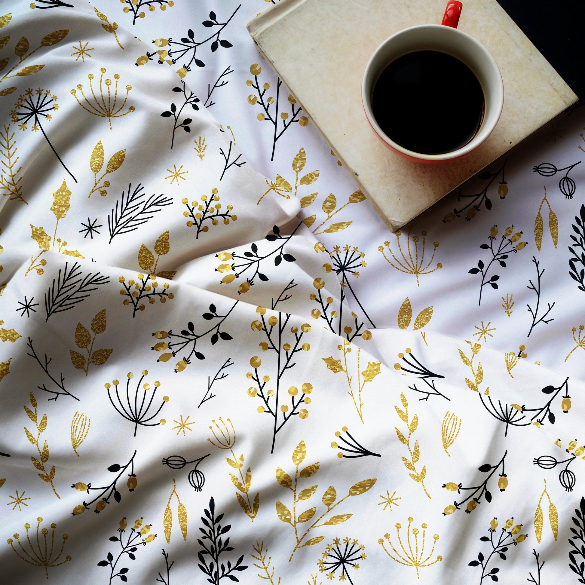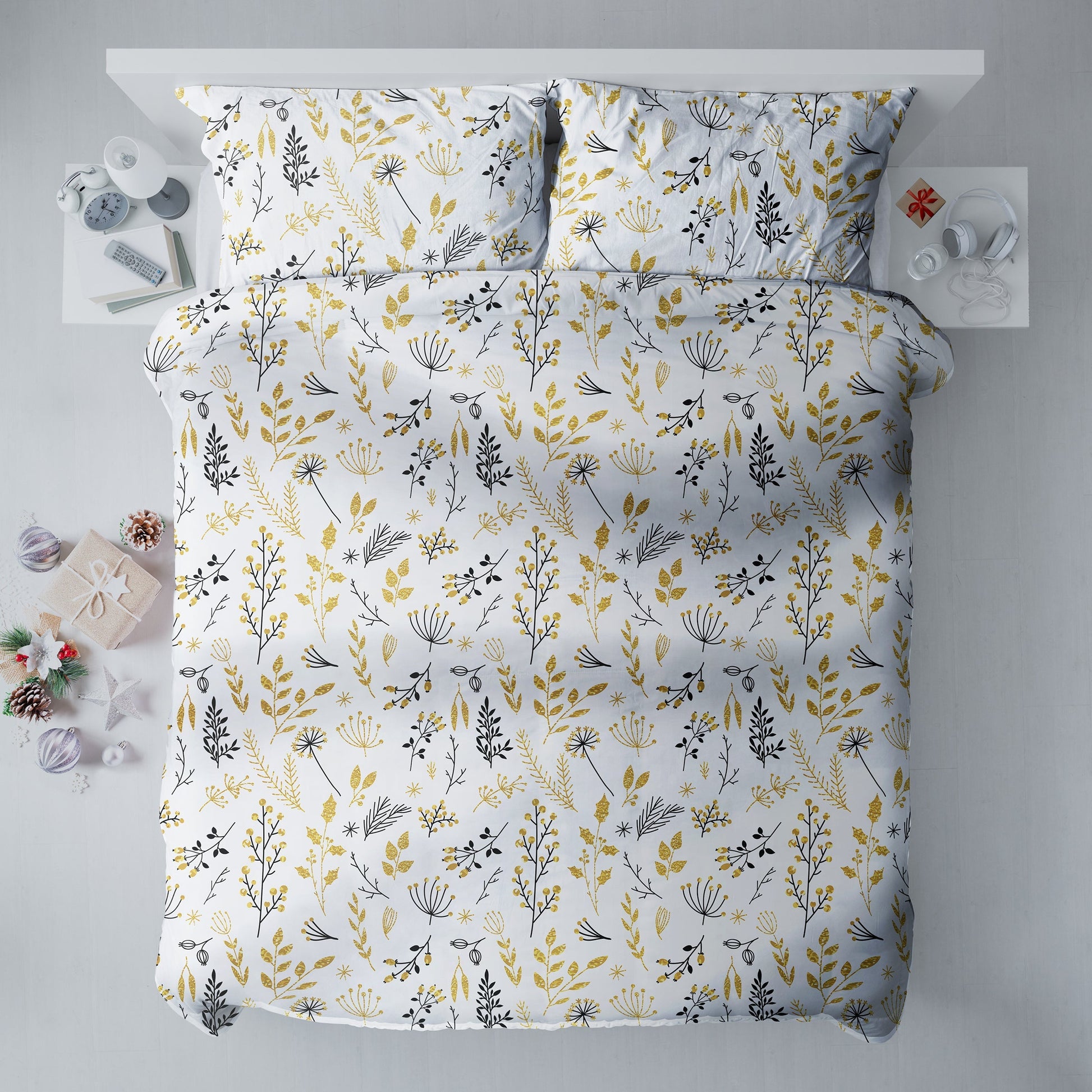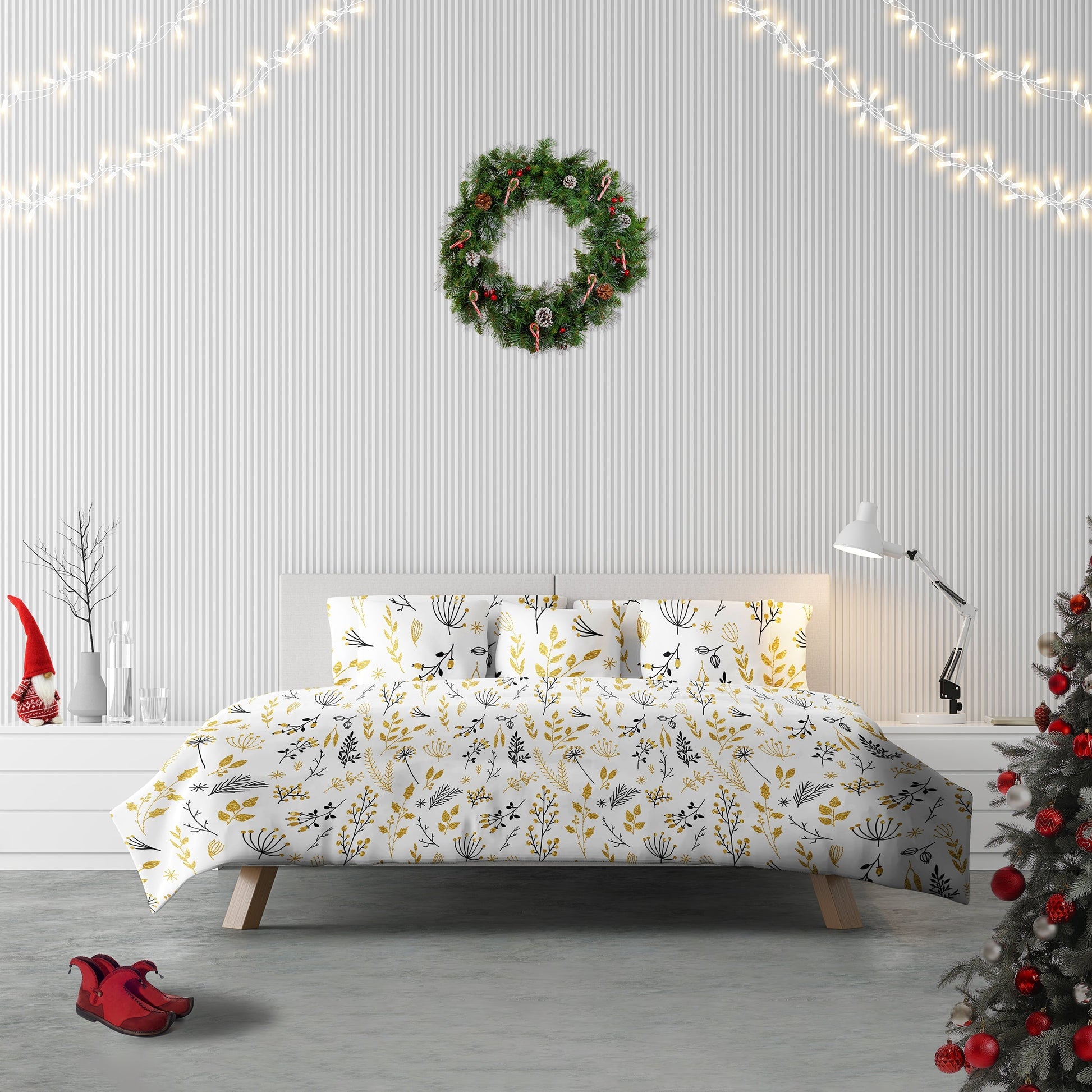 Christmas Gold Floral & Leaf Berries Duvet Cover Set