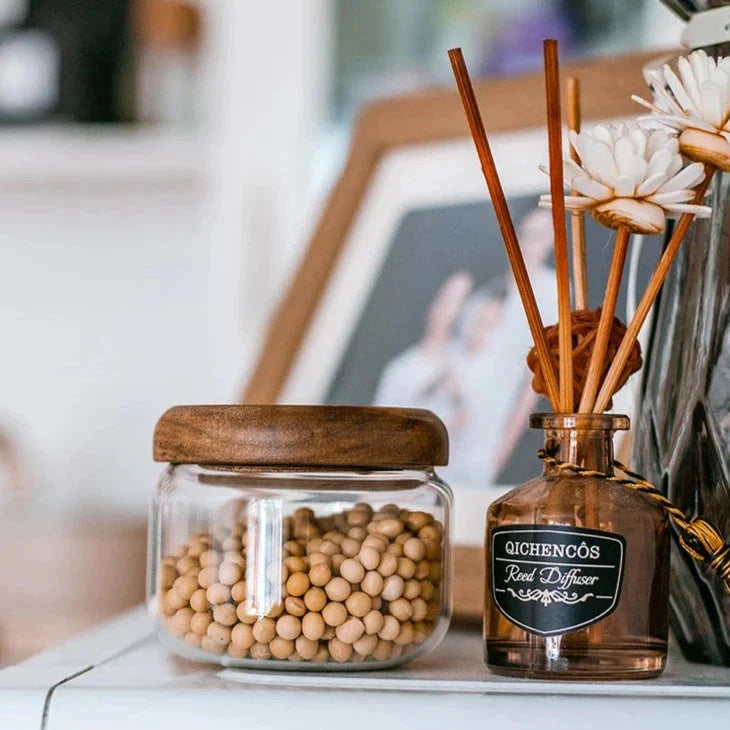 This container is perfect for storing leftovers, snacks, and more. The airtight seal helps keep food fresh and the clear glass allows you to easily see what's inside. The wood lid adds a touch of style to any kitchen.