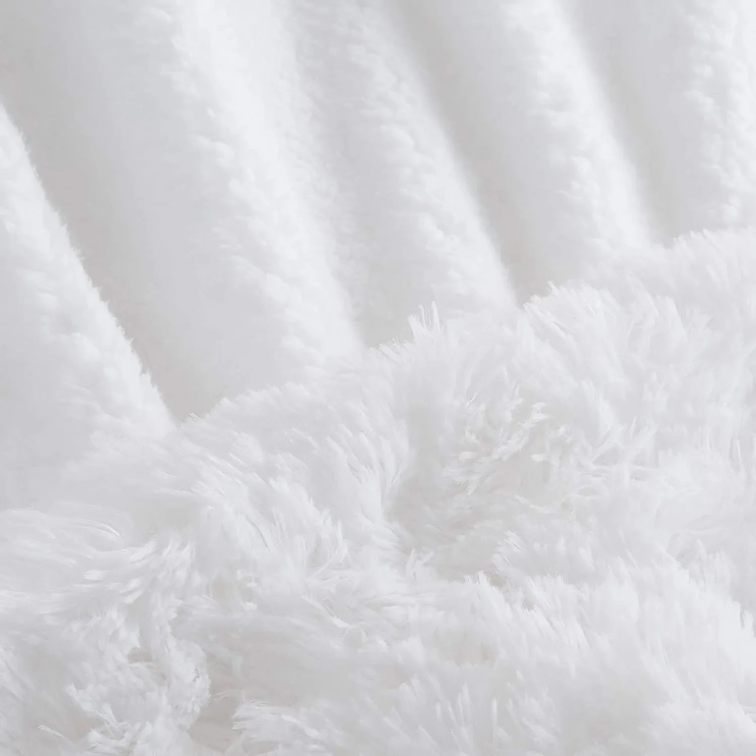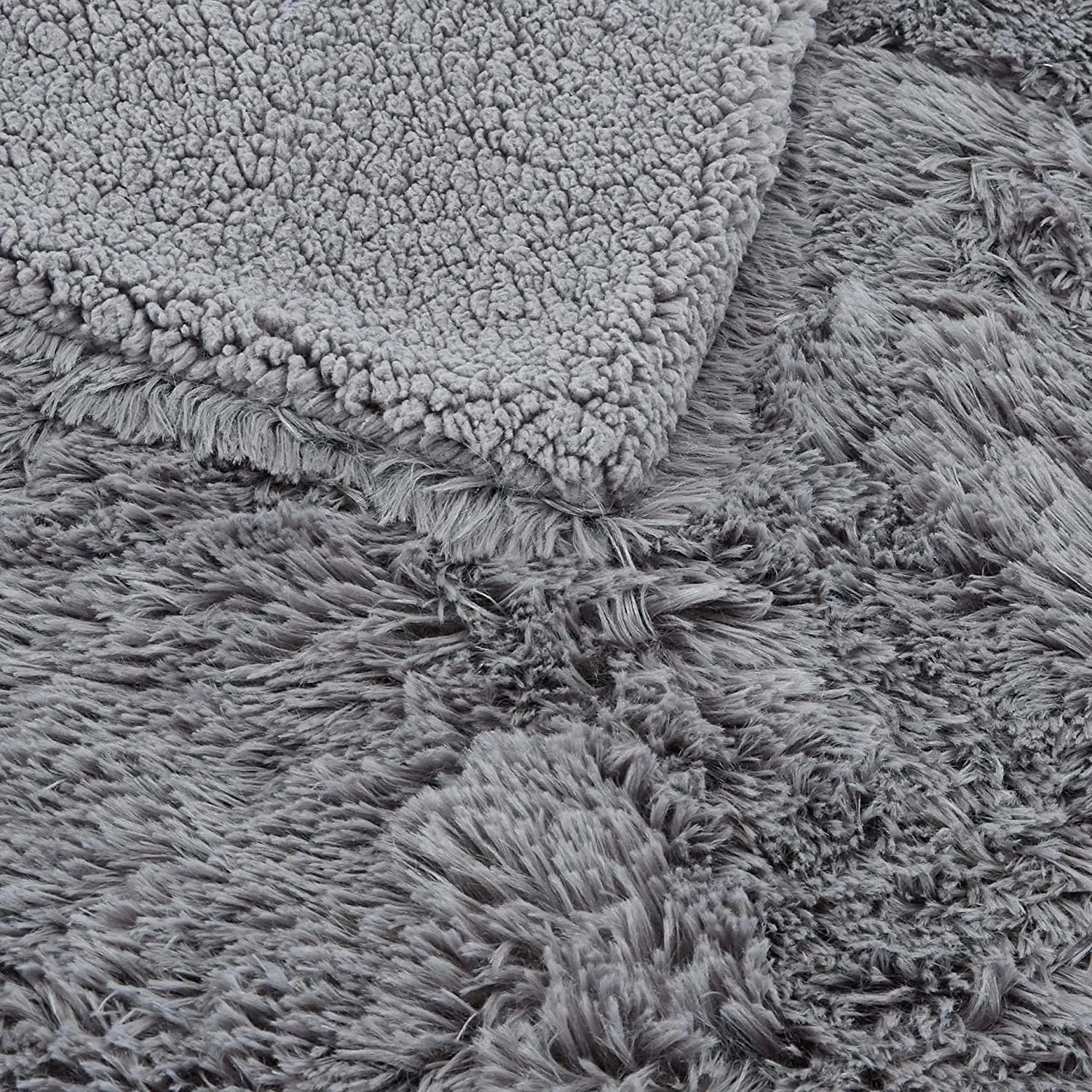 Cosy Winter Faux Fur Fleece Sherpa Throw - Grey, Ivory, White & Black