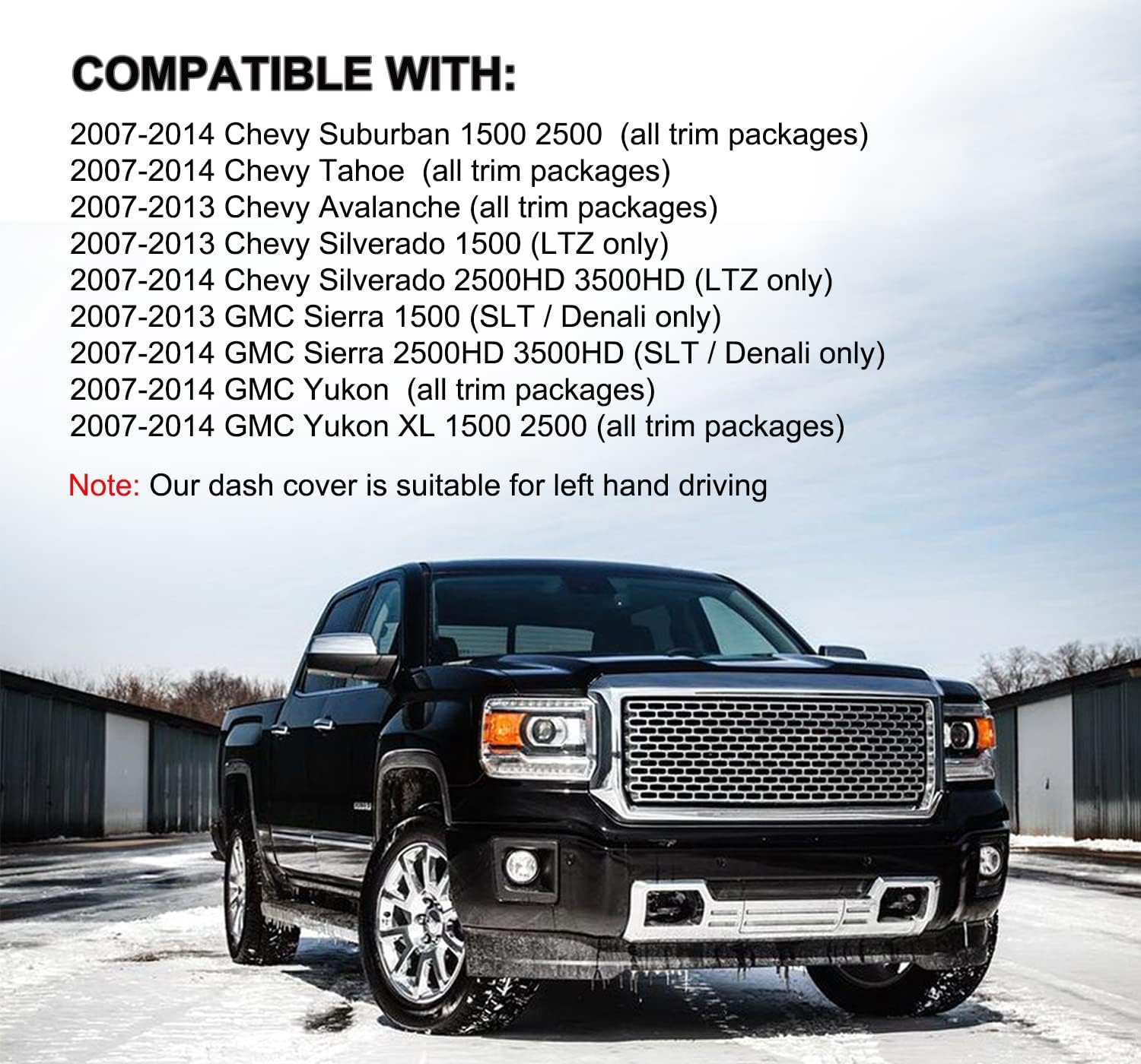 Keywords: YIZ dash cover, Chevy Tahoe dash mat, GMC Yukon dashboard protector, Silverado LTZ dash cover, Sierra Denali dash cover, SUV interior sun protection, 2007–2014 Chevy GMC dash cover.